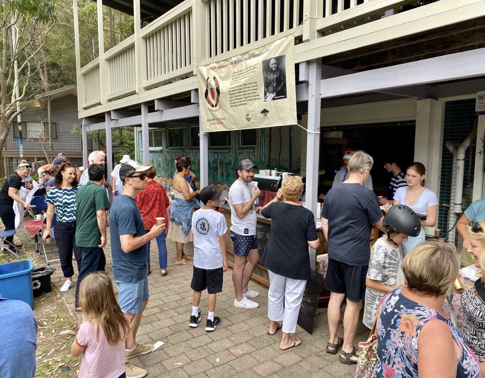 Soon after, Melinda Ham commenced working with Jasmine and between them they managed the café, putting posters up around the island, doing the inventory and purchasing, organising the bakers, hiring and training the staff and running the café. Melinda and Jasmine were assisted by volunteers, including Cathy Shelley, CB Floyd, Sharon Kinnison and Antonia Swift. Since Jasmine left for Brisbane in July 2021, Melinda has continued to manage the café and CB Floyd has assisted. Maddy Banfield has taken over as chief barista.