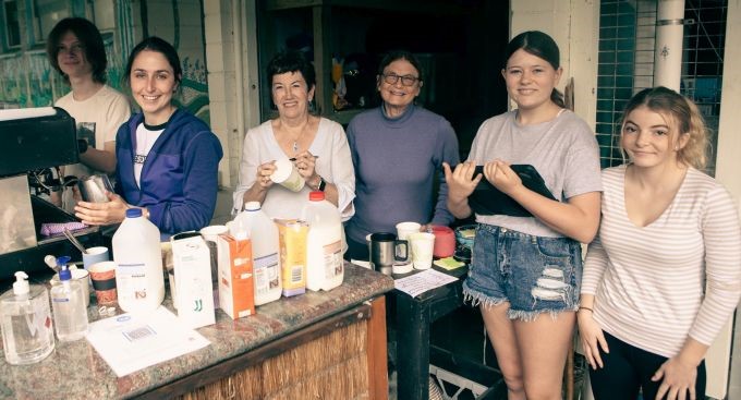 The Two Catherines Café was started in July 2020, and since then has operated on the second and fourth Sunday of each month, COVID permitting. The café commenced with Jasmine Hall as the barista, plus a team of volunteers to organise café supplies, set up and put away the furniture, and to serve.