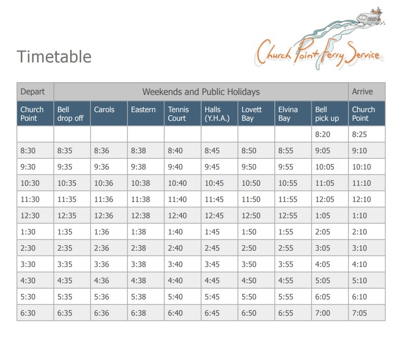 If you want to head over to Scotland Island and enjoy some food and hear what these descendants talk about, prior to taking a hike to the top of the island or taking a stroll alongside the bays, a great Autumn activity, the best way to get there is to catch a Church Point Ferry. Weekend Timetable is below. You will need to disembark at 'Tennis' wharf. For more information, please visit: churchpointferryservice.com
