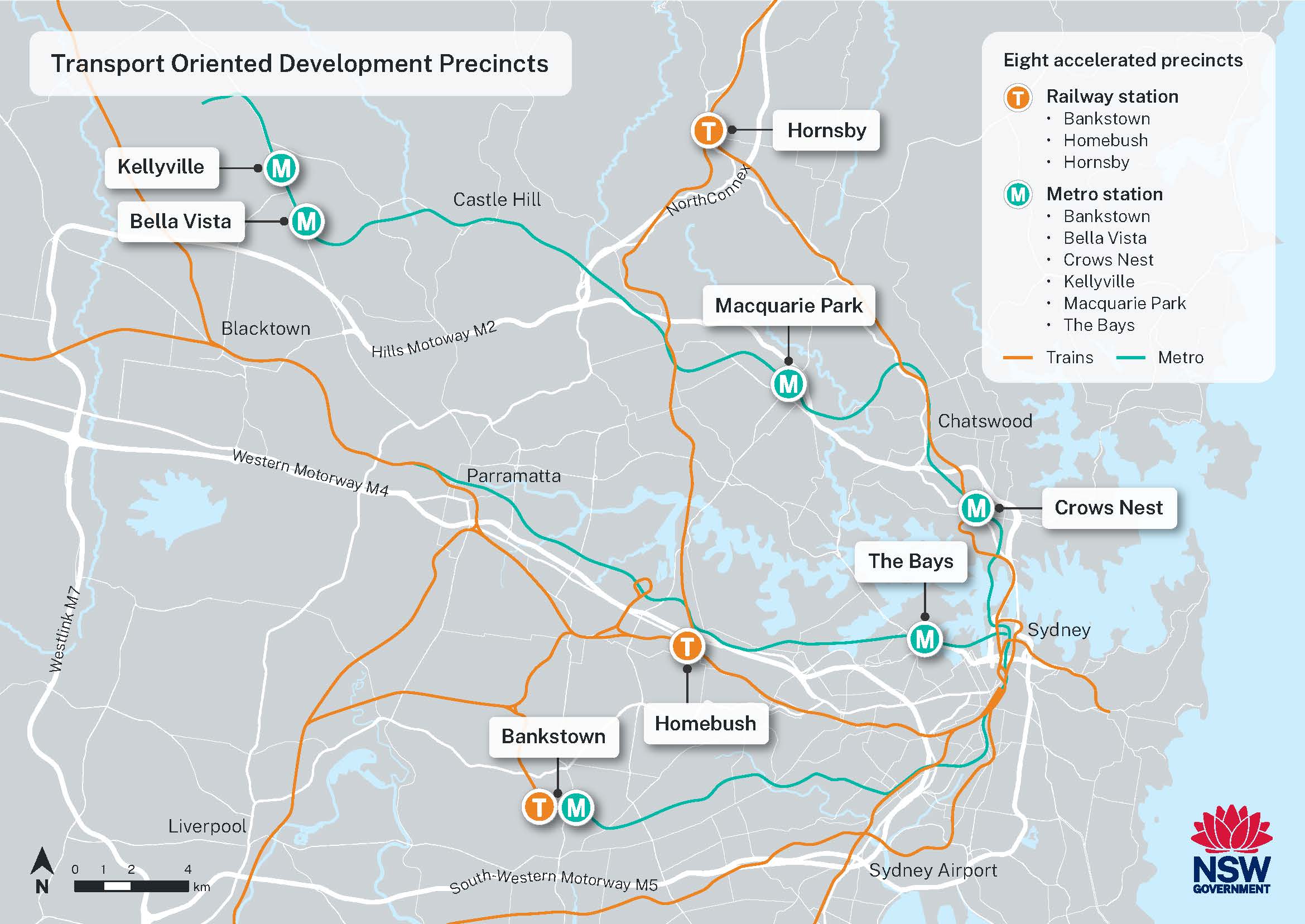 Bankstown, Bays West, Bella Vista, Crows Nest, Homebush, Hornsby, Kellyville and Macquarie Park will all undergo rezoning by November 2024 to provide significant uplift and support new homes within 1200m of these Metro and rail stations.