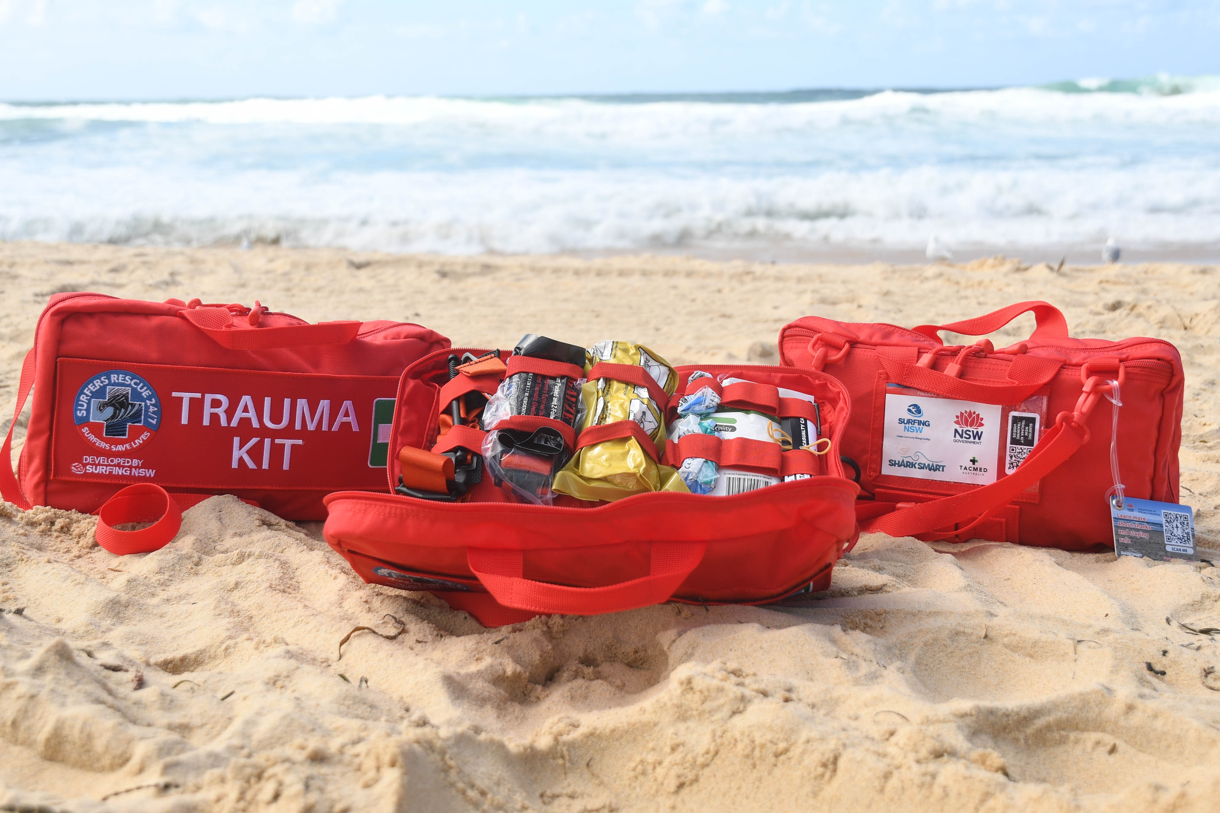The custom kits, which are designed for use in the event of an immediate, life-threatening trauma incident were designed in collaboration with Surfing NSW staff, and include equipment to deal with immediate trauma, bleeding control, hypothermia, fracture management and minor wounds.