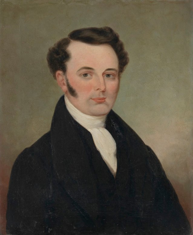 Family tradition holds that these portraits were painted in England prior to the couple’s departure for Australia in 1837. However, a stamp on the reverse of both works shows that the canvases were supplied by a firm operating between 1851 and 1854, suggesting that these portraits are later, local copies of the original 1837 paintings, possibly made around the time of Sarah Tuckfield’s death.