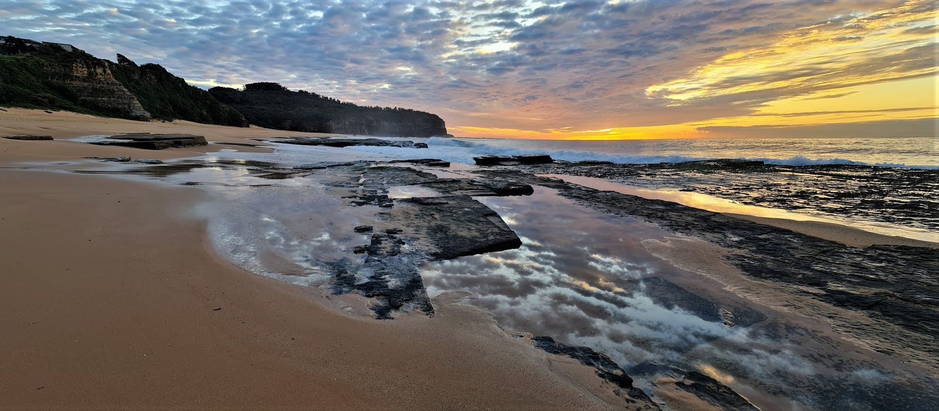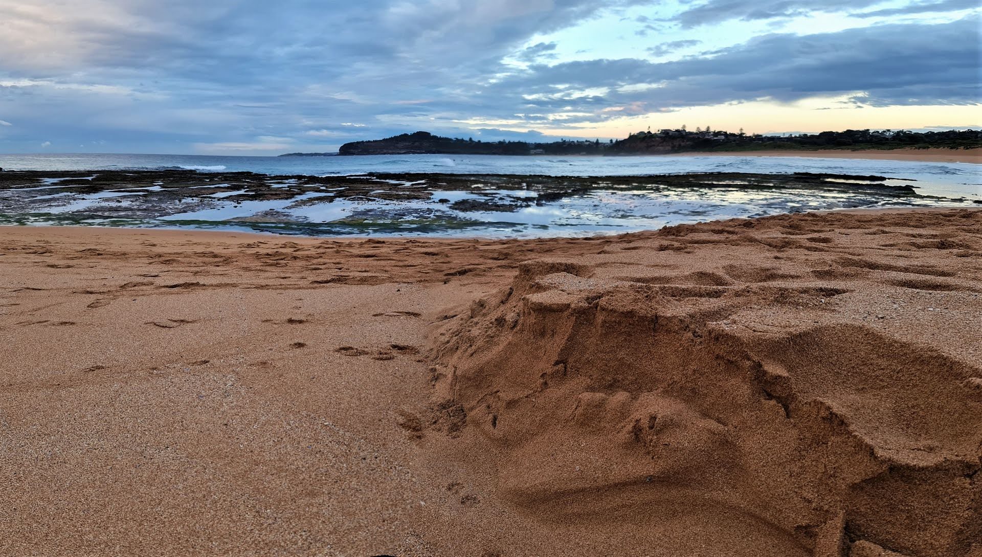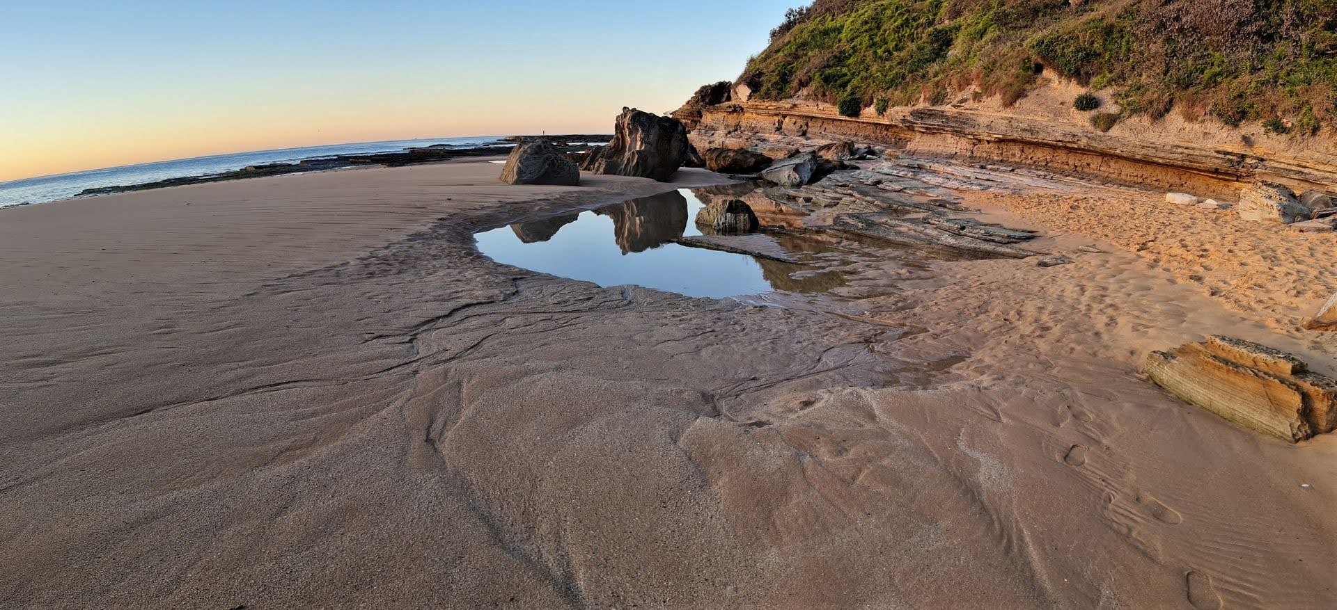 I have never seen so much sand on Turimetta Beach, with the rocks & gutters on both the northern & southern headlands all covered up. High tides have left behind trapped pools along the length of the beach.