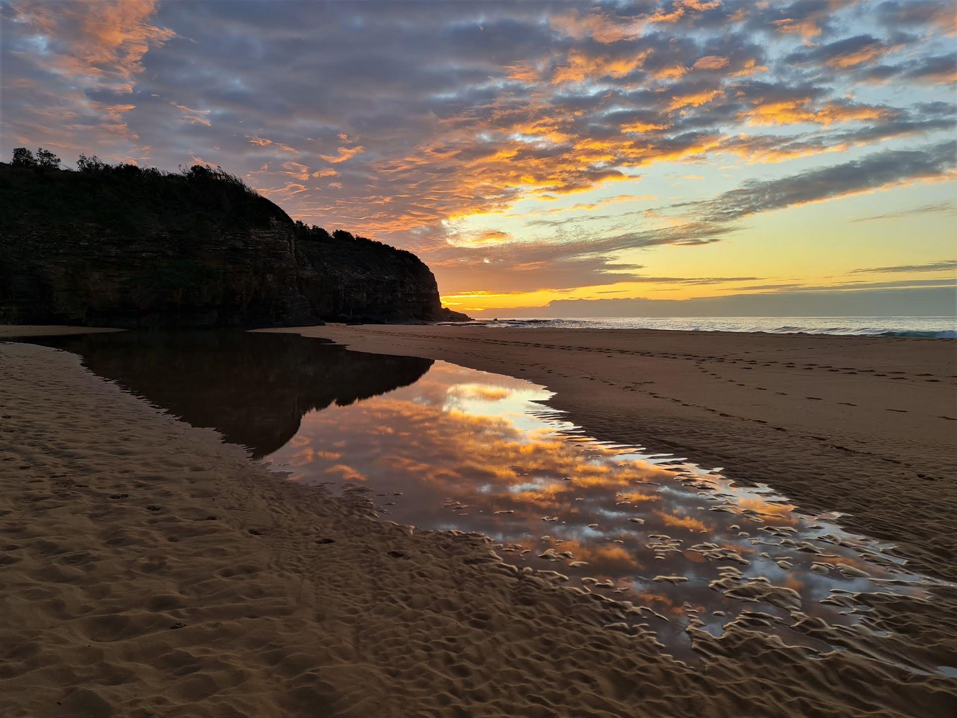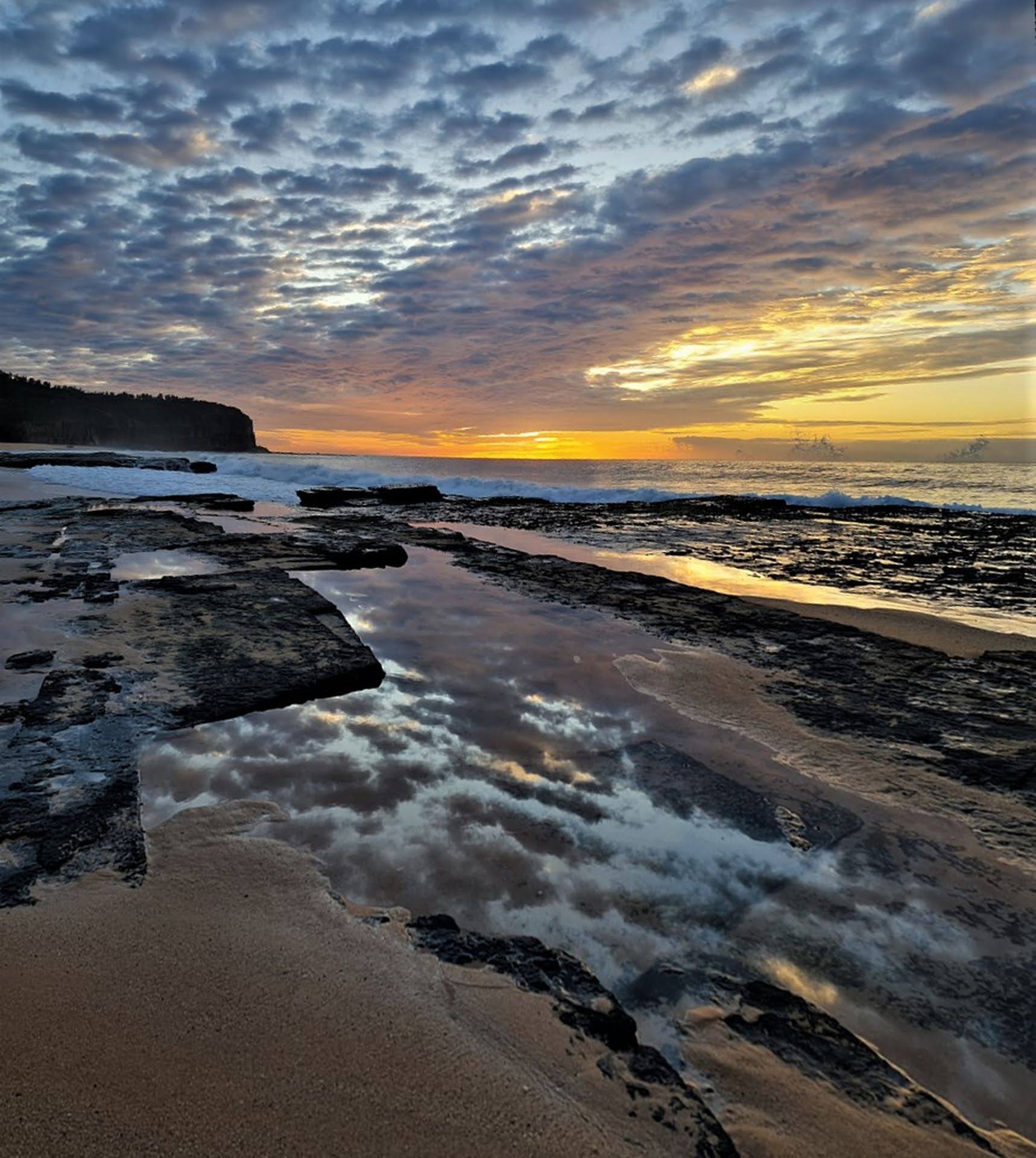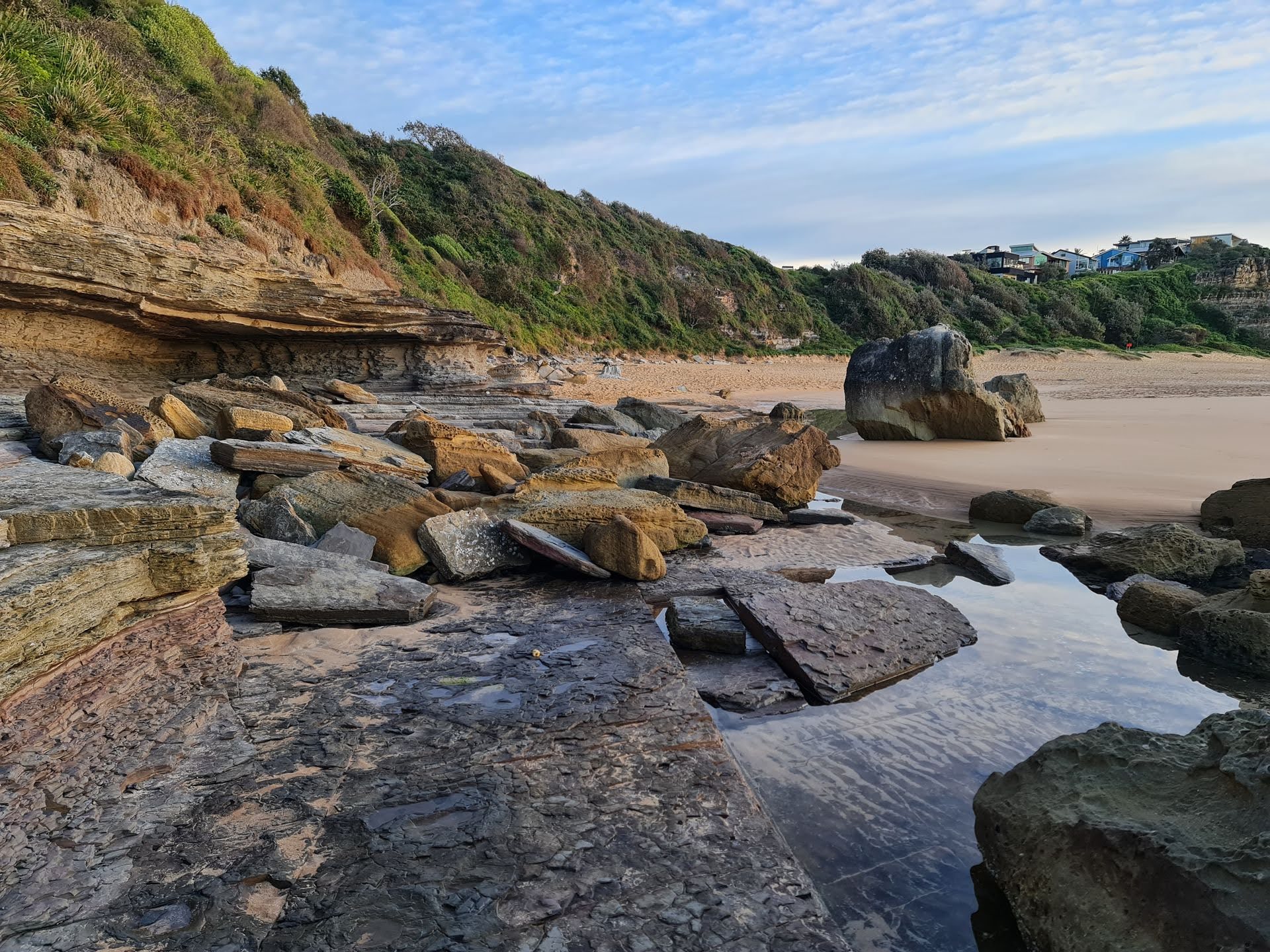 I have never seen so much sand on Turimetta Beach, with the rocks & gutters on both the northern & southern headlands all covered up. High tides have left behind trapped pools along the length of the beach.