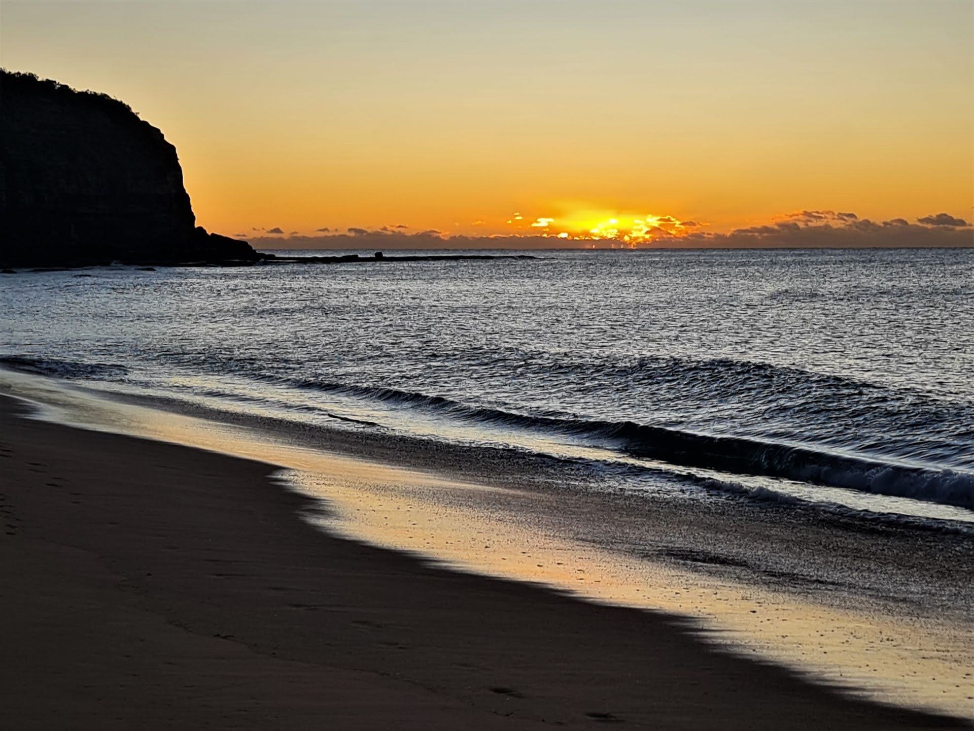 This week marked the Winter Solstice on Thursday 22 June 2023. This is the shortest day of the year or the longest night. Before Wednesday the weather was calm, with little wind and little cloud, and the non existent waves just lapping up on the beach.