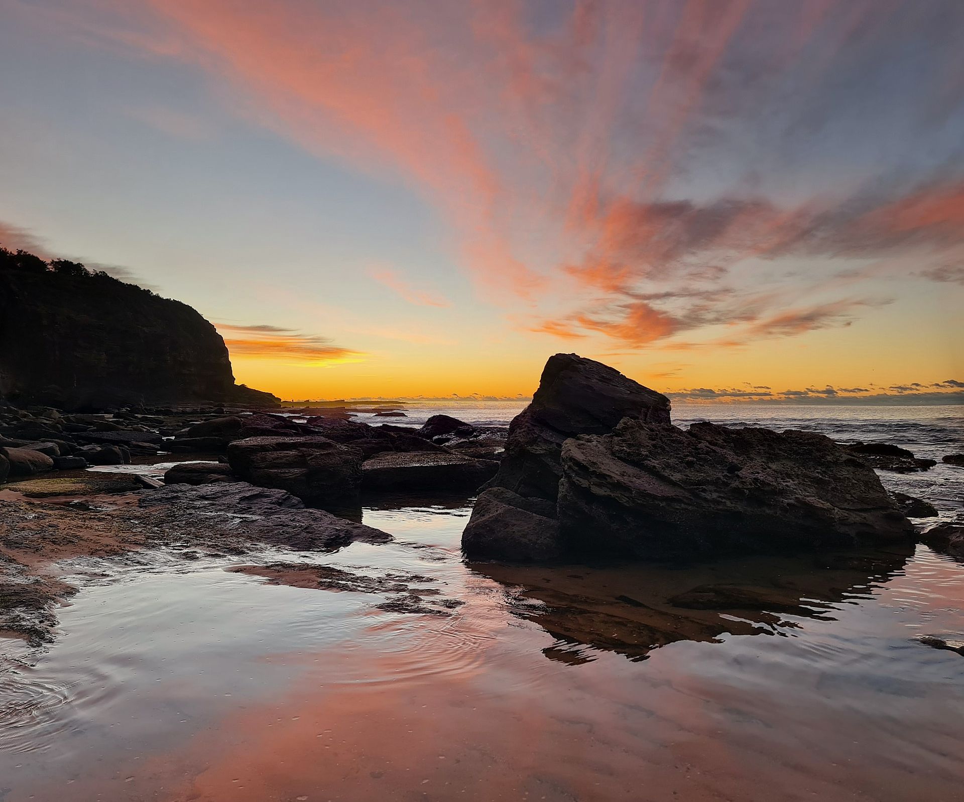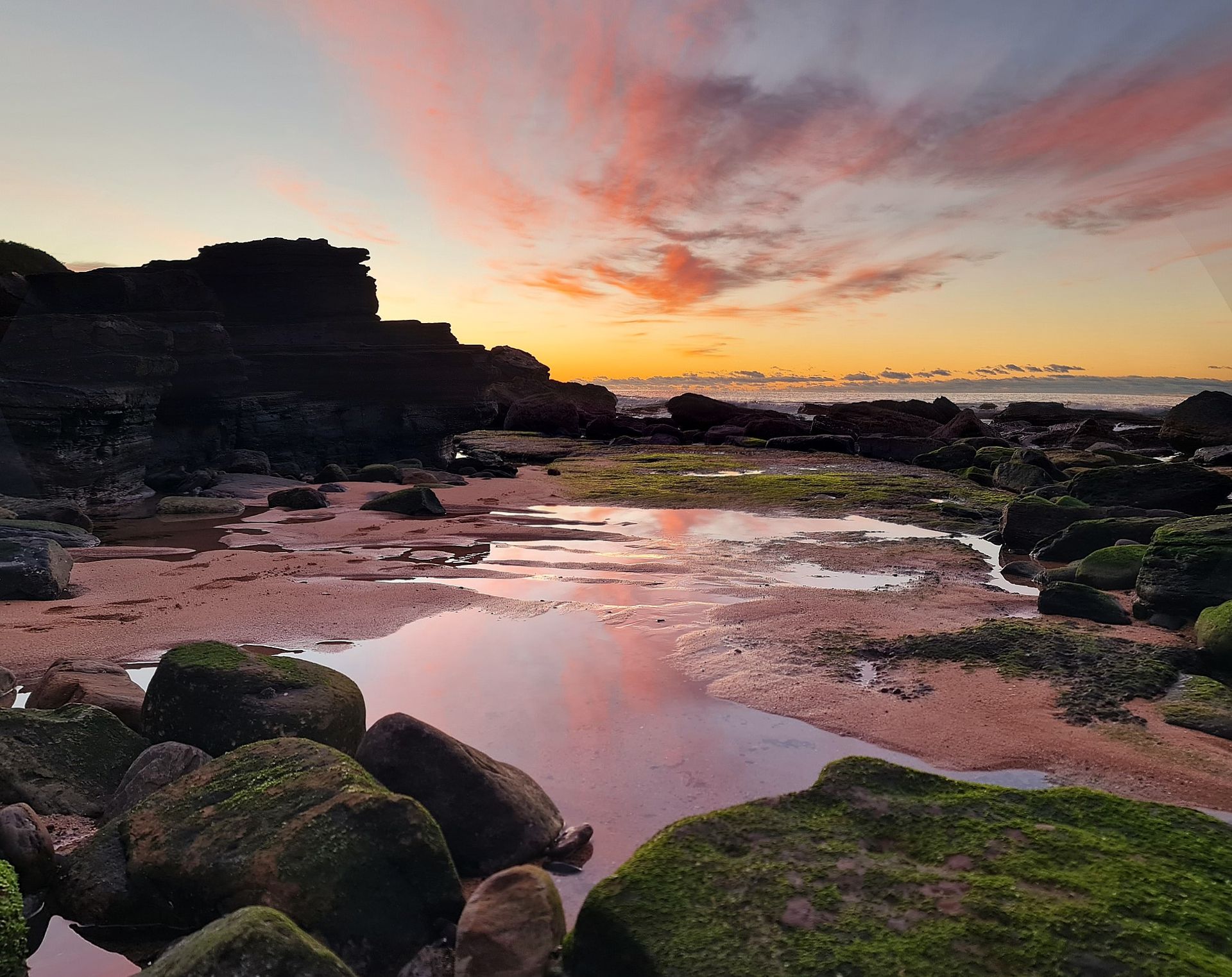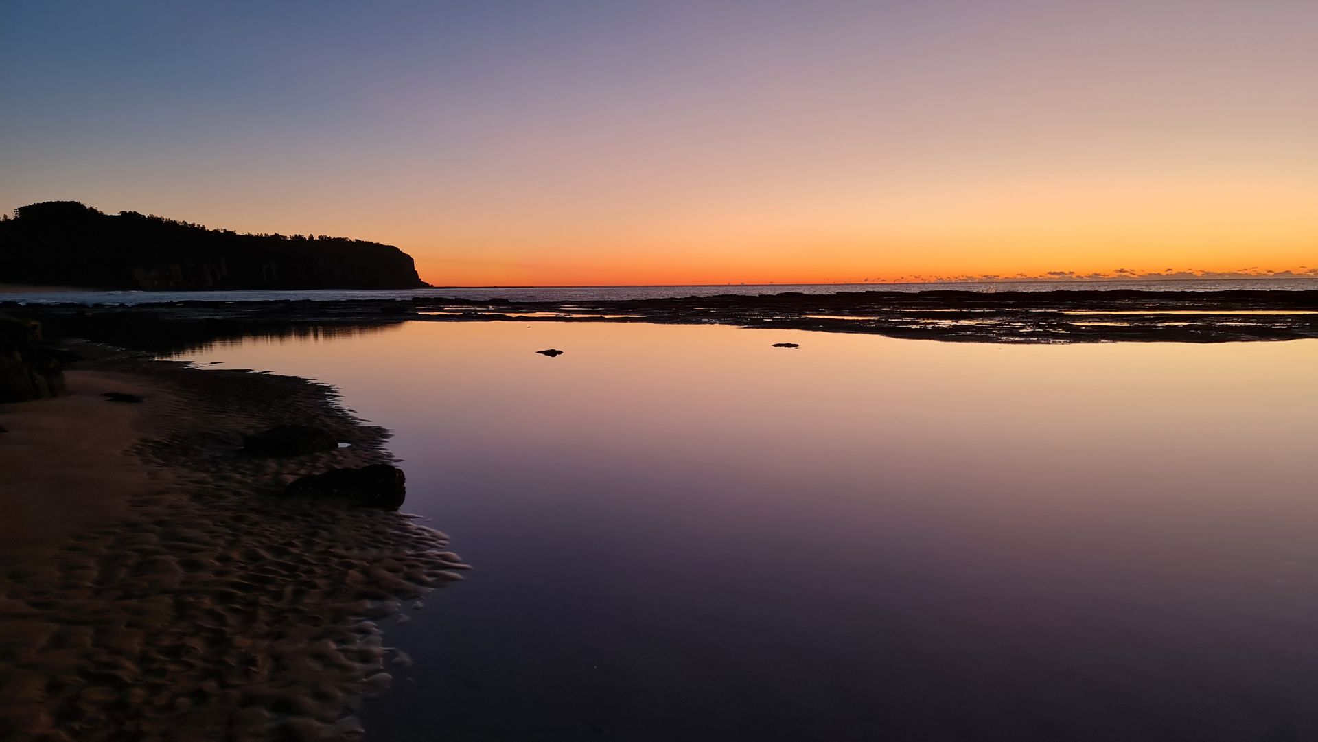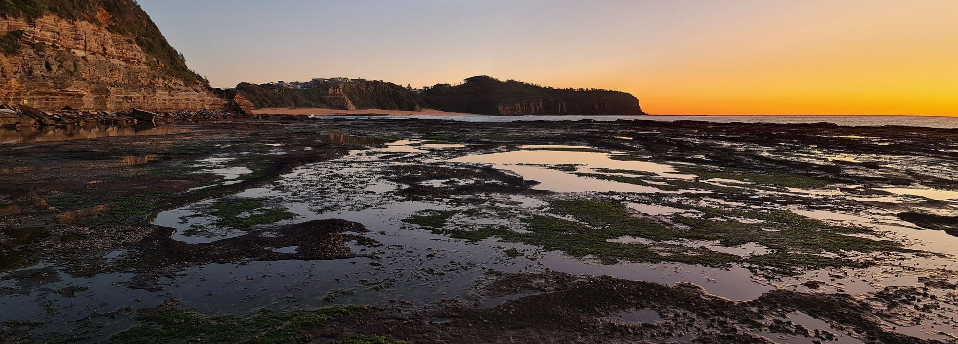At Narrabeen Rockpool - pre-sunrise tidal flats, looking north towards Turimetta