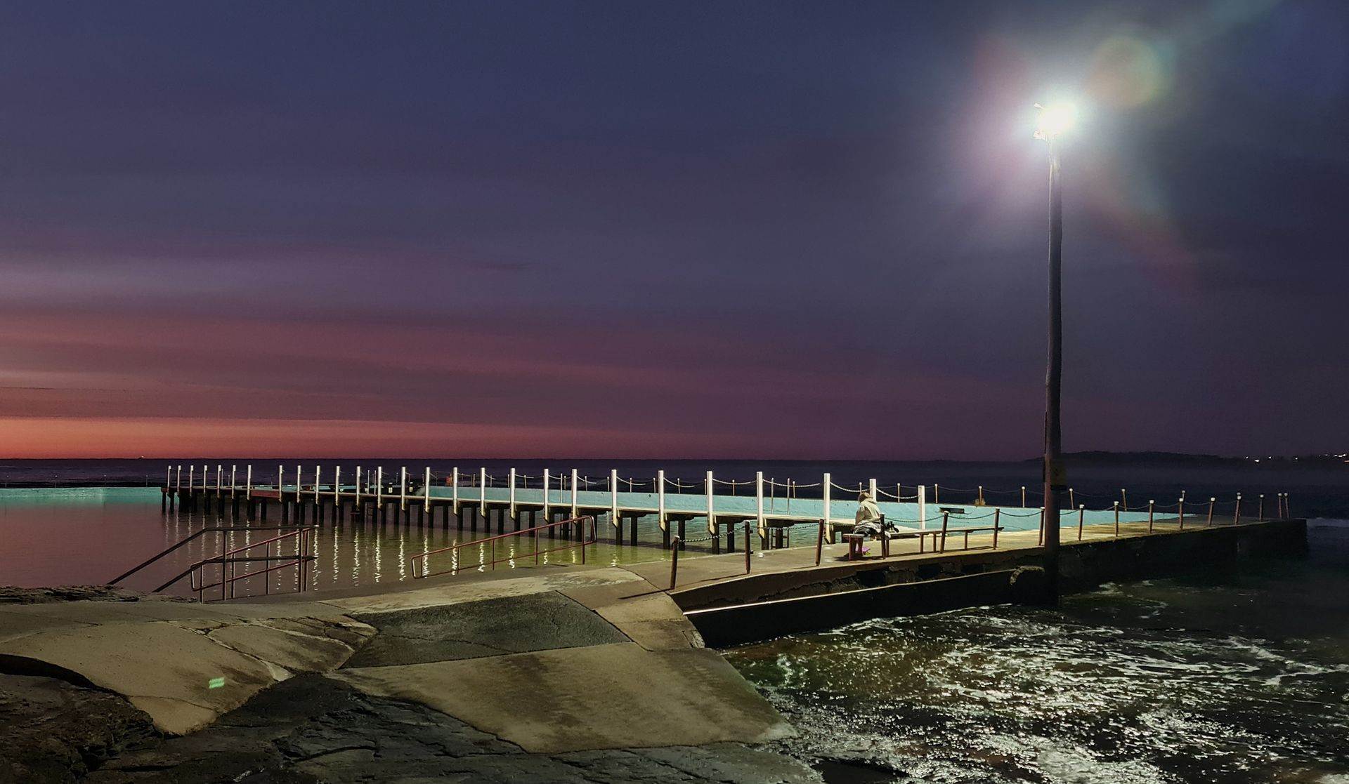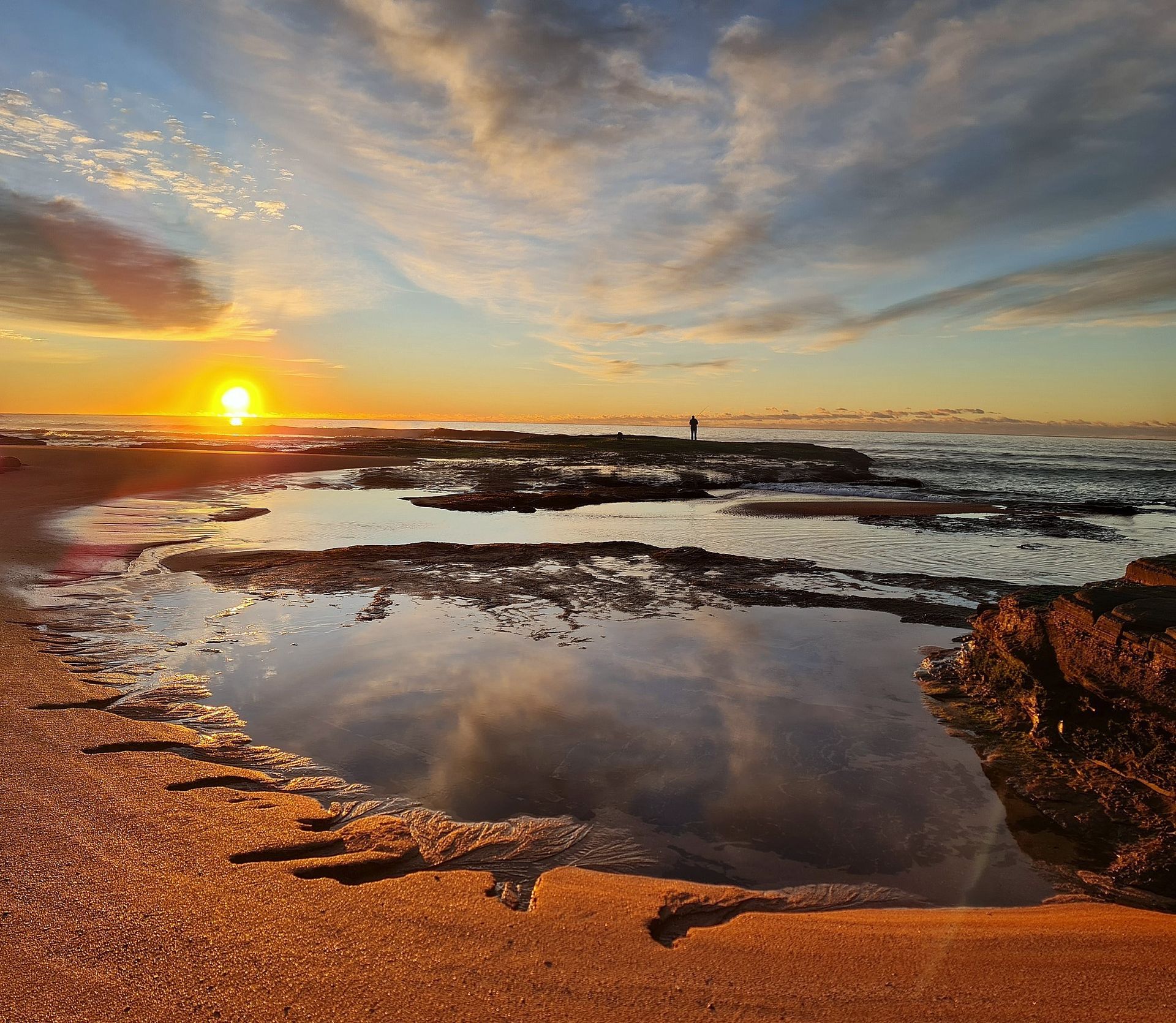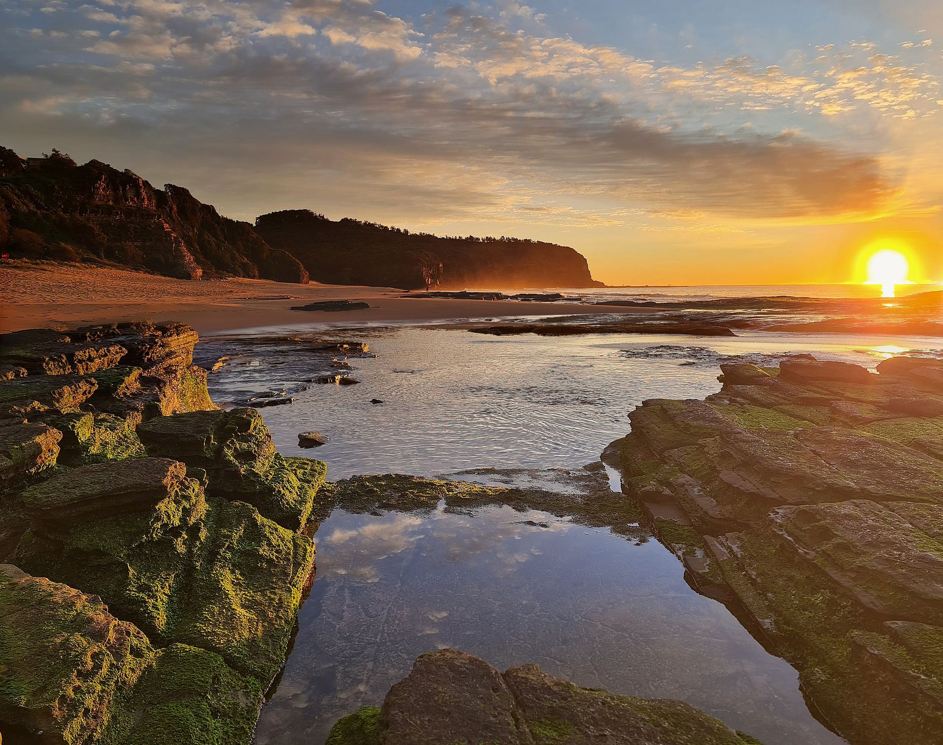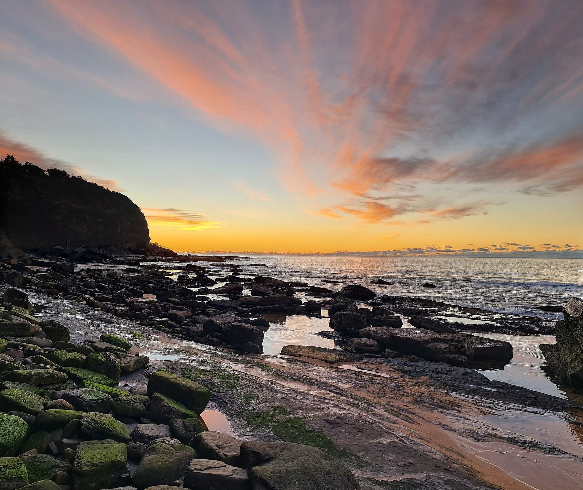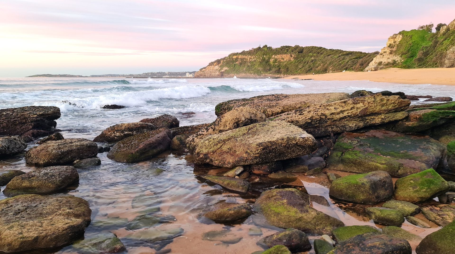At Narrabeen Rockpool - pre-sunrise tidal flats, looking north towards Turimetta
