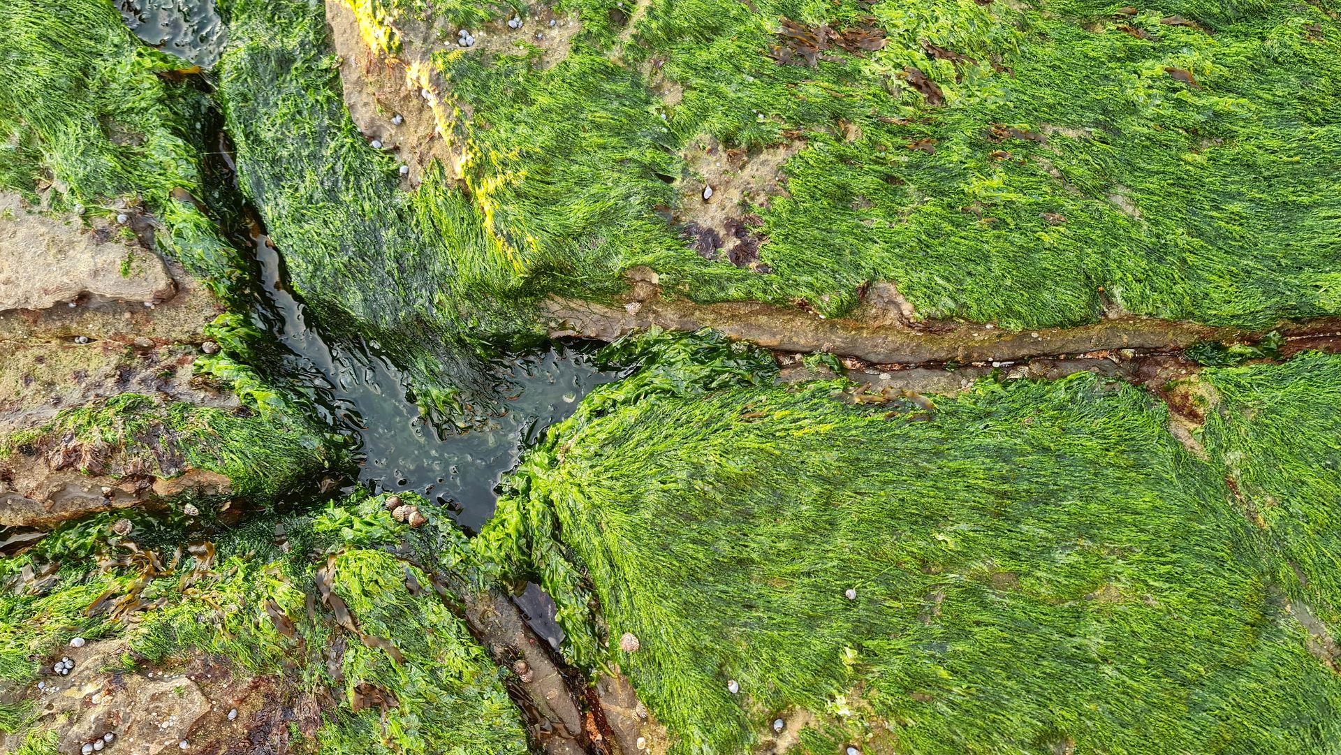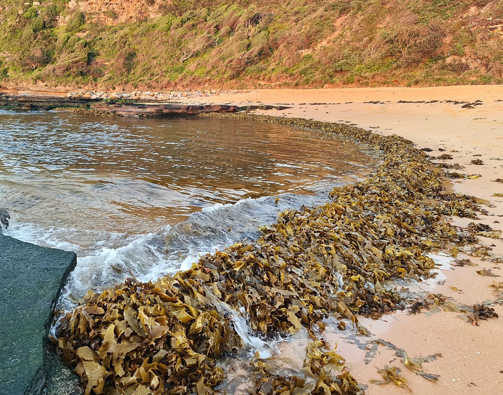 Turimetta Beach high tide seaweed wall, July 7 2025