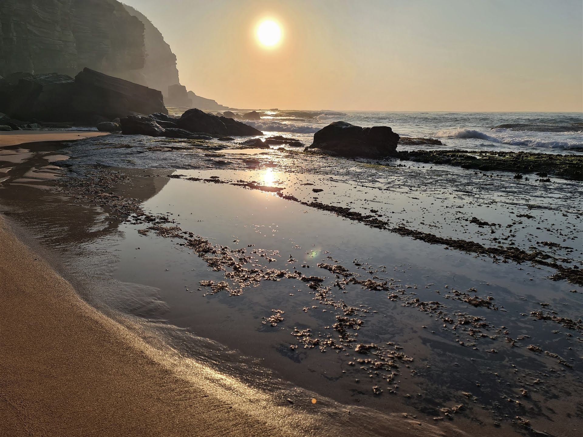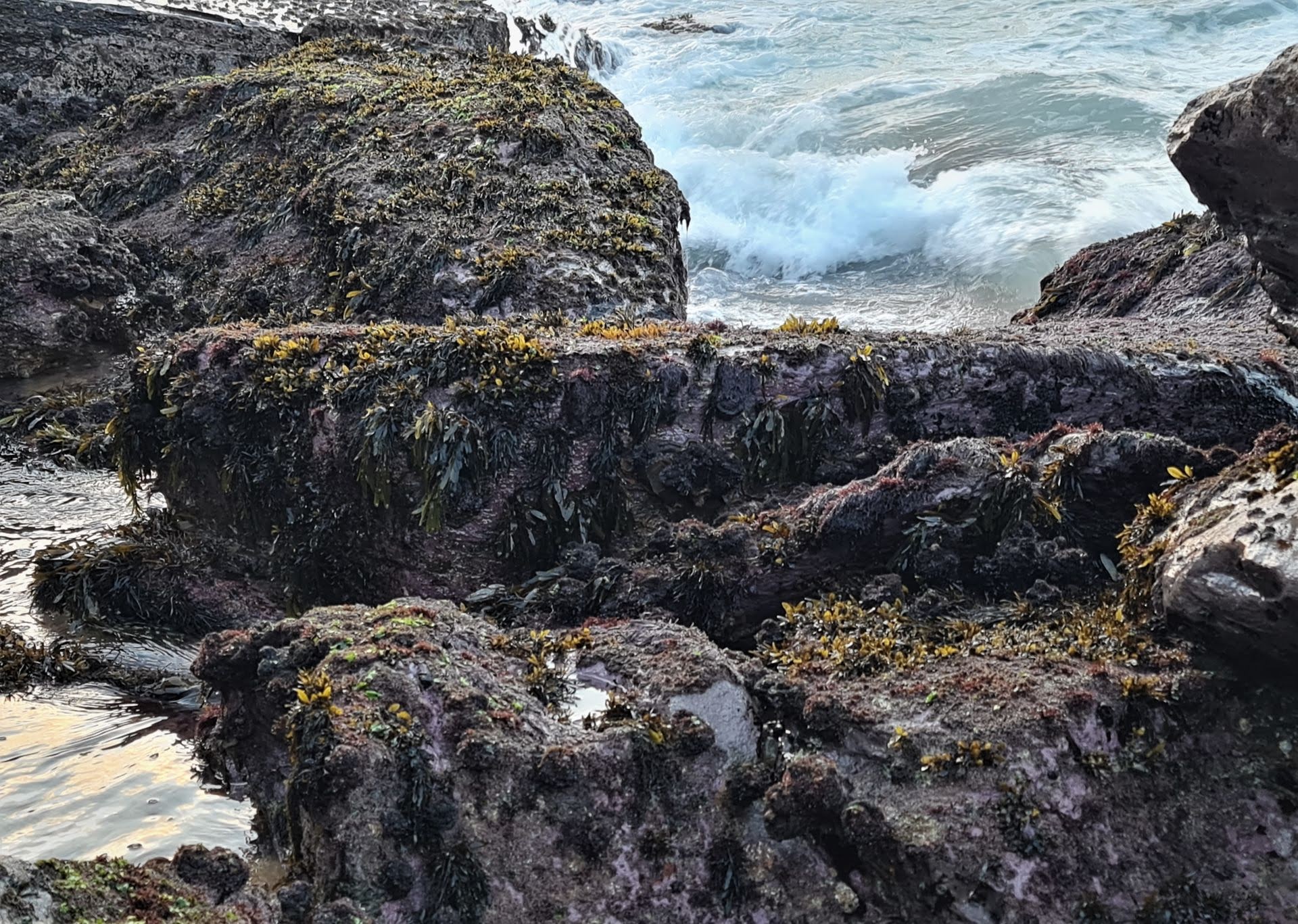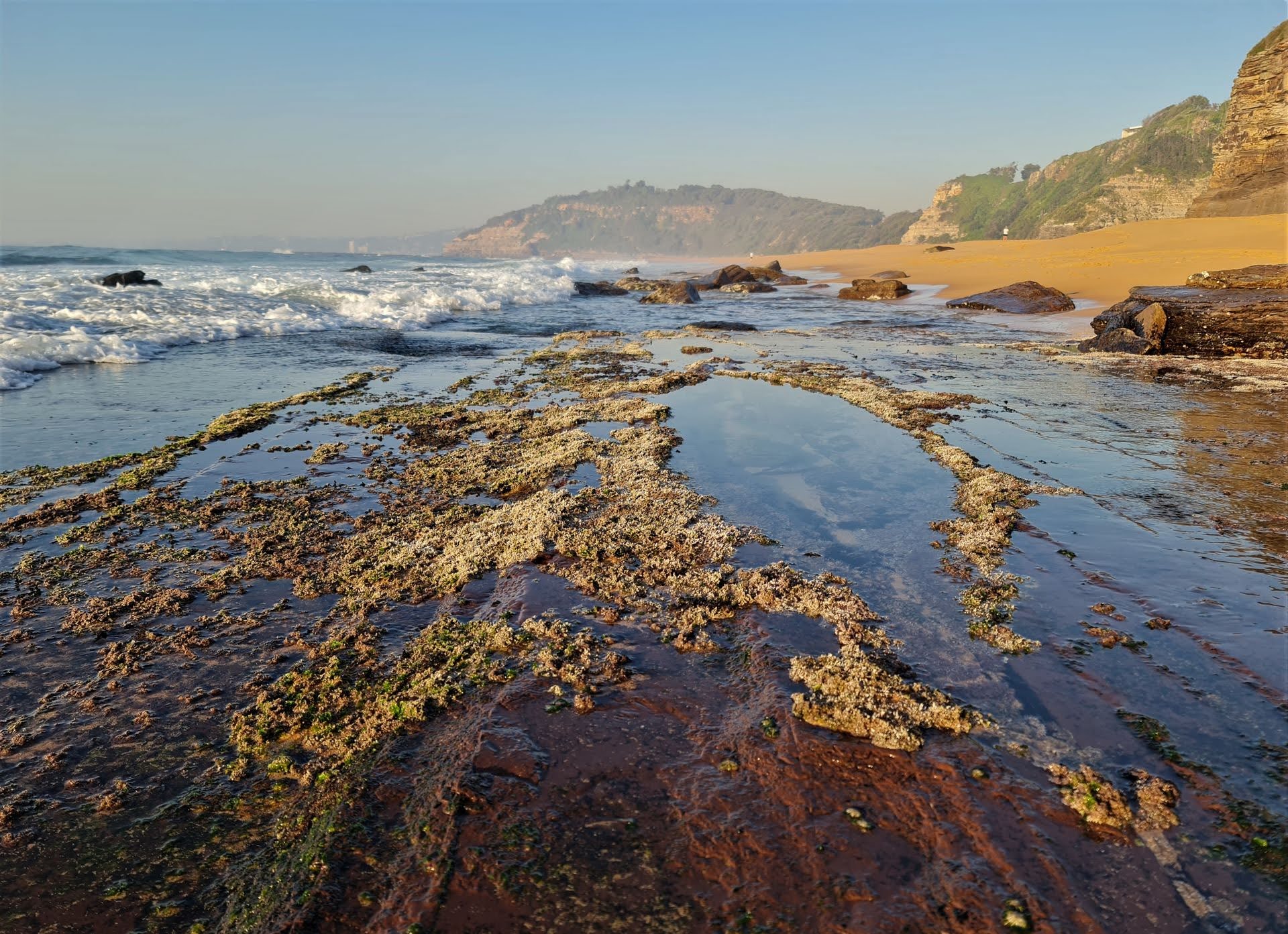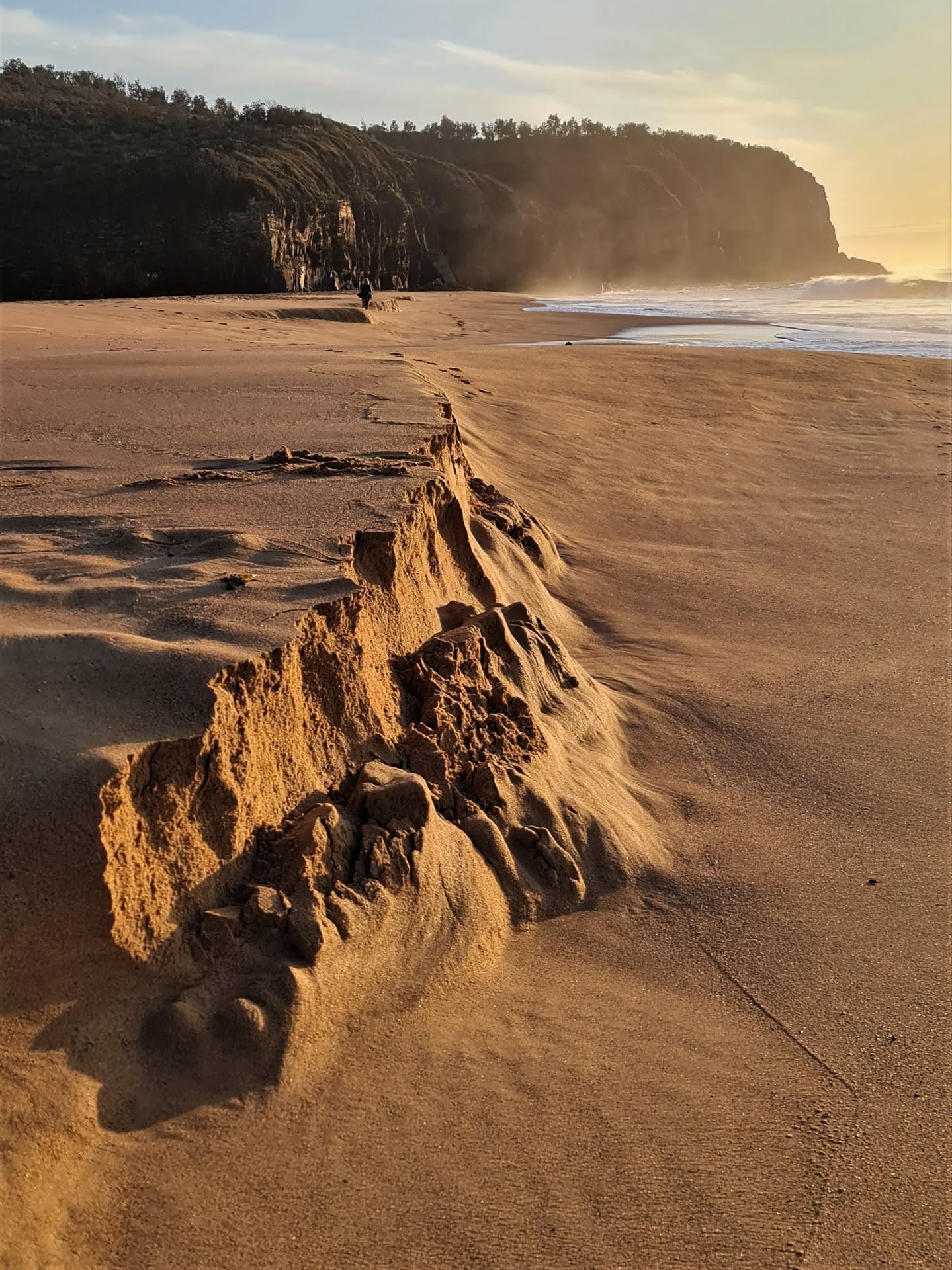 - Waves breaking of rock shelf at southern end (one wave was full of sand - see if you can spot it)