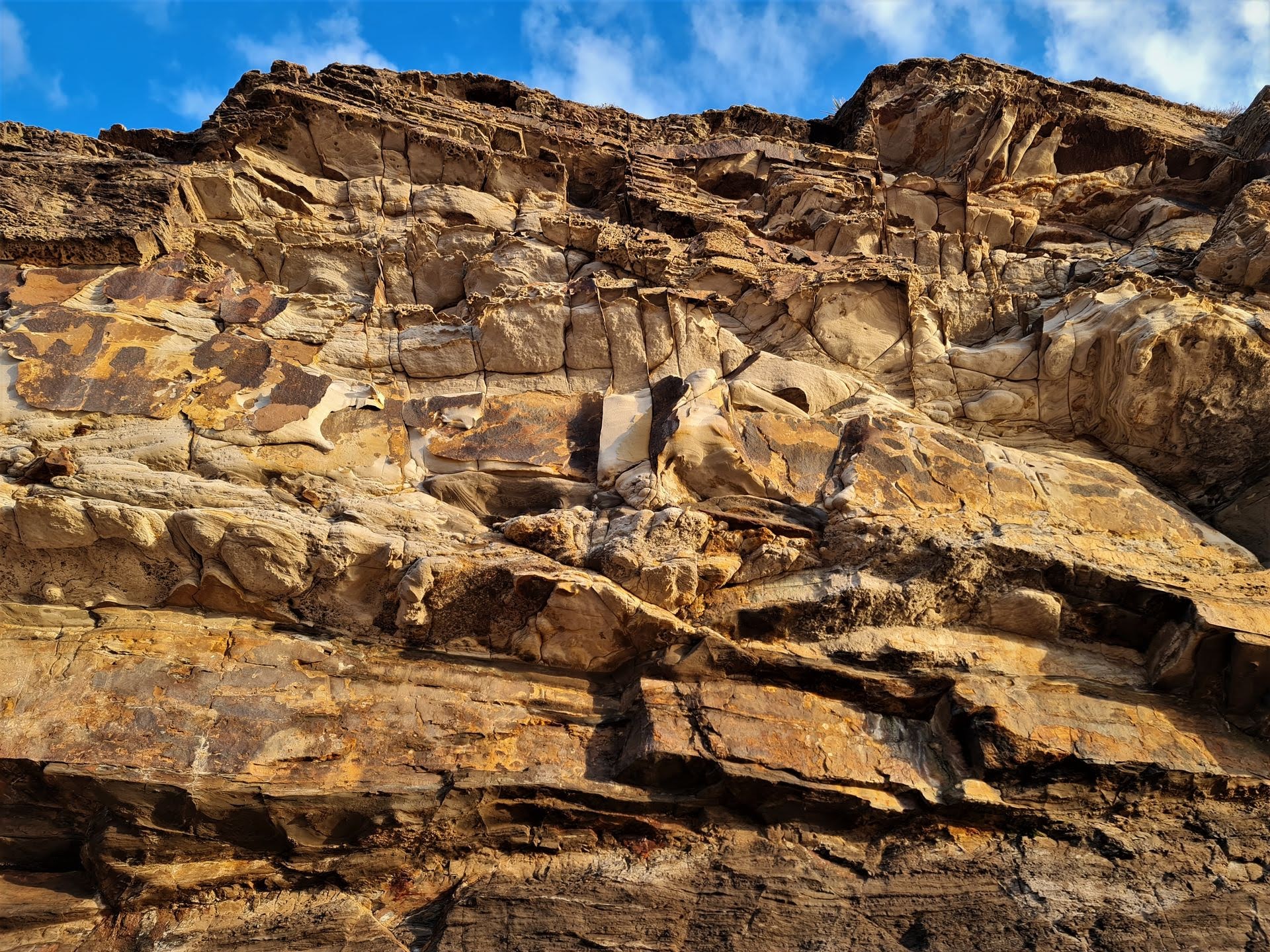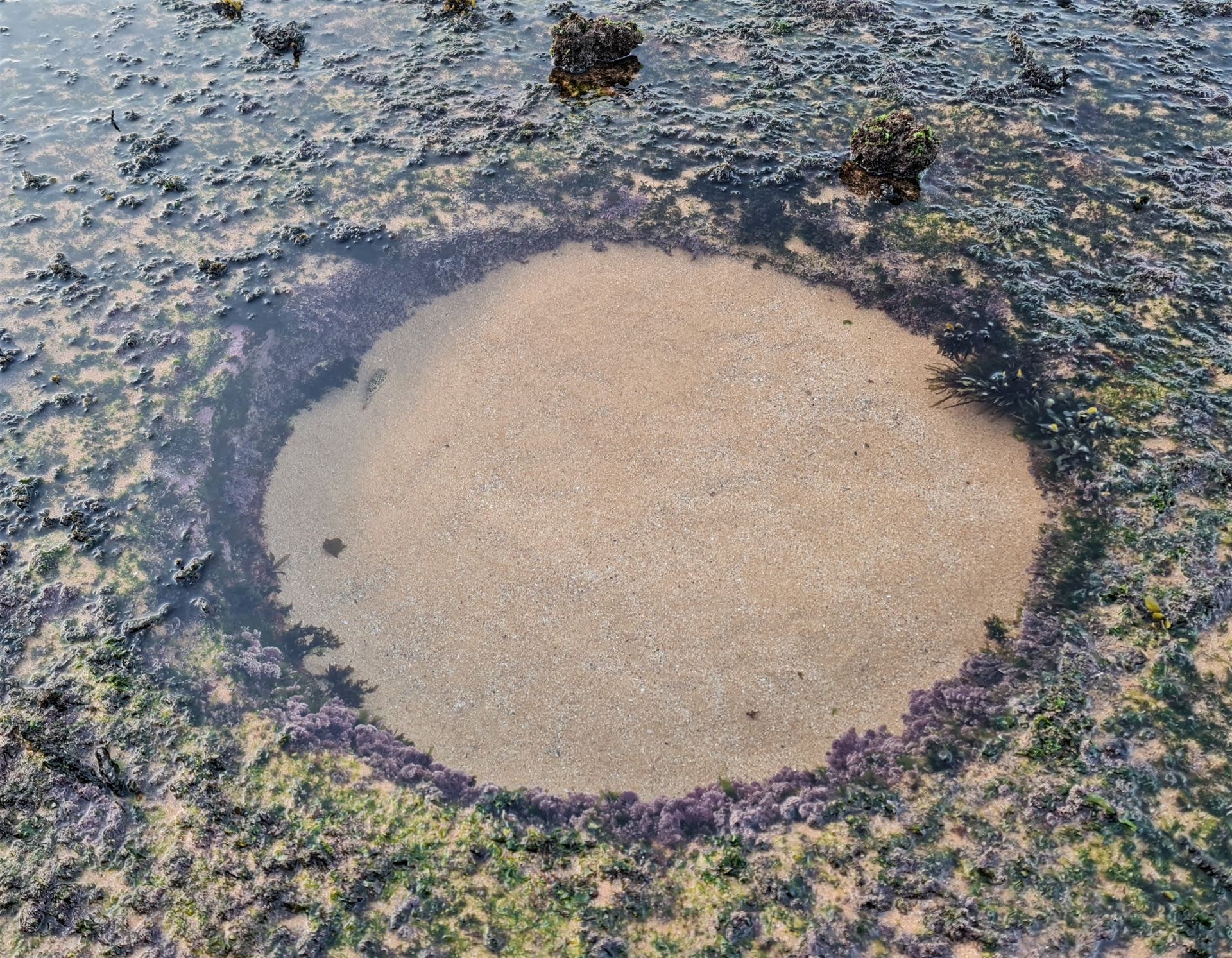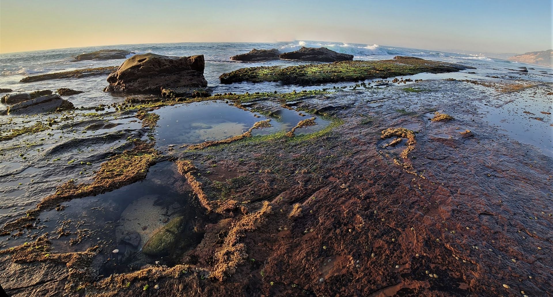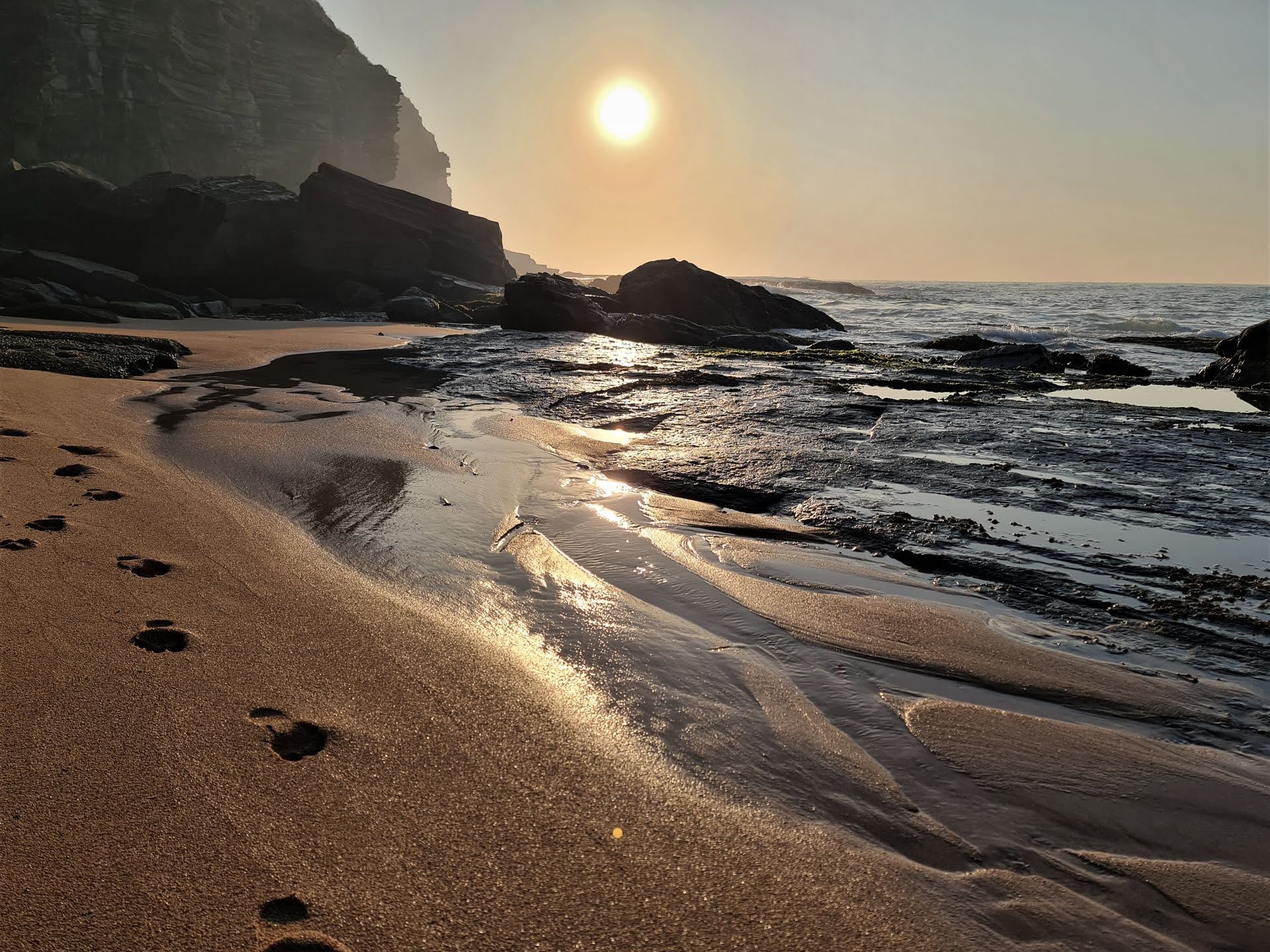 - Waves breaking of rock shelf at southern end (one wave was full of sand - see if you can spot it)
