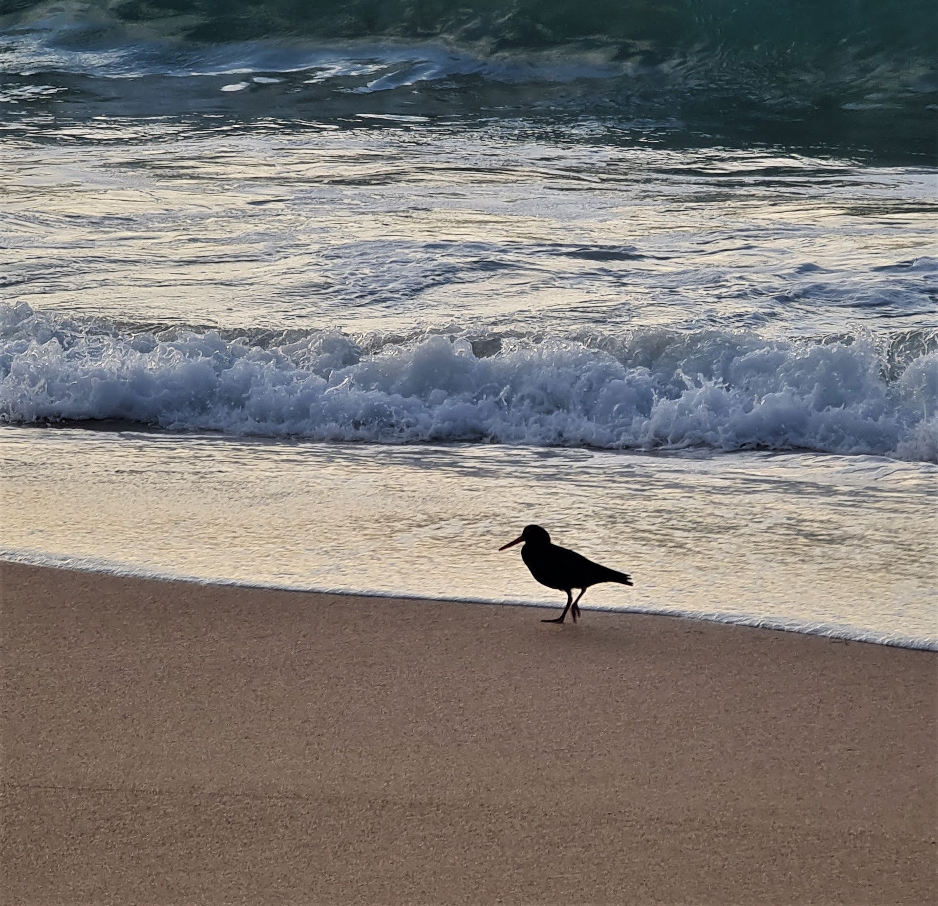 My interesting experience this week was to spot 2 birds sitting high up in the cliff tops about centre beach. I thought they were the resident Ospreys having a rest, but in using the zoom on my camera they were a pair of Kookaburras. It was unusual to see Kookas checking out a beach. Must be looking for beach crabs as the local Crow did last week.