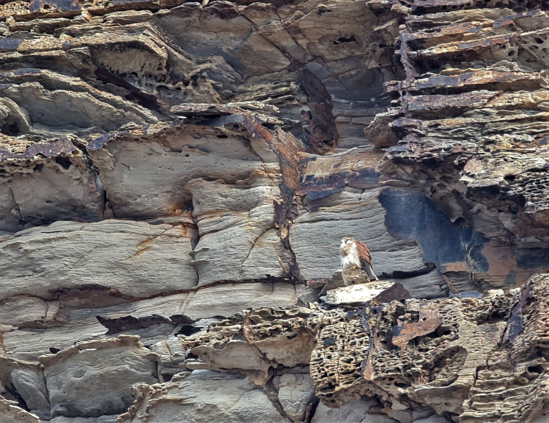 My interesting experiences this week included seeing a pair of Australian Kestrels landing on the cliffs at the northern end of Turimetta Beach. I think from their behaviour, they also have a nest on a ledge high up towards the top of the cliff.