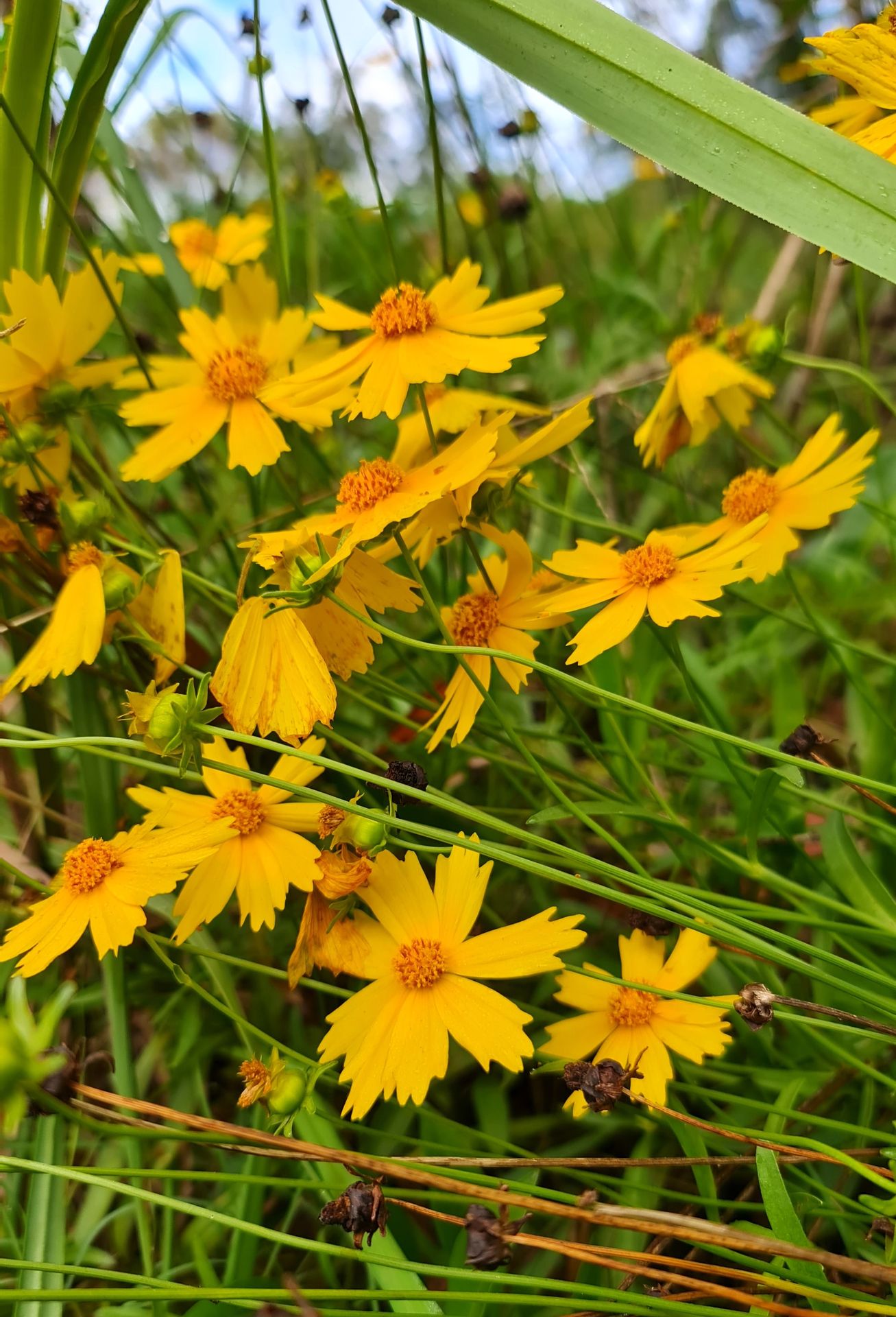 Coreopsis Lanceolata on edge of Deep Creek Reserve carpark, also commonly known as tickseed, Native to North America, adopted as Florida’s official state wildflower in 1991, but regarded as a weed in NSW and QLD. This garden escapee is listed as a priority environmental weed in one Natural Resource Management region and is commonly found on roadsides, along railway lines and in disturbed areas. Coreopsis (Coreopsis lanceolata) has invaded Australian native grasslands and open woodlands and is most abundant in the Stanthorpe district in south-eastern Queensland. However, it is thought to have the potential to become a major weed in open forest habitats within the coastal and sub-coastal districts of Queensland and New South Wales. Please pull it out or report to council if you spot it in our bush reserves.