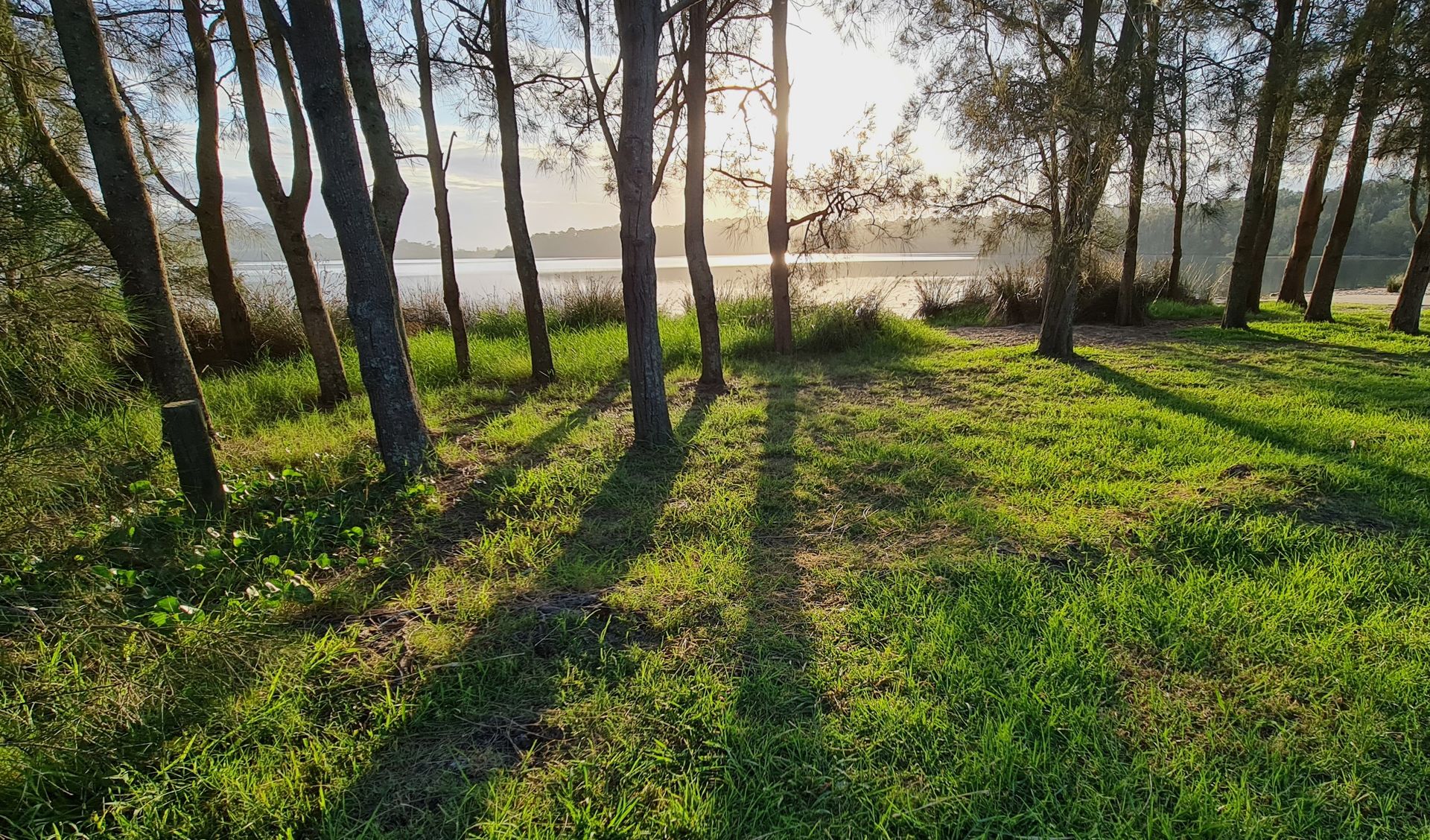 Middle Creek, Narrabeen - sun between trees, February 19 2025