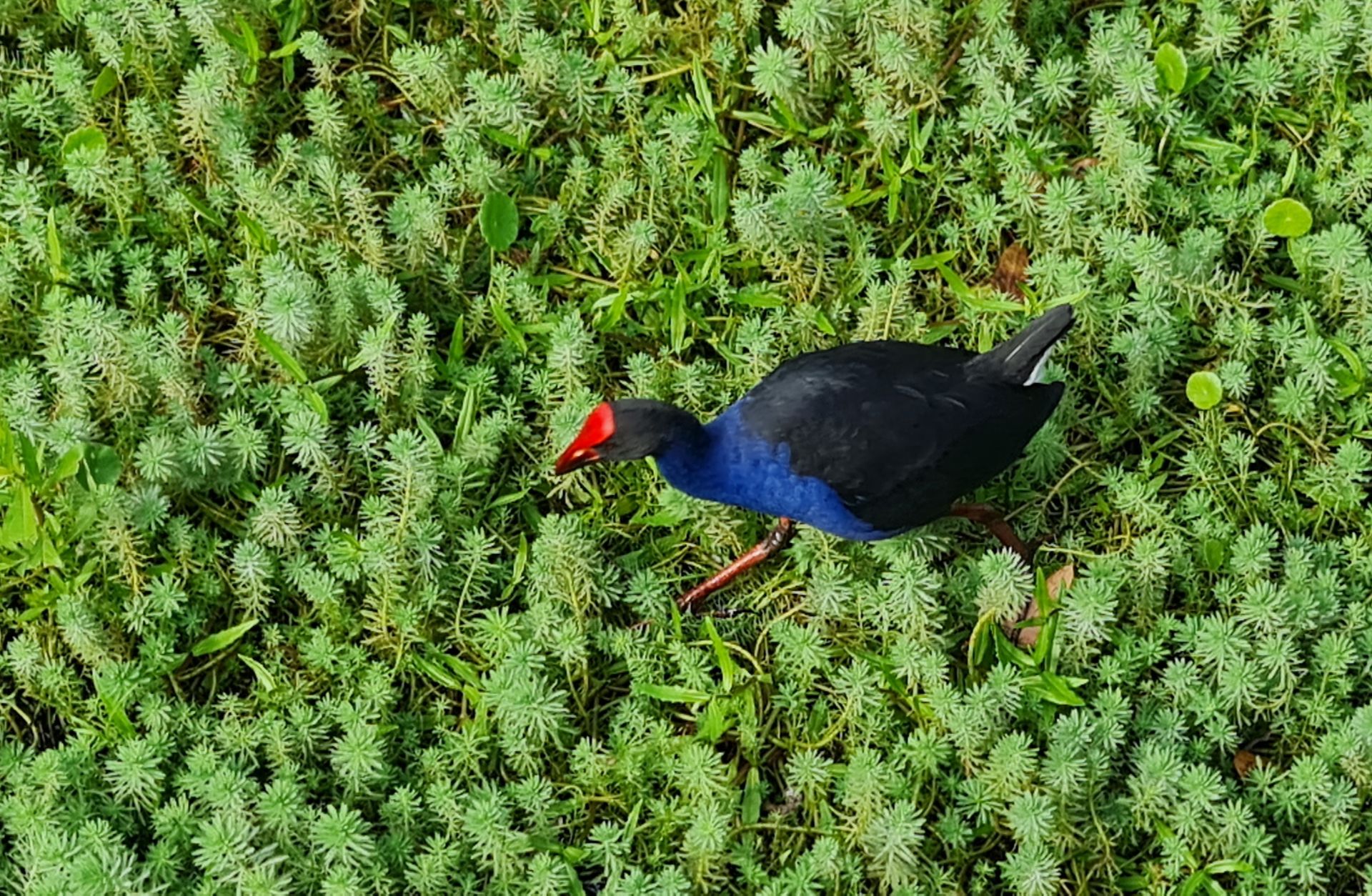Purple Swamphen, Porphyrio porphyrio, among the weeds at Warriewood Wetlands, February 24, 2025