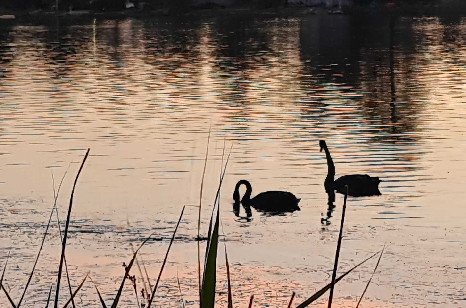 Narrabeen Lagoon, Black Swans, Cygnus atratus, near bride and Woolworths, February 28, 2025
