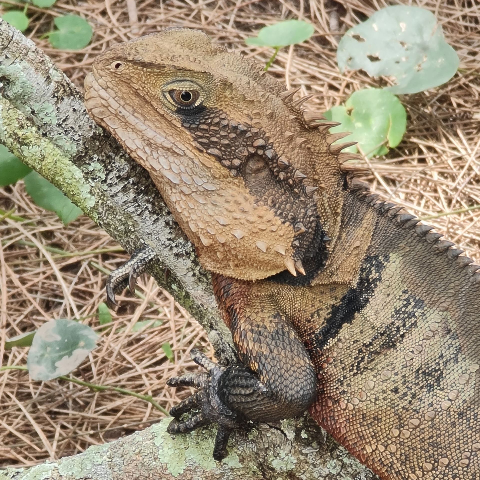Warriewood Wetlands, male Water dragon resting on a branch, March 2, 2025