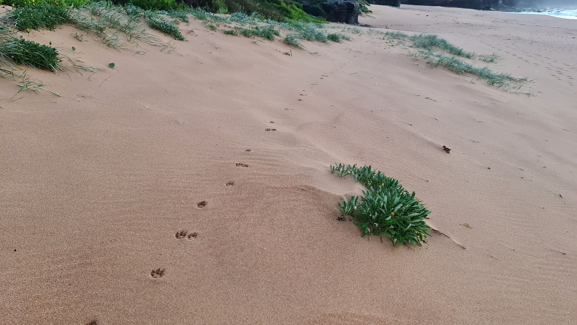 Turimetta Beach, possible fox tracks at the back of the beach, March 3 2025