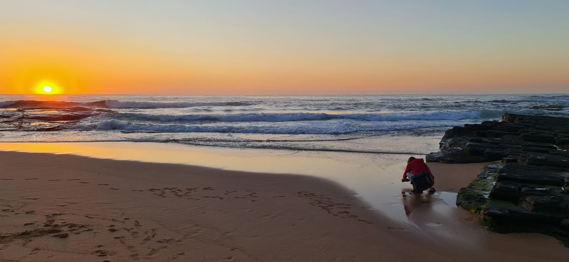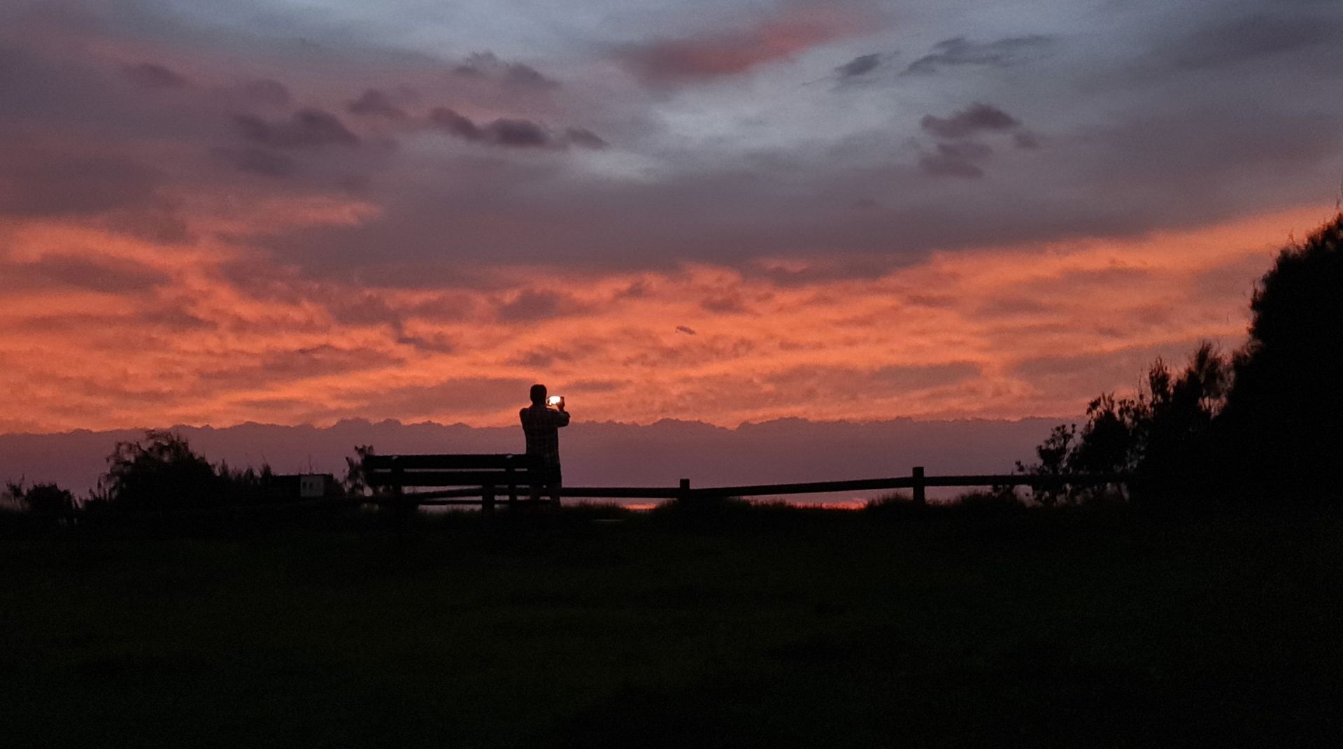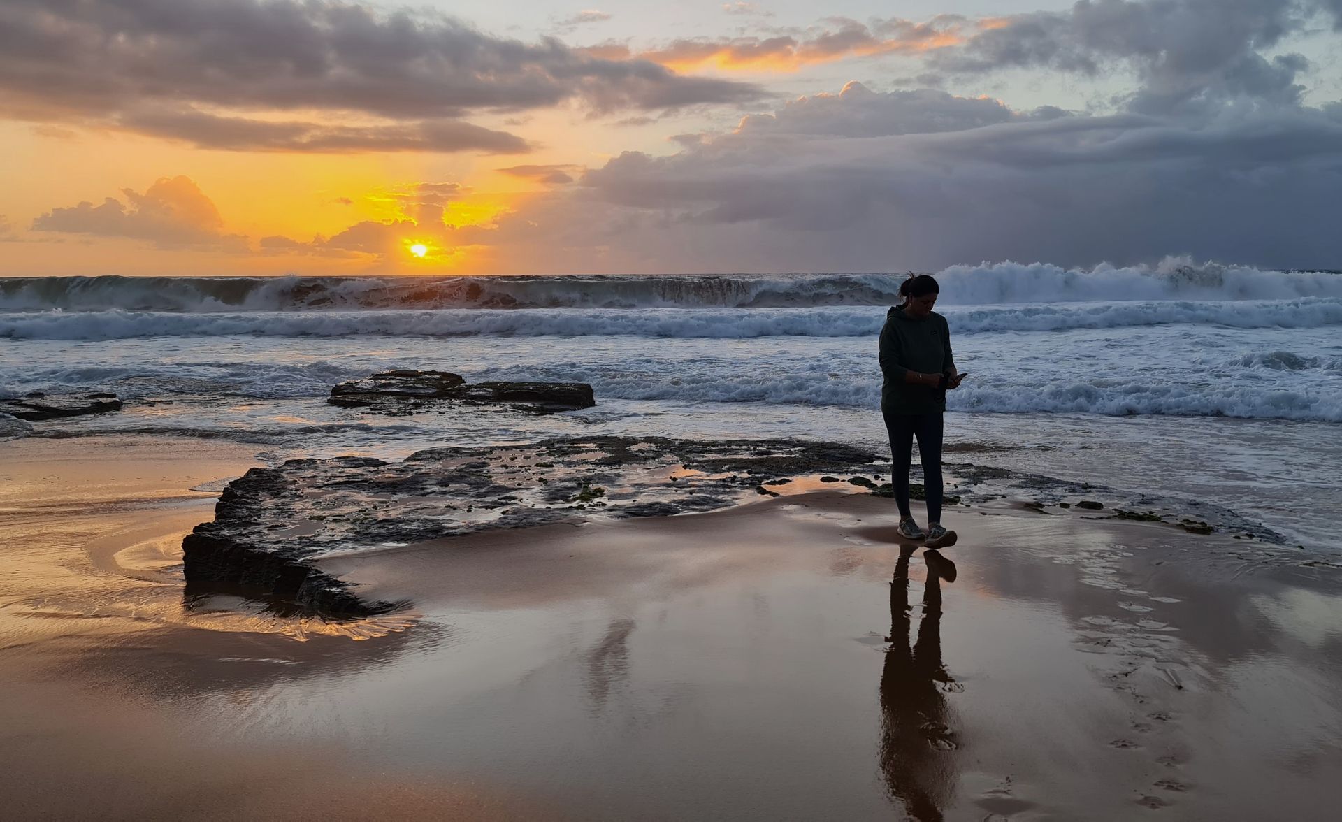 Turimetta Beach sunrise, checking pic on mobile, March 6, 2025