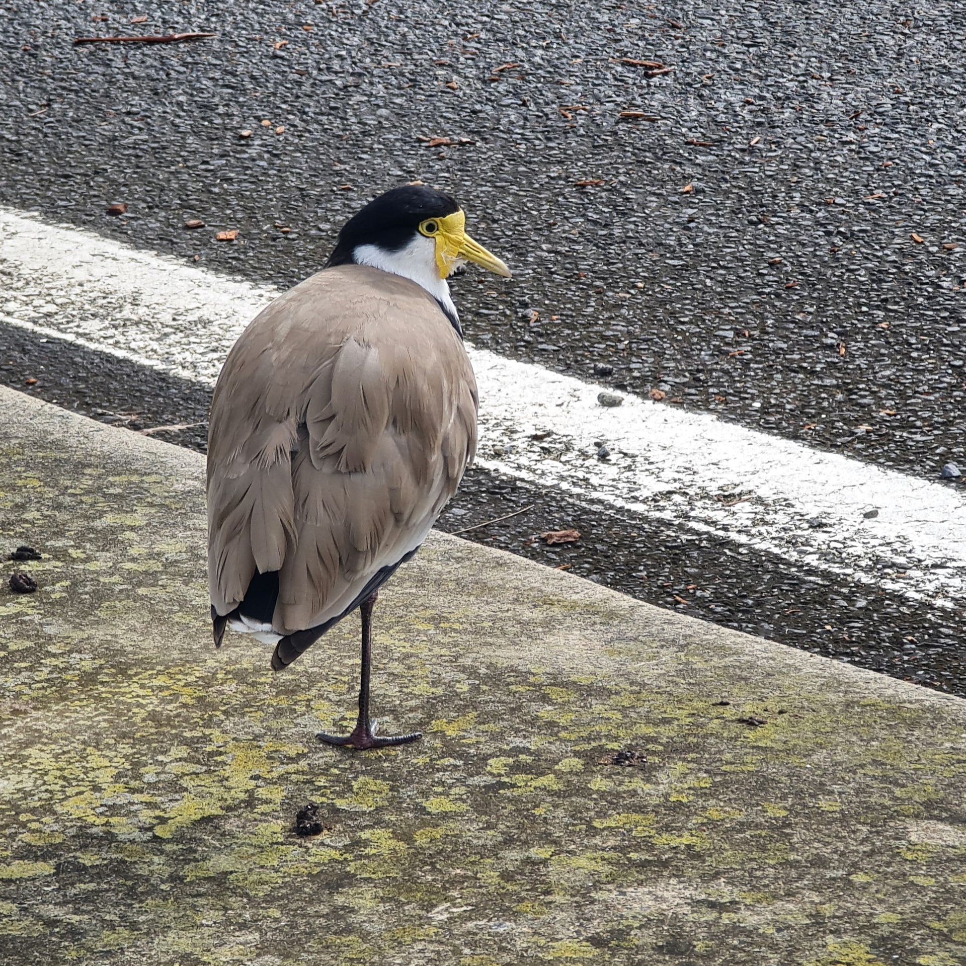 Middle Creek Reserve - Masked Lapwing on one leg, March 12, 2025