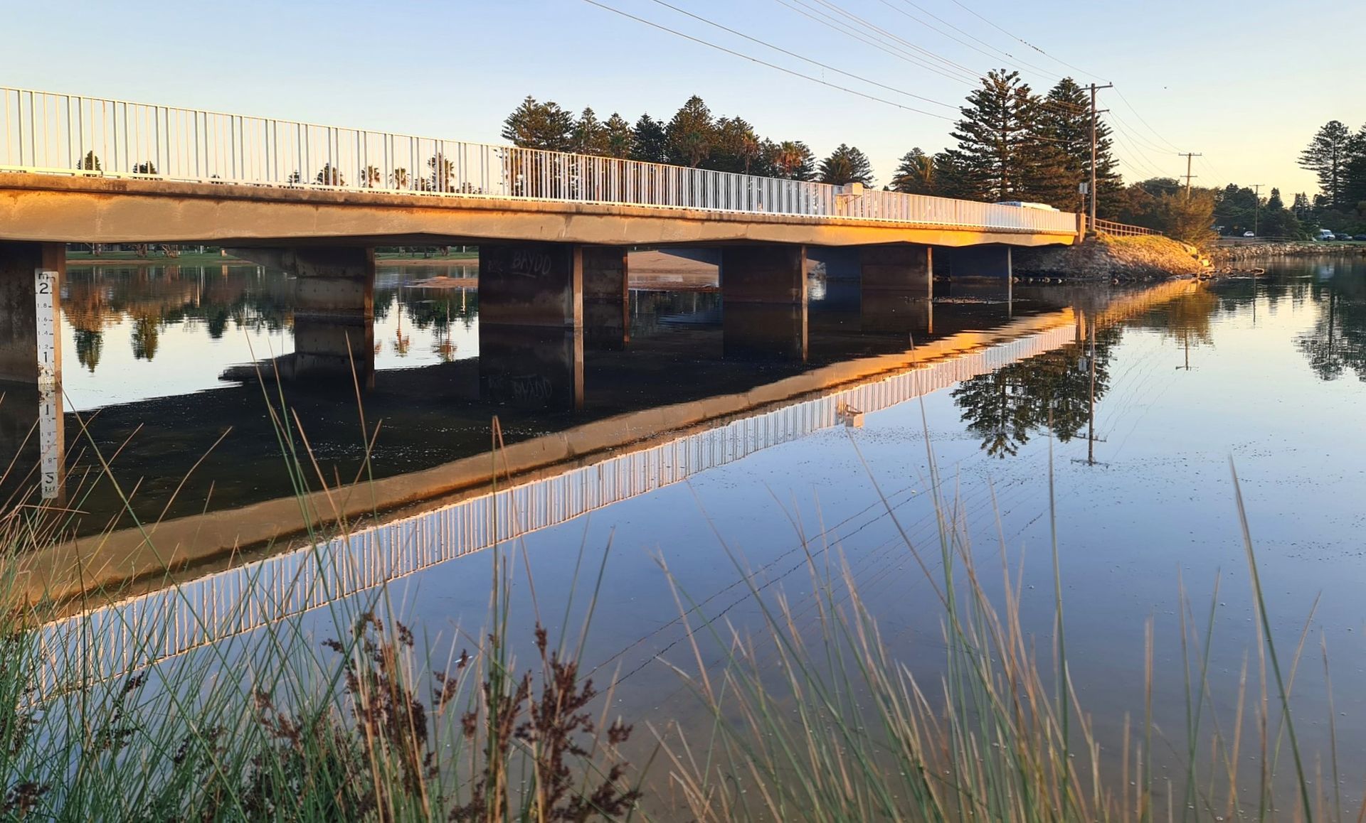 Narrabeen Lagoon bridge in sunlight (near entrance), March 14, 2025