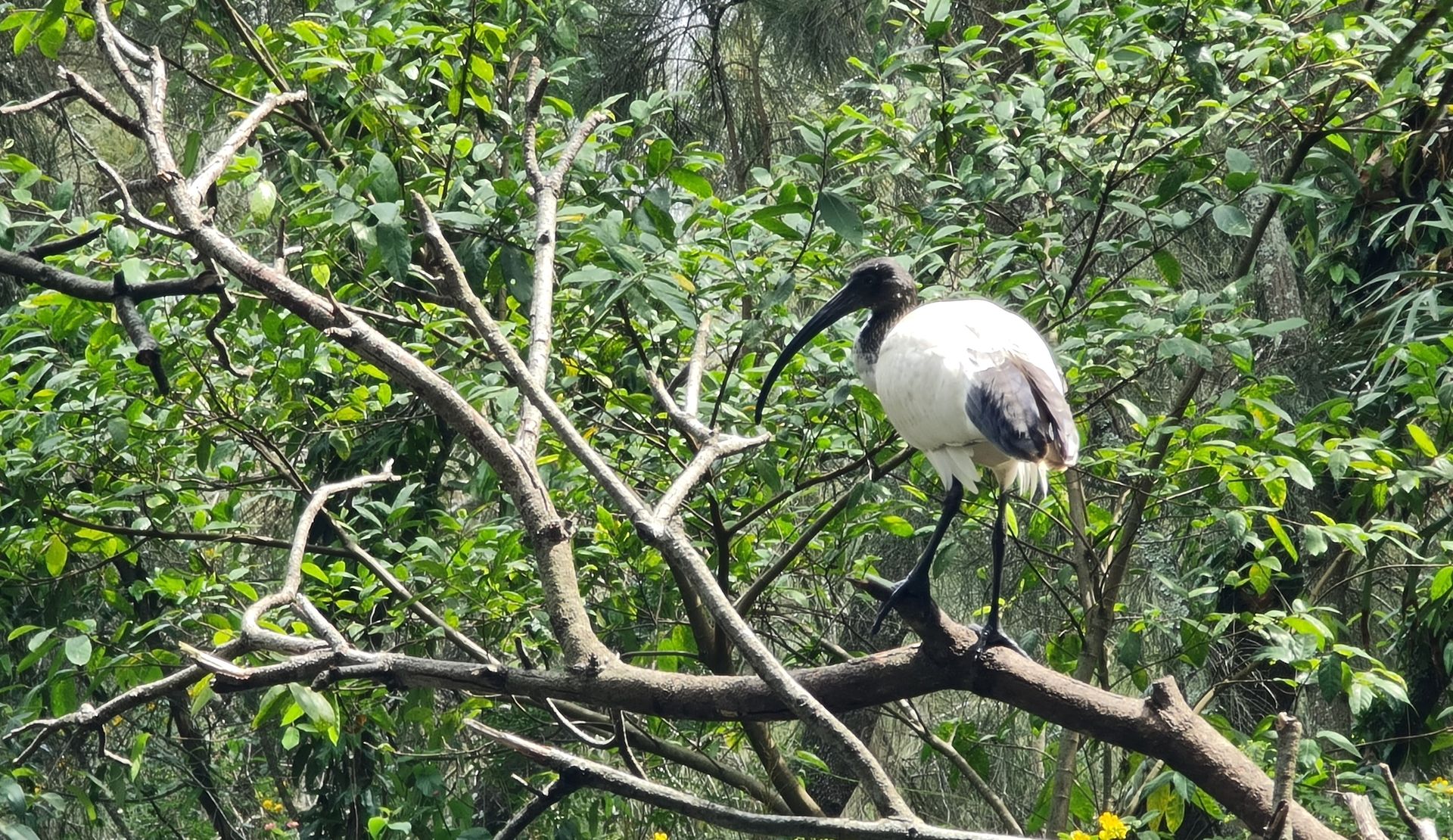 Warriewood Wetlands: Australian Ibis on tree branch, March 16, 2025