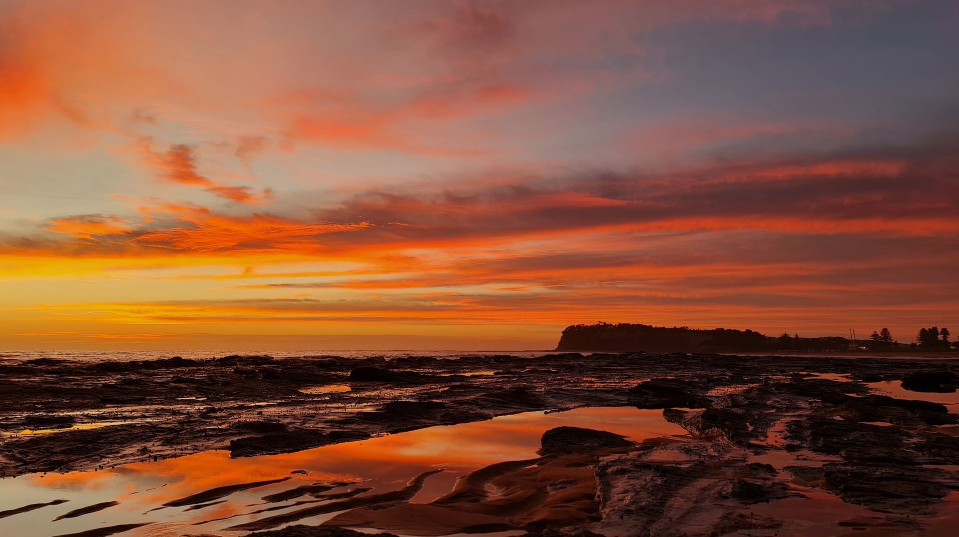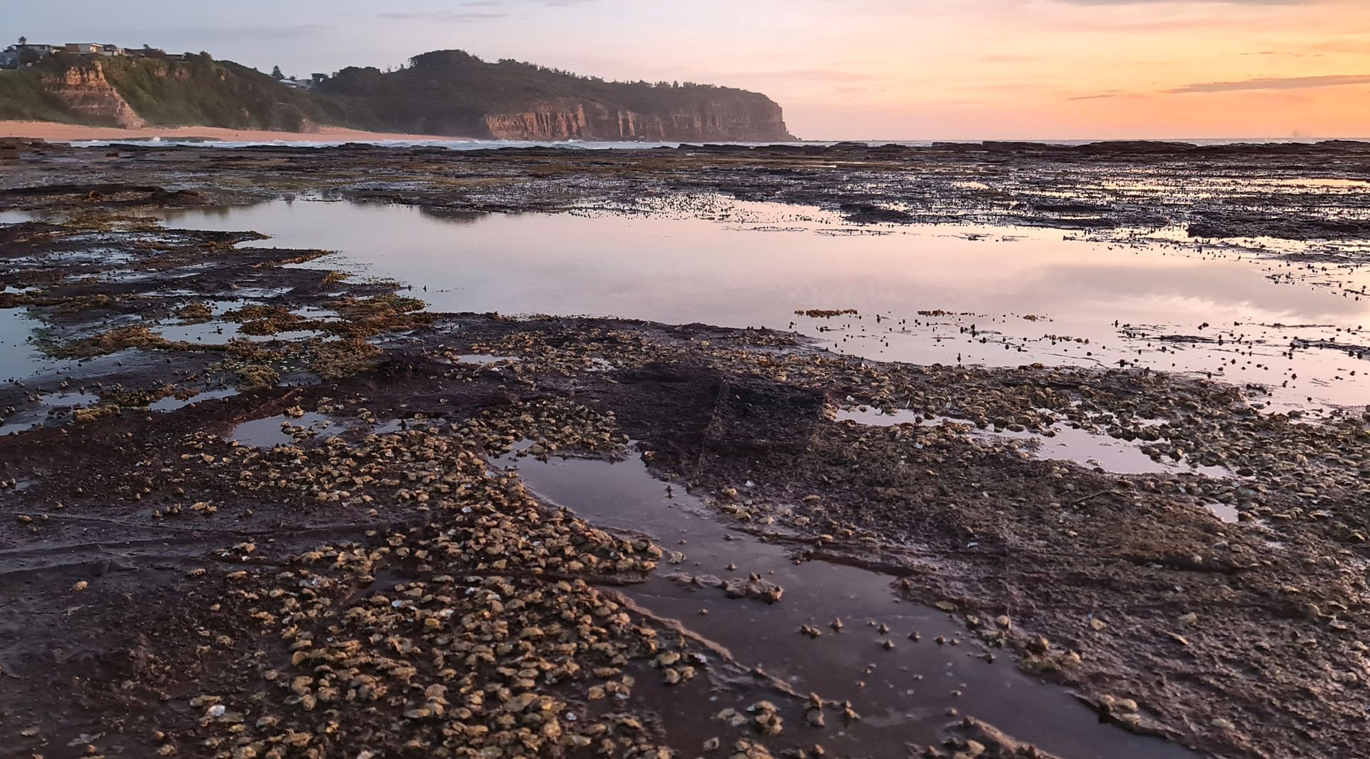 North Narrabeen Rockshelf at sunrise, March 20, 2025