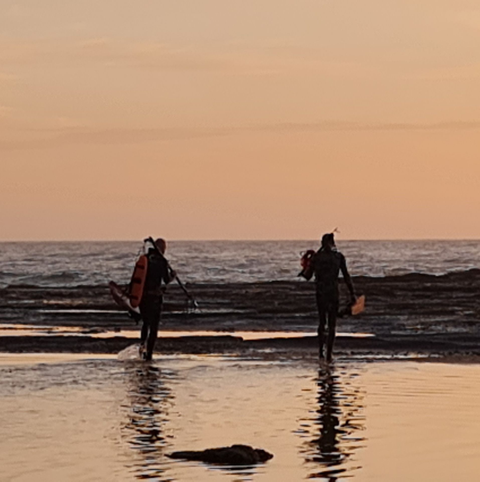 North Narrabeen Rockshelf at sunrise - spearfishermen, March 20, 2025