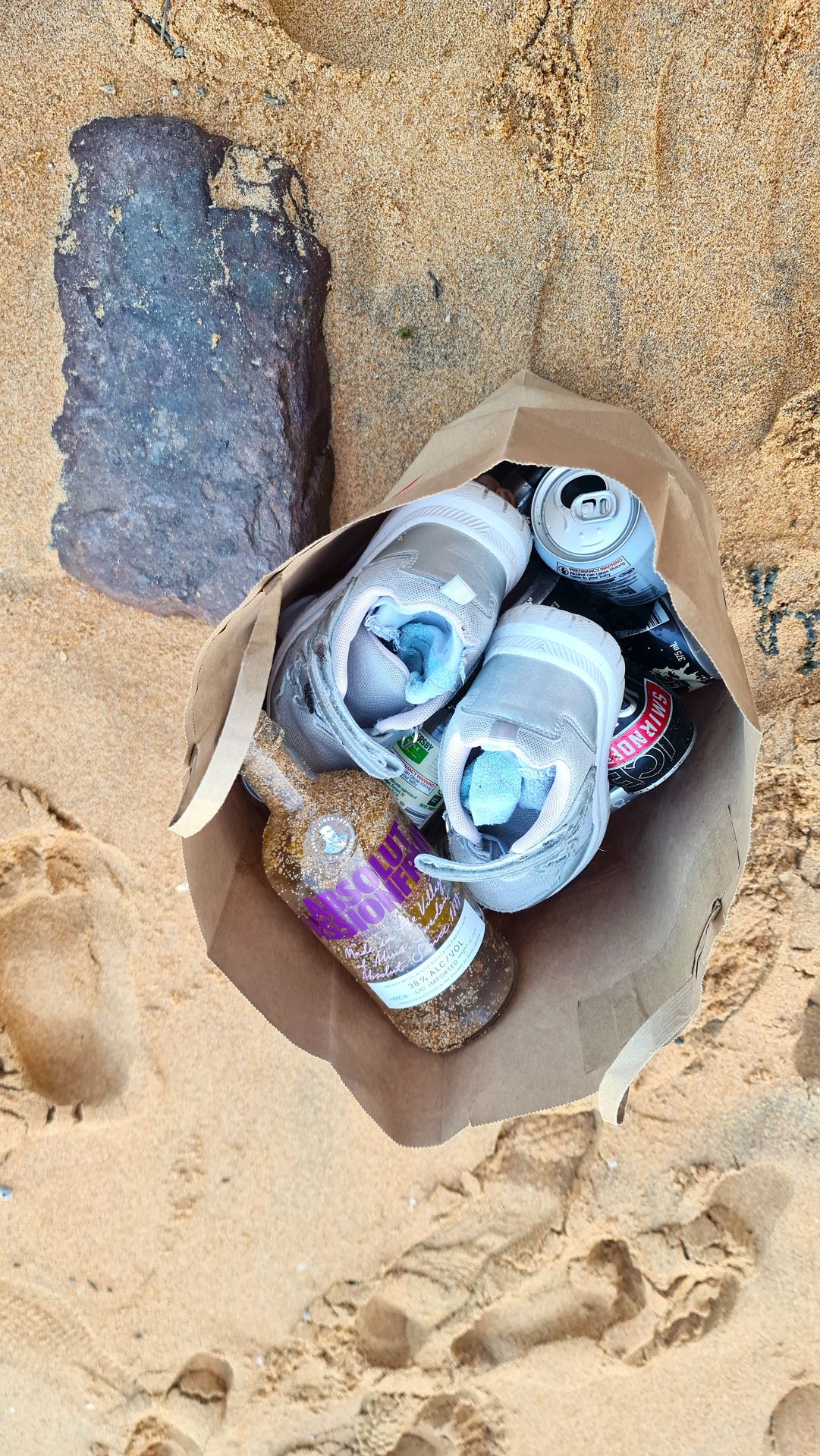 Om Monday morning I began my usual garbage pickup from the southern steps, only to find there was none. I thought that the partygoers have finally seen the light, but by the time I reached the cave at the northern end there were bottles everywhere and a burnt out fireplace. Business as usual.