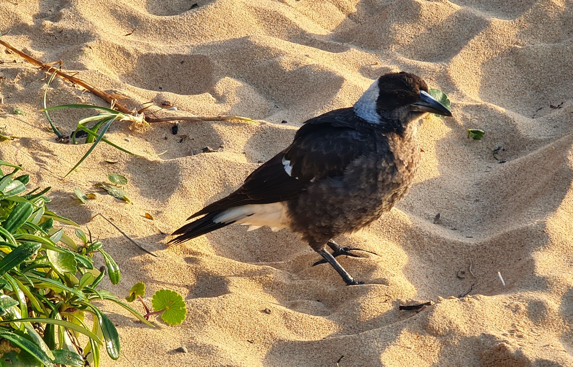 Magpie family on Turimetta beach, early morning beachcombers, First Day of Spring 2025, Monday September 1