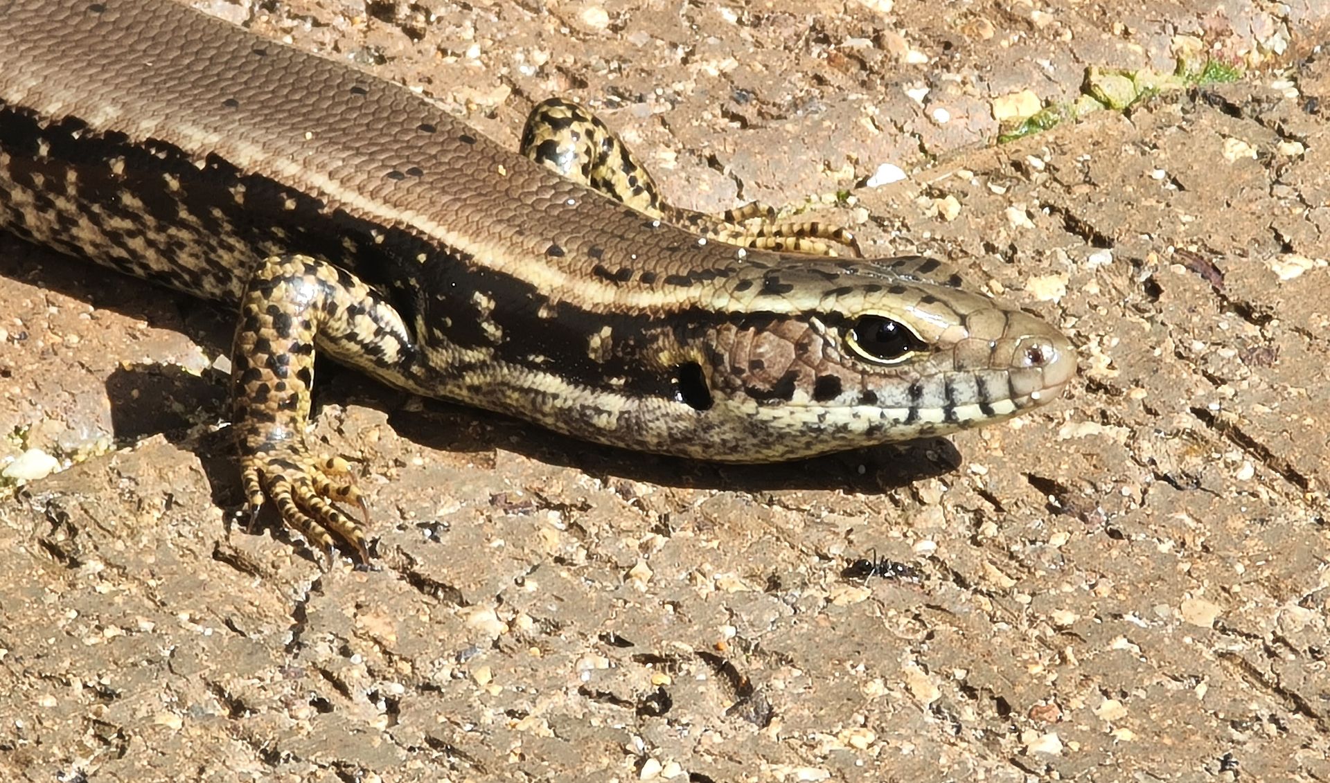 thumb-sized skink sunning itself on pavers, Warriewood, Second Day of Spring 2025, Tuesday September 2