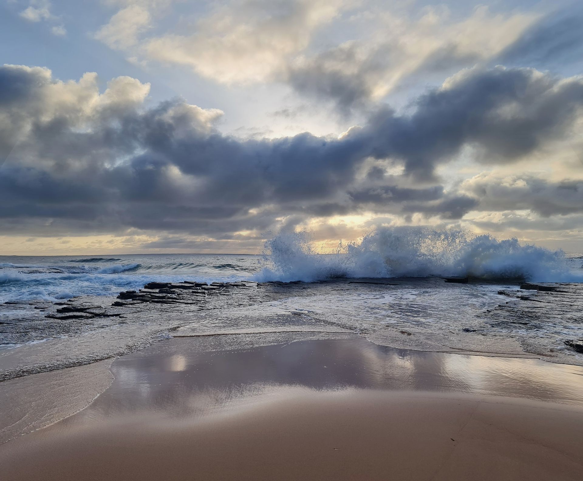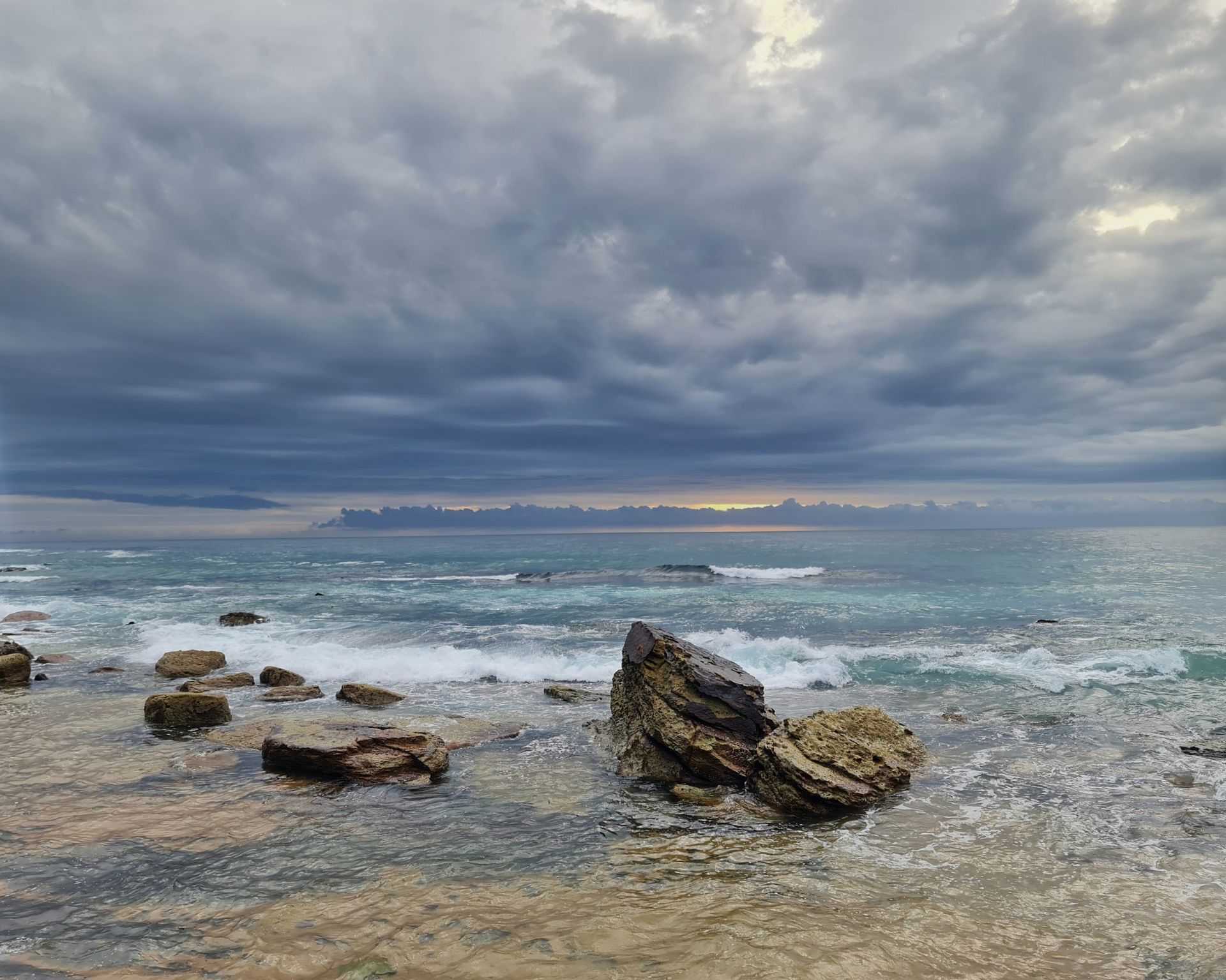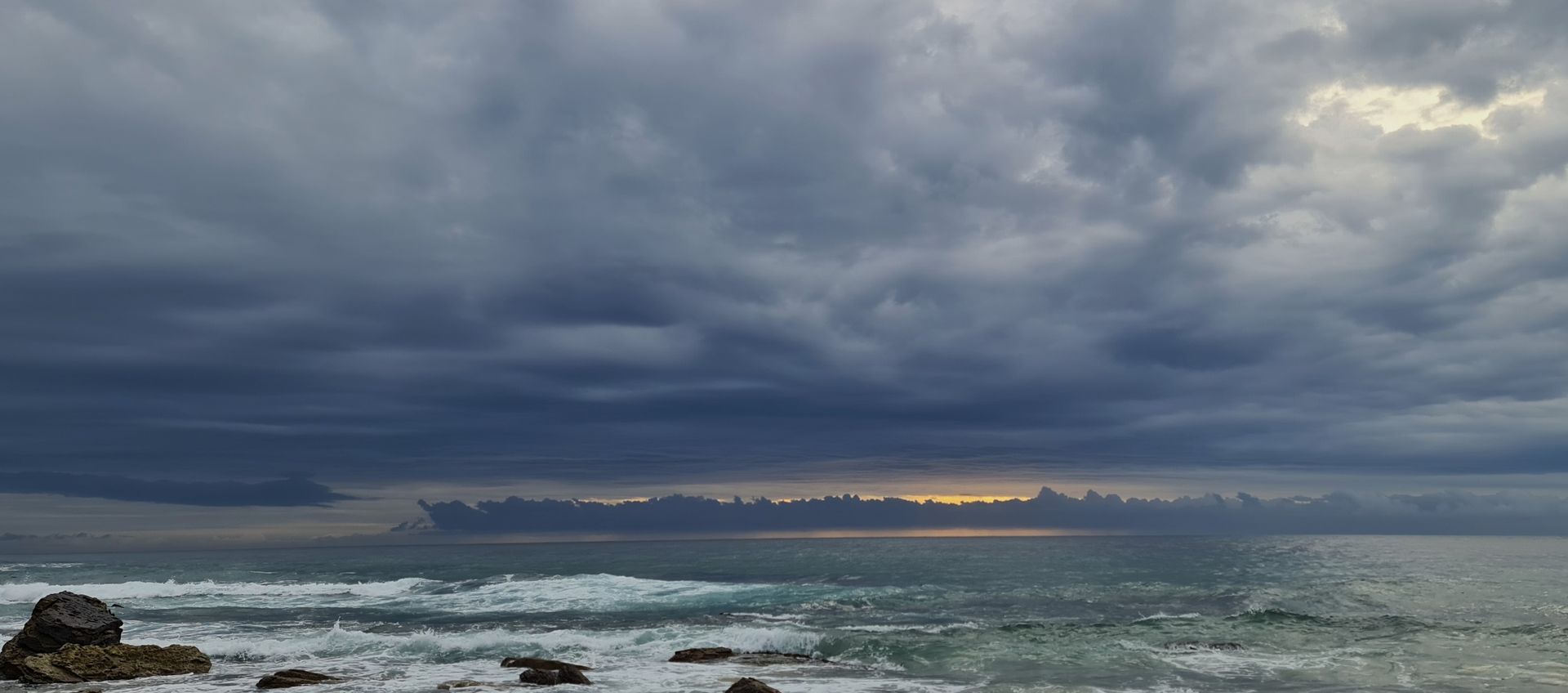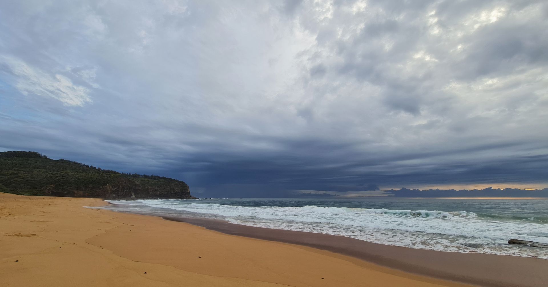 Above and below: Turimetta Beach waters and storm clouds, January 16 2025