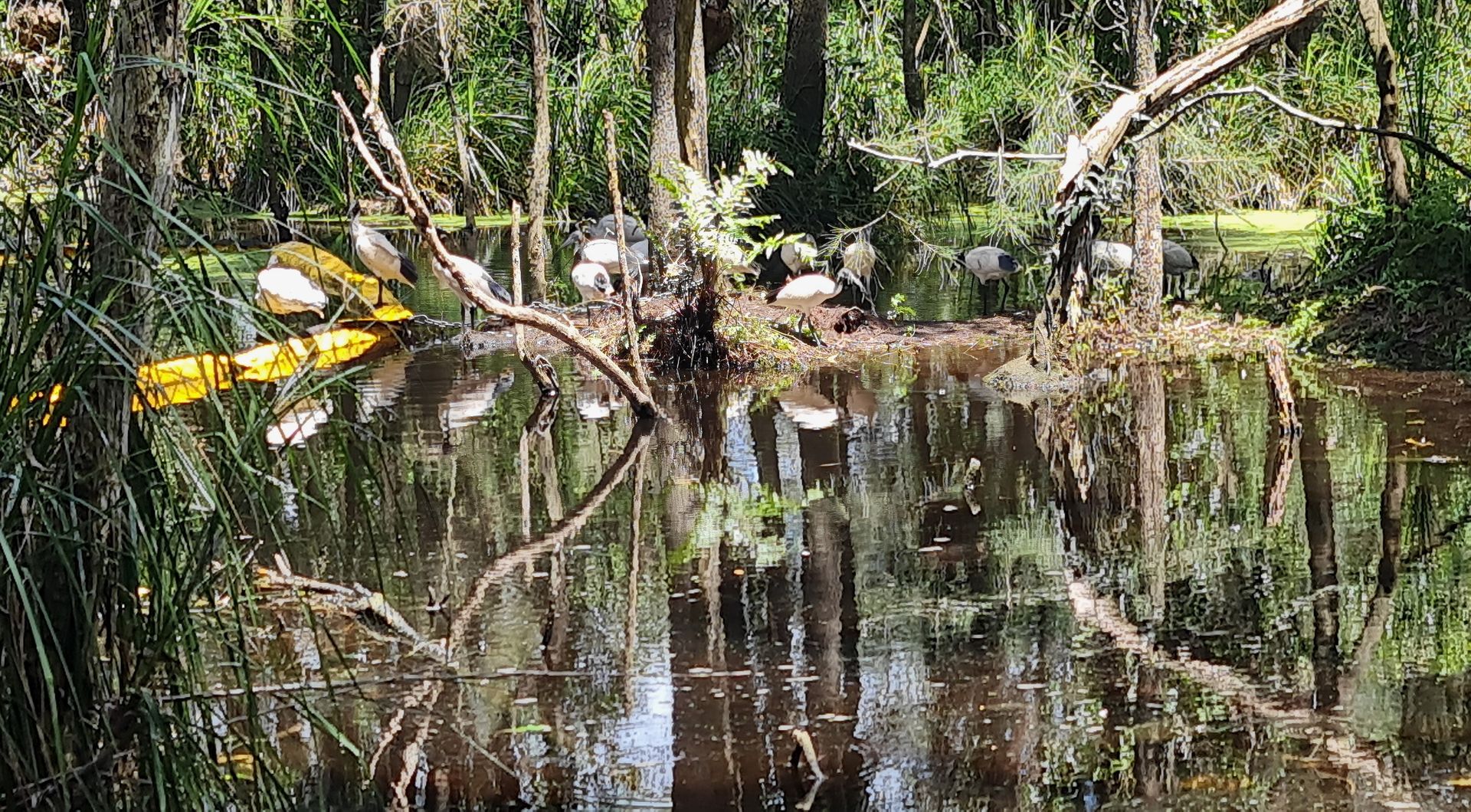 In Warriewood Wetlands - water birds such as the Sacred Ibis live here