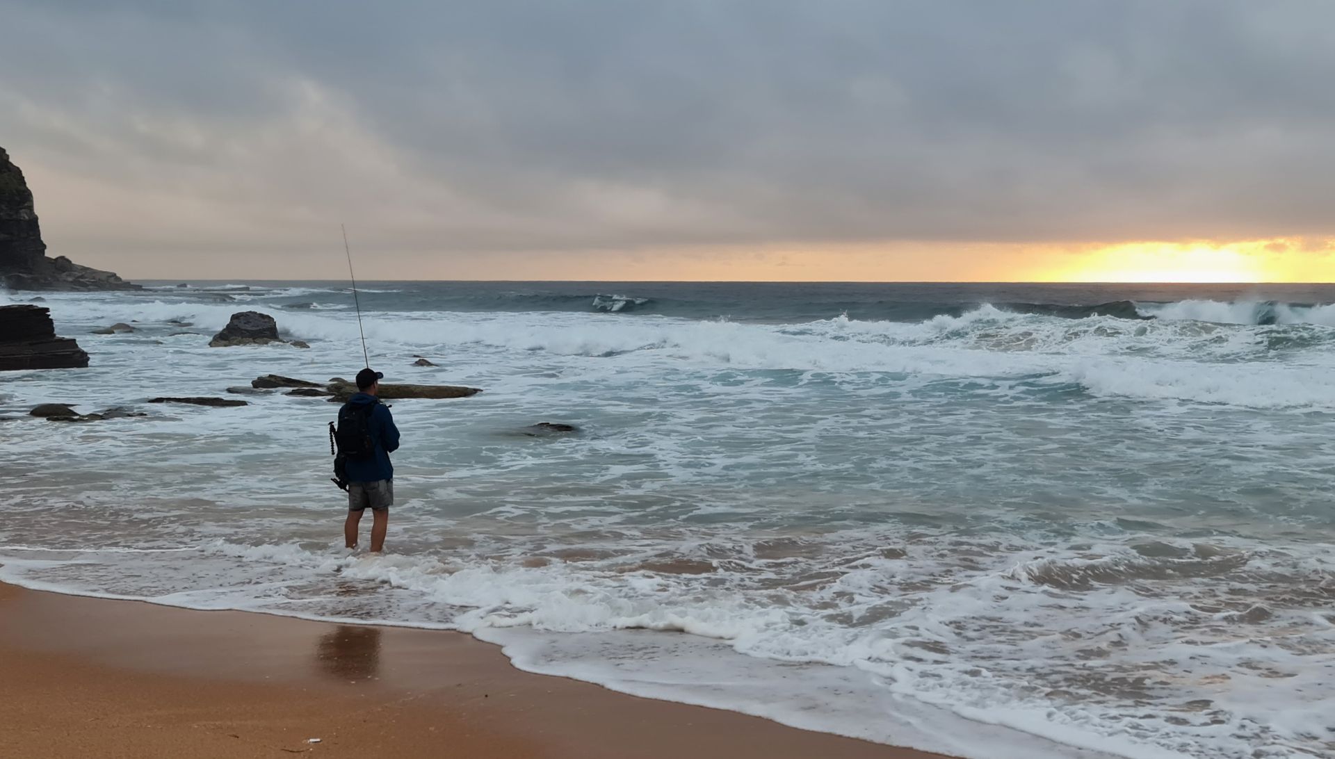 Turimetta Beach at sunrise and lone fisherman, January 30, 2025