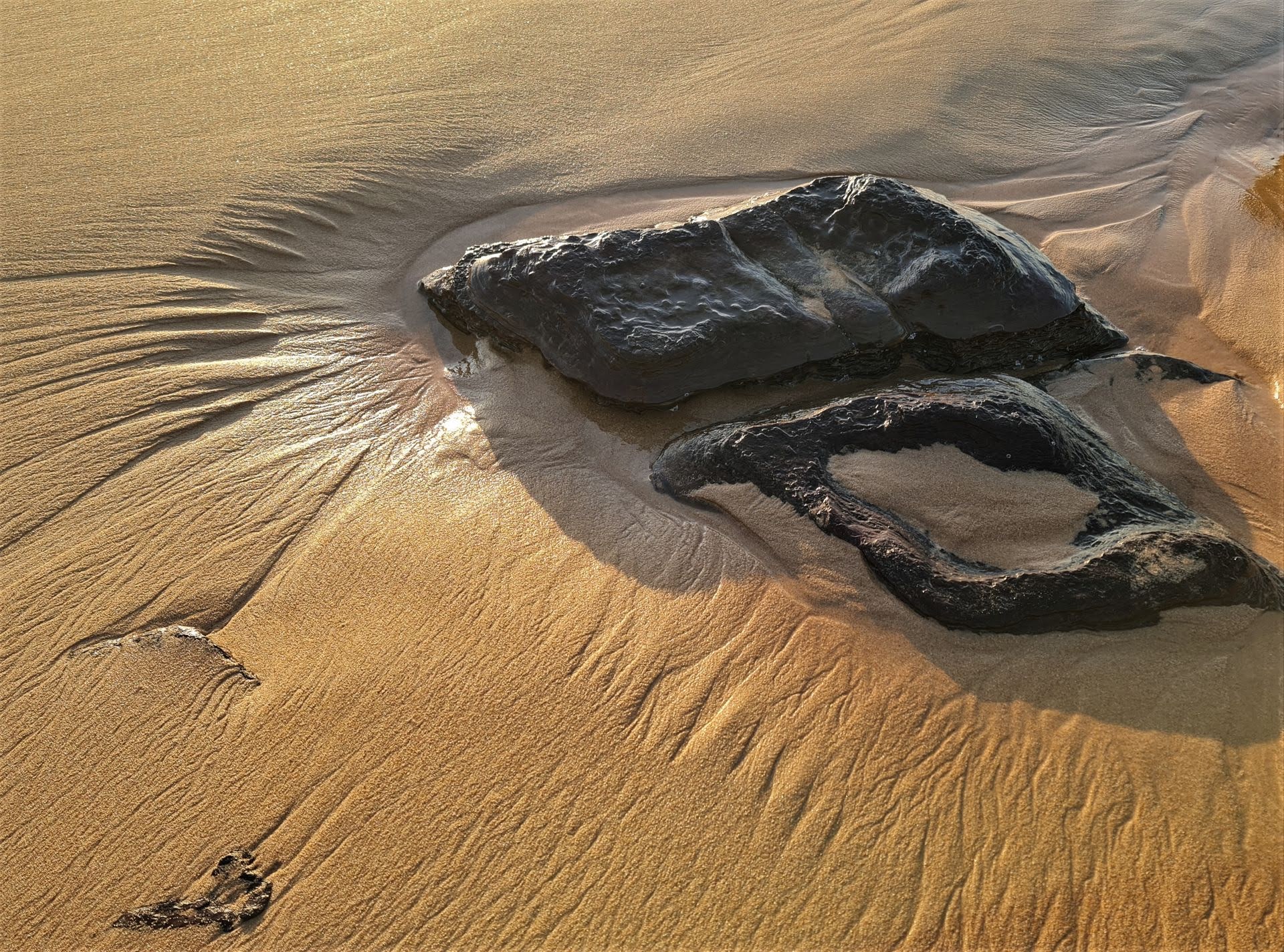 The sand returned at the northern end, covering all the rocks, but there was less sand at the southern end. Each environment had its own beauty.