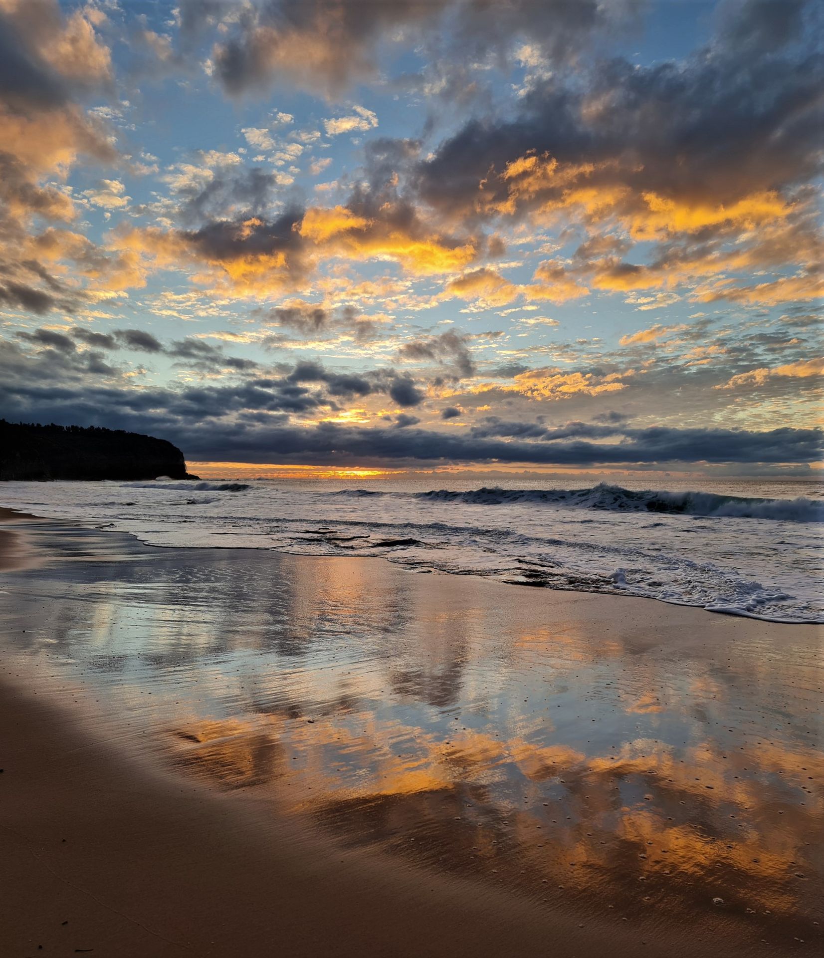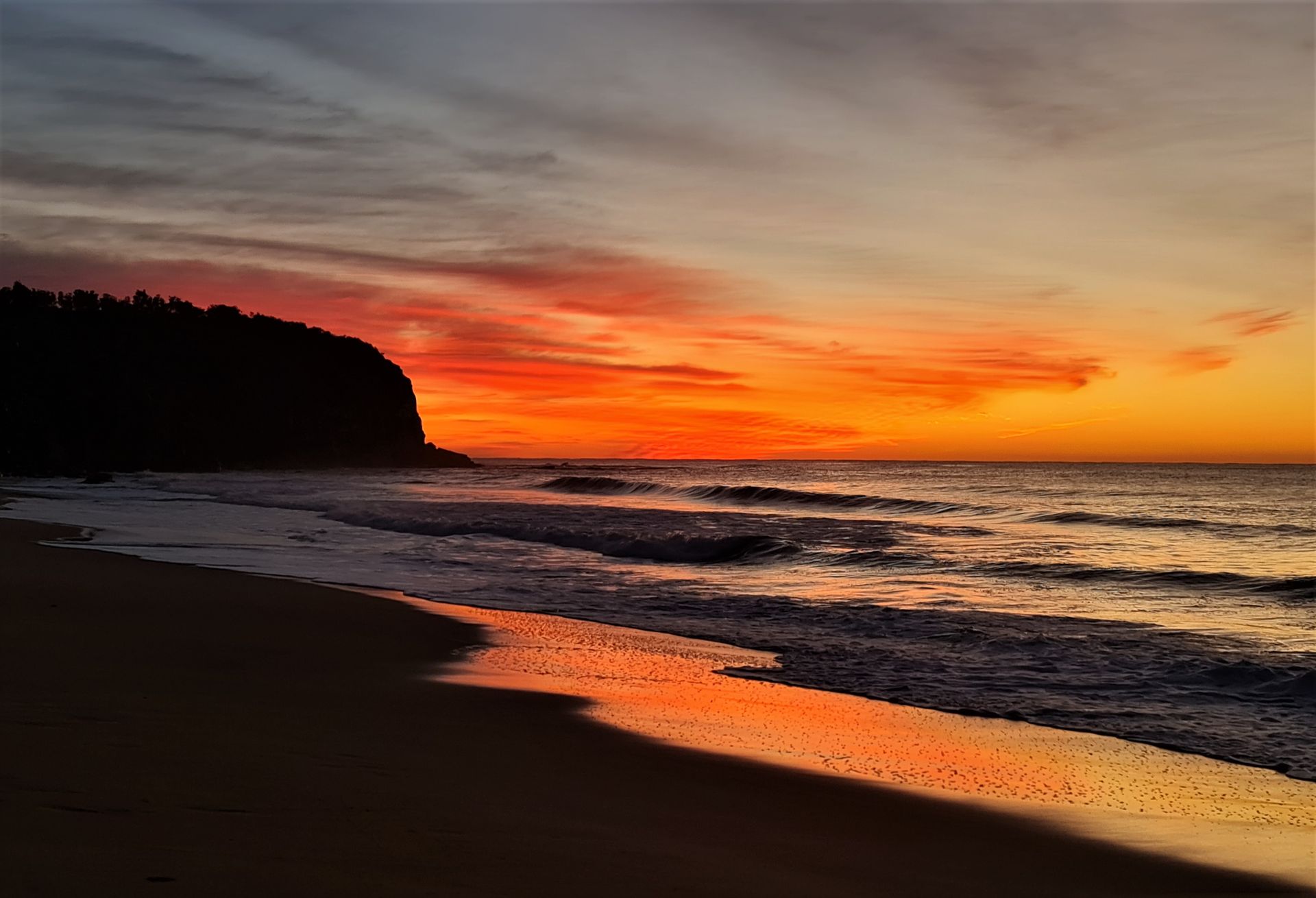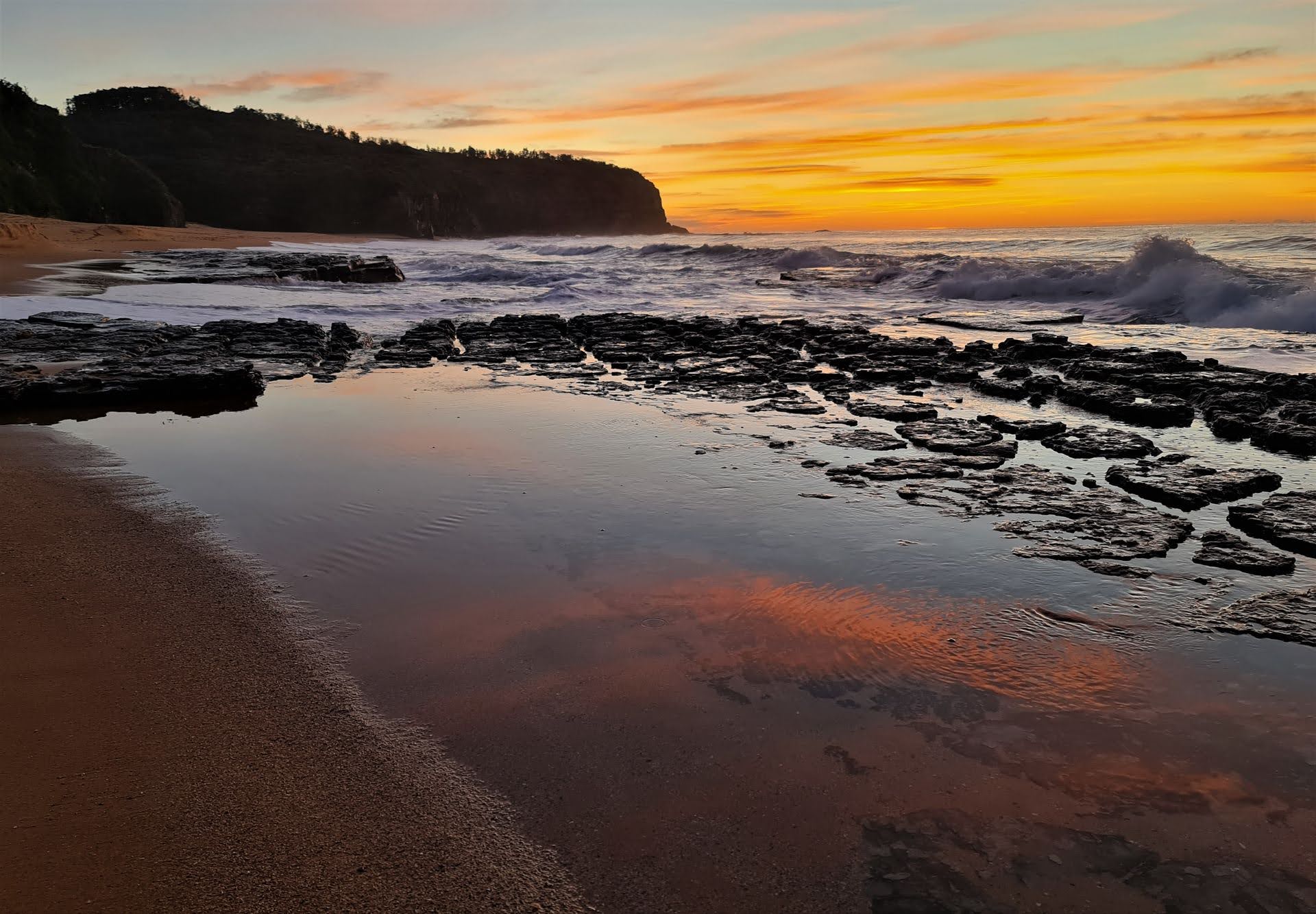 I only had a couple of visits this week to Turimetta Beach due to weather & commitments, but did score a beautiful golden /red sky early in the week. The sand is well & truly back with some very high tides.