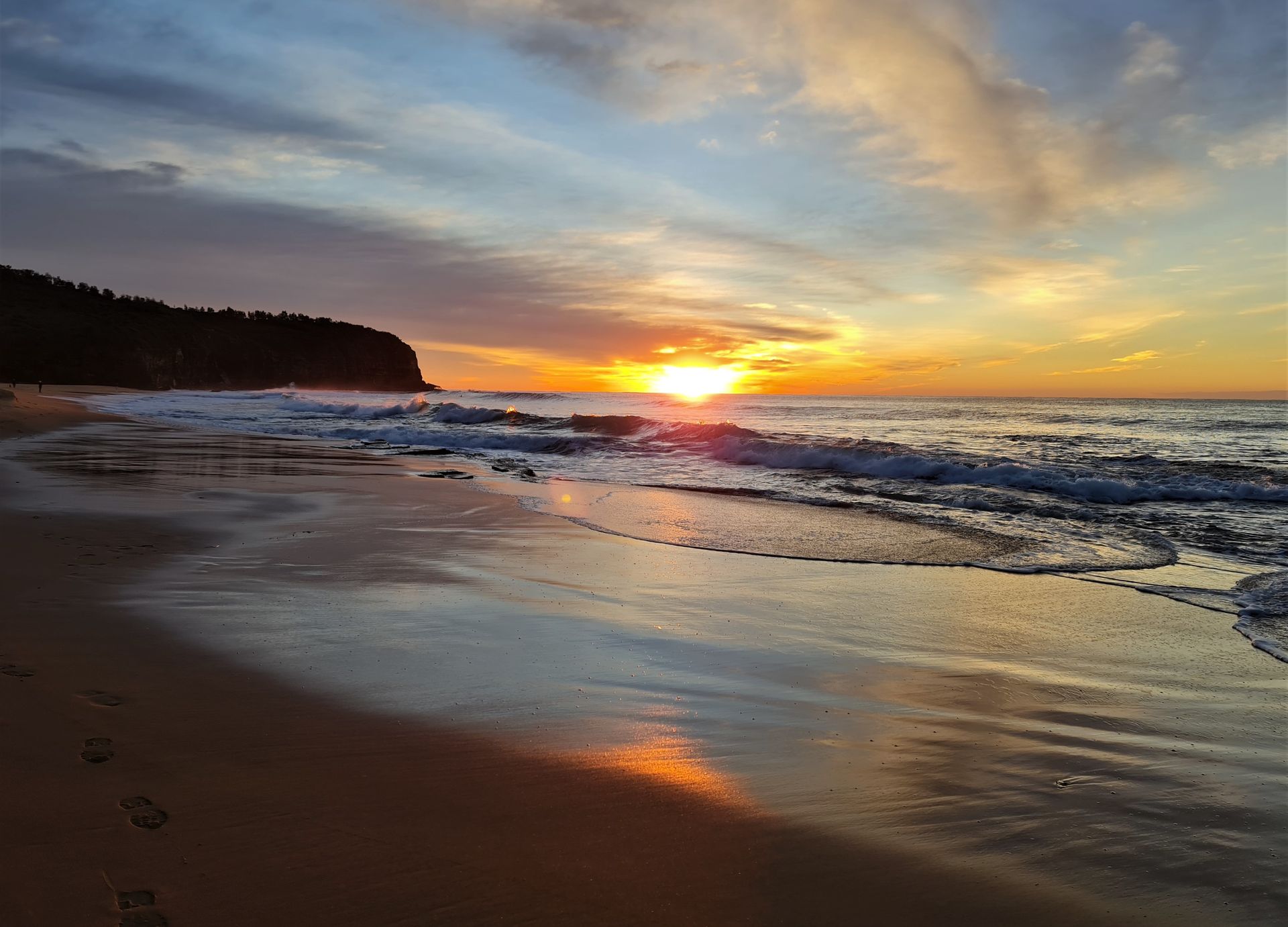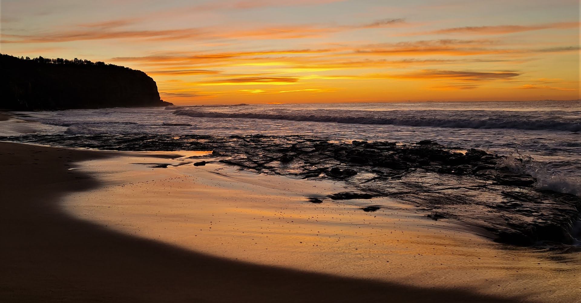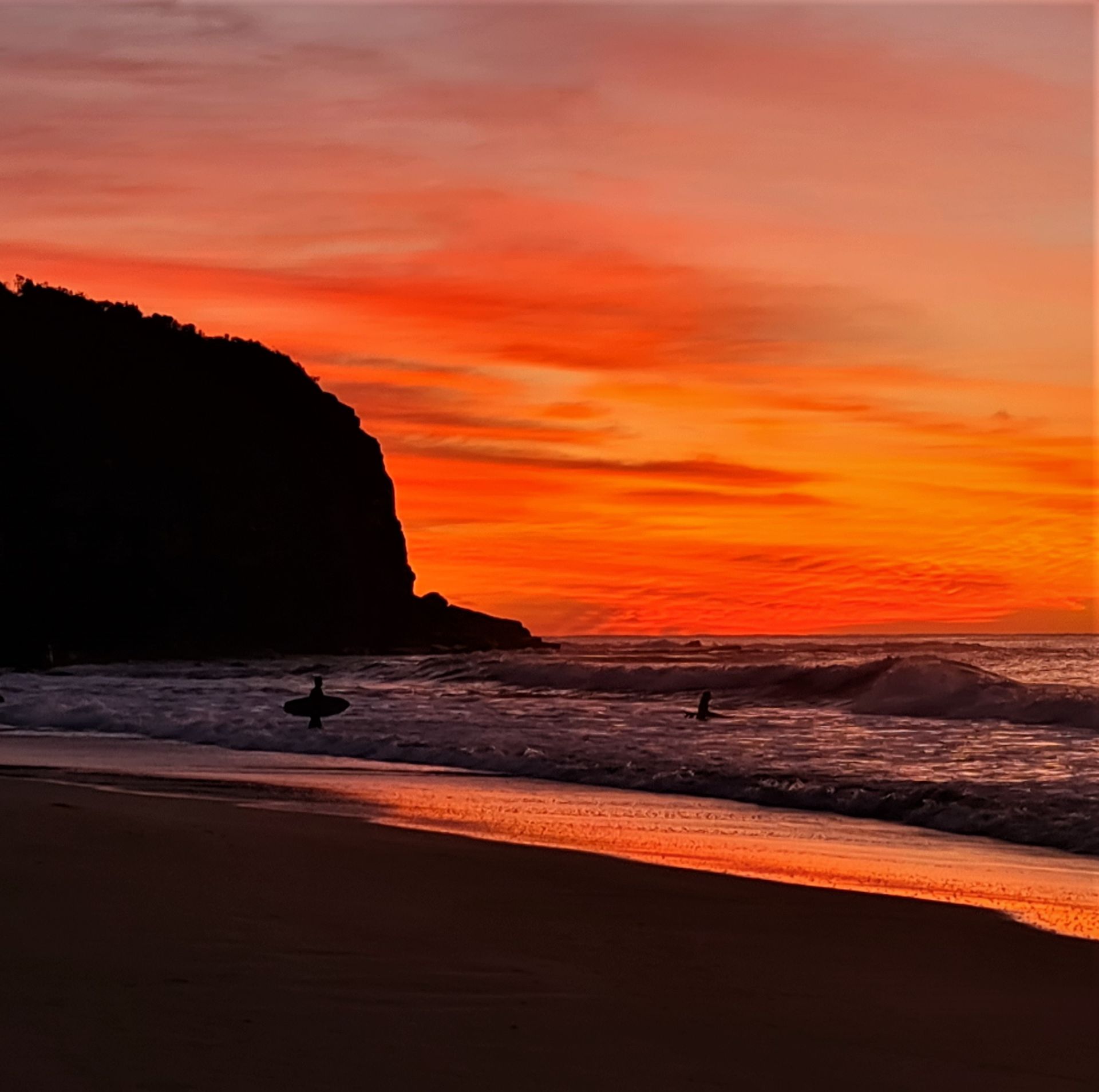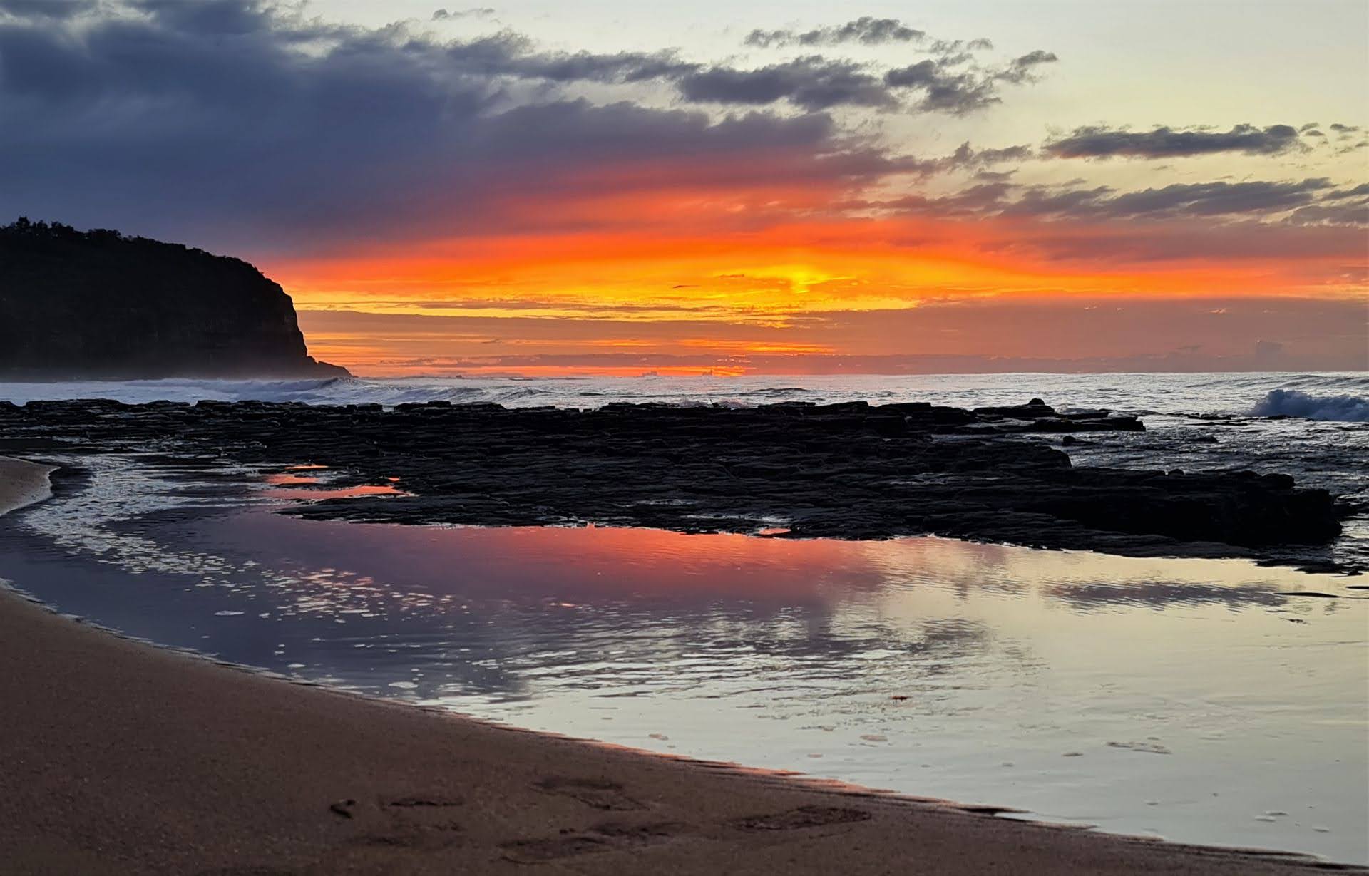 I only had a couple of visits this week to Turimetta Beach due to weather & commitments, but did score a beautiful golden /red sky early in the week. The sand is well & truly back with some very high tides.