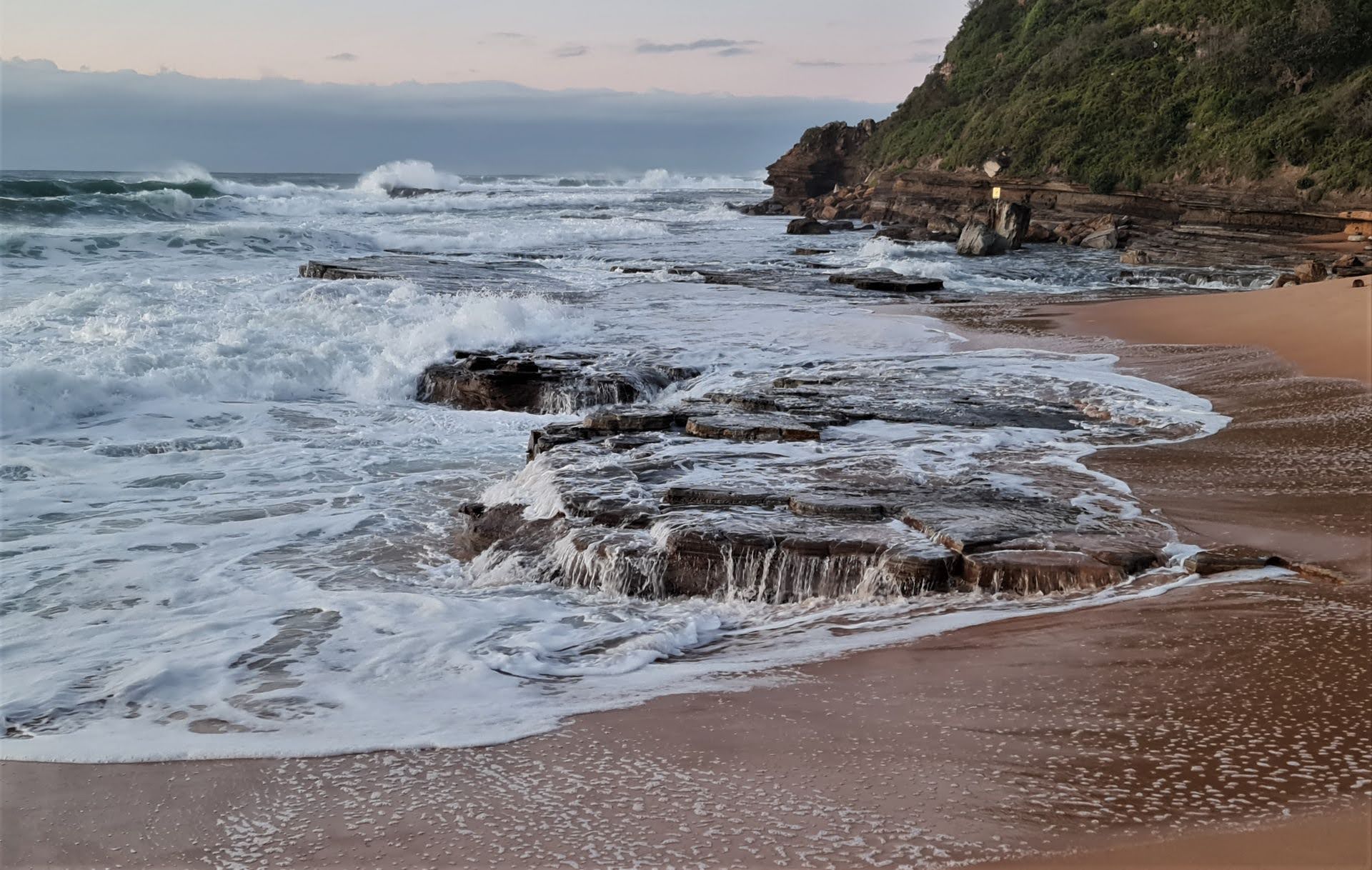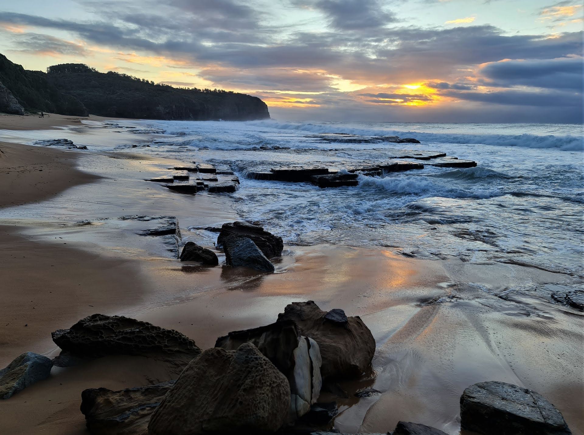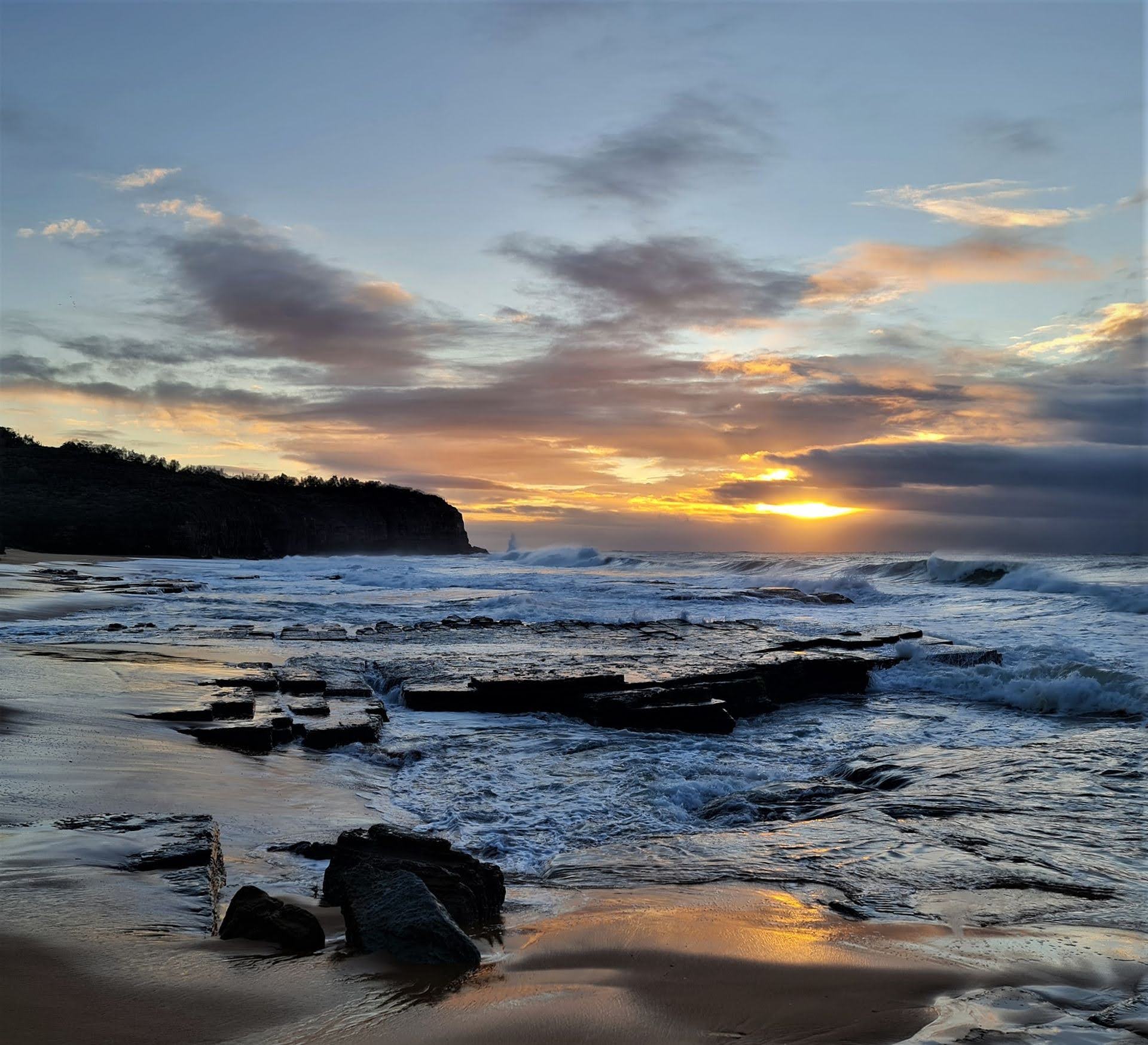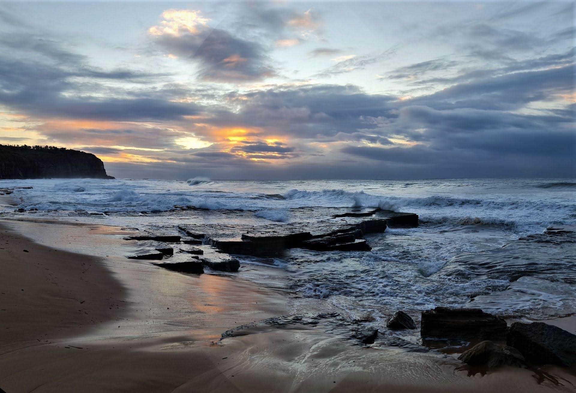 Winter is with us for sure. The early mornings at Turimetta Beach were very cold, and even colder when windy. The usual story of cloudy sunrises, crashing waves & beach erosion, especially on the southern end. This was really noticeable with half the front beach gone & the rock shelfs being exposed. Estimate that up to 3m of sand has moved.