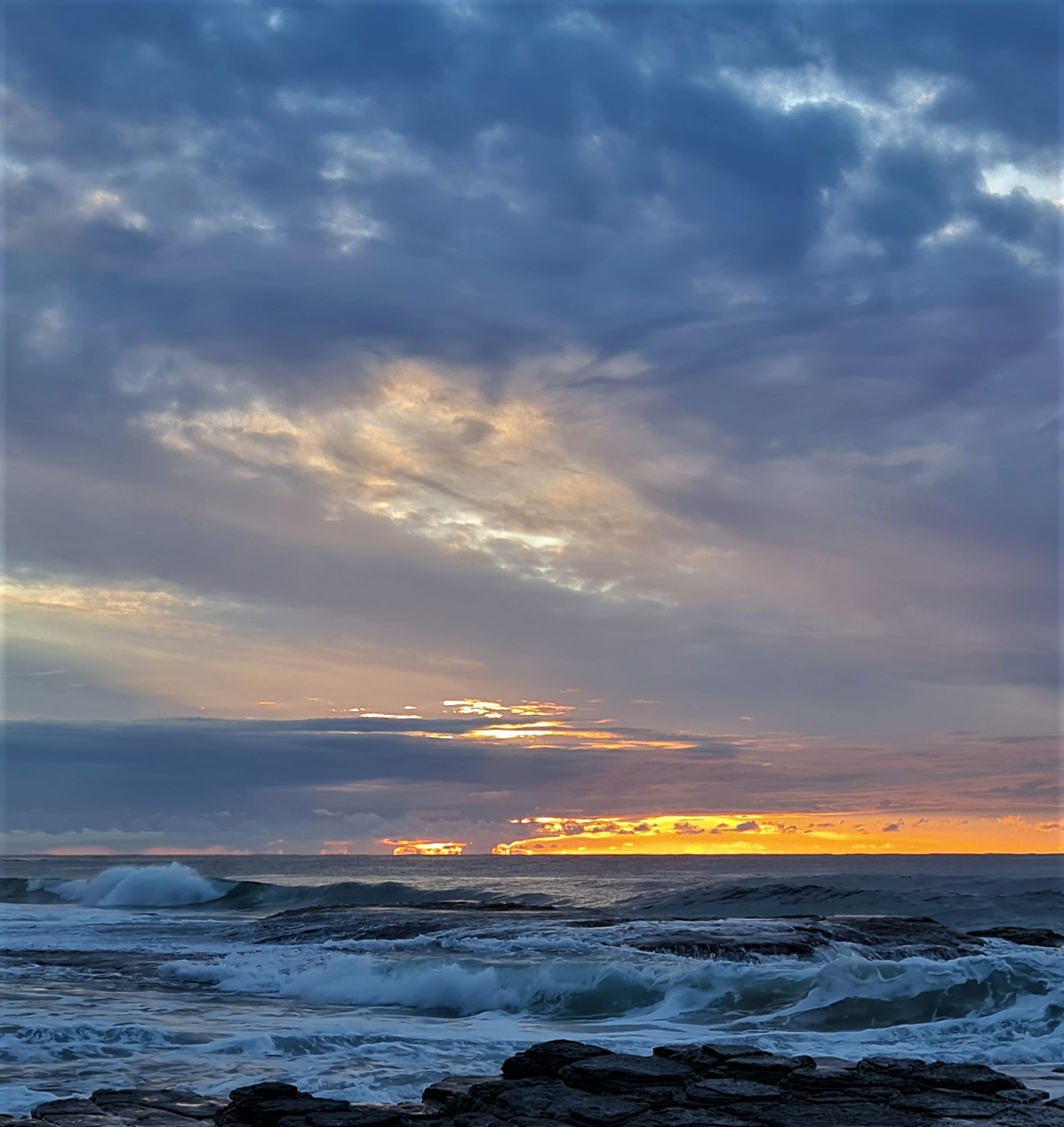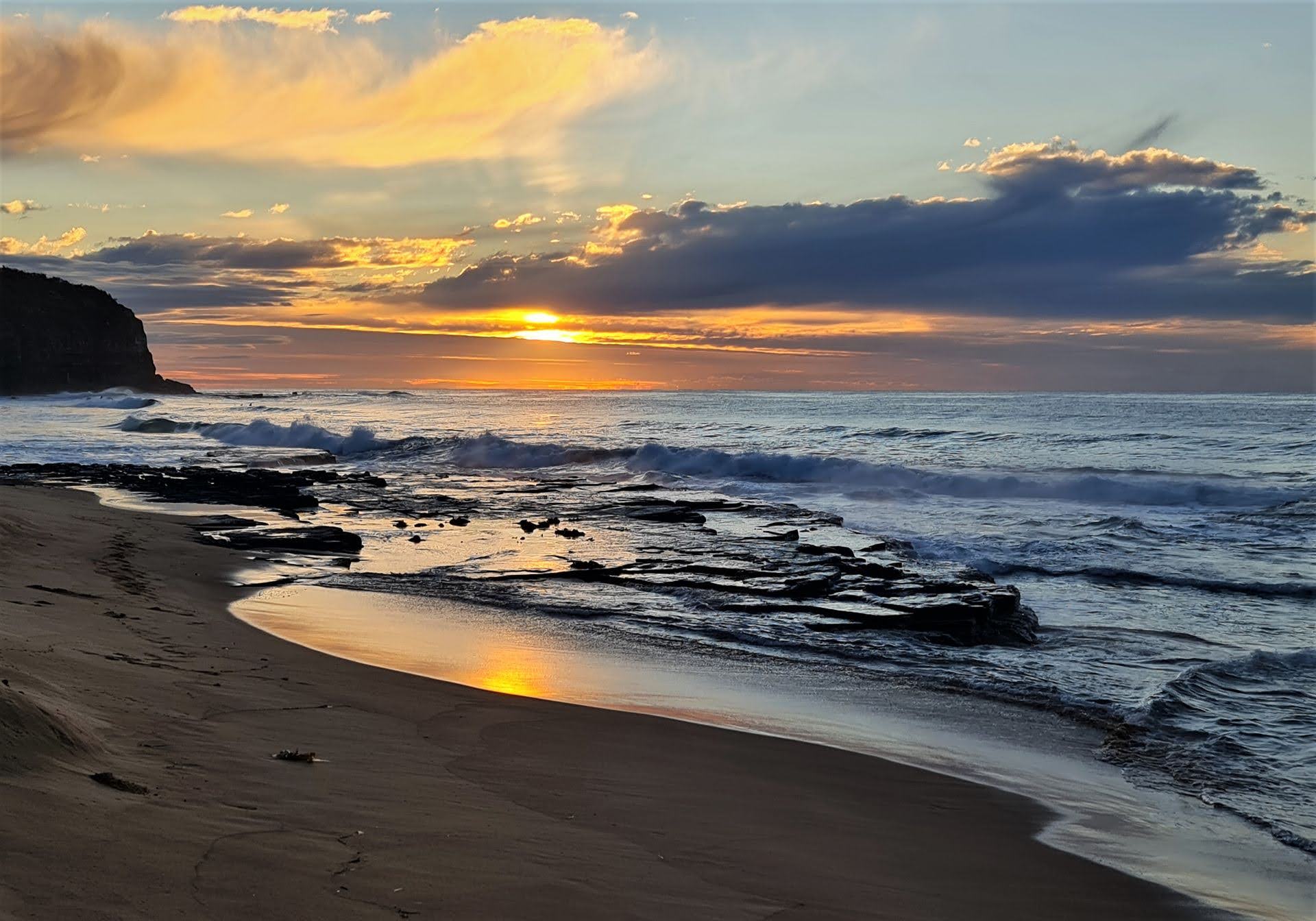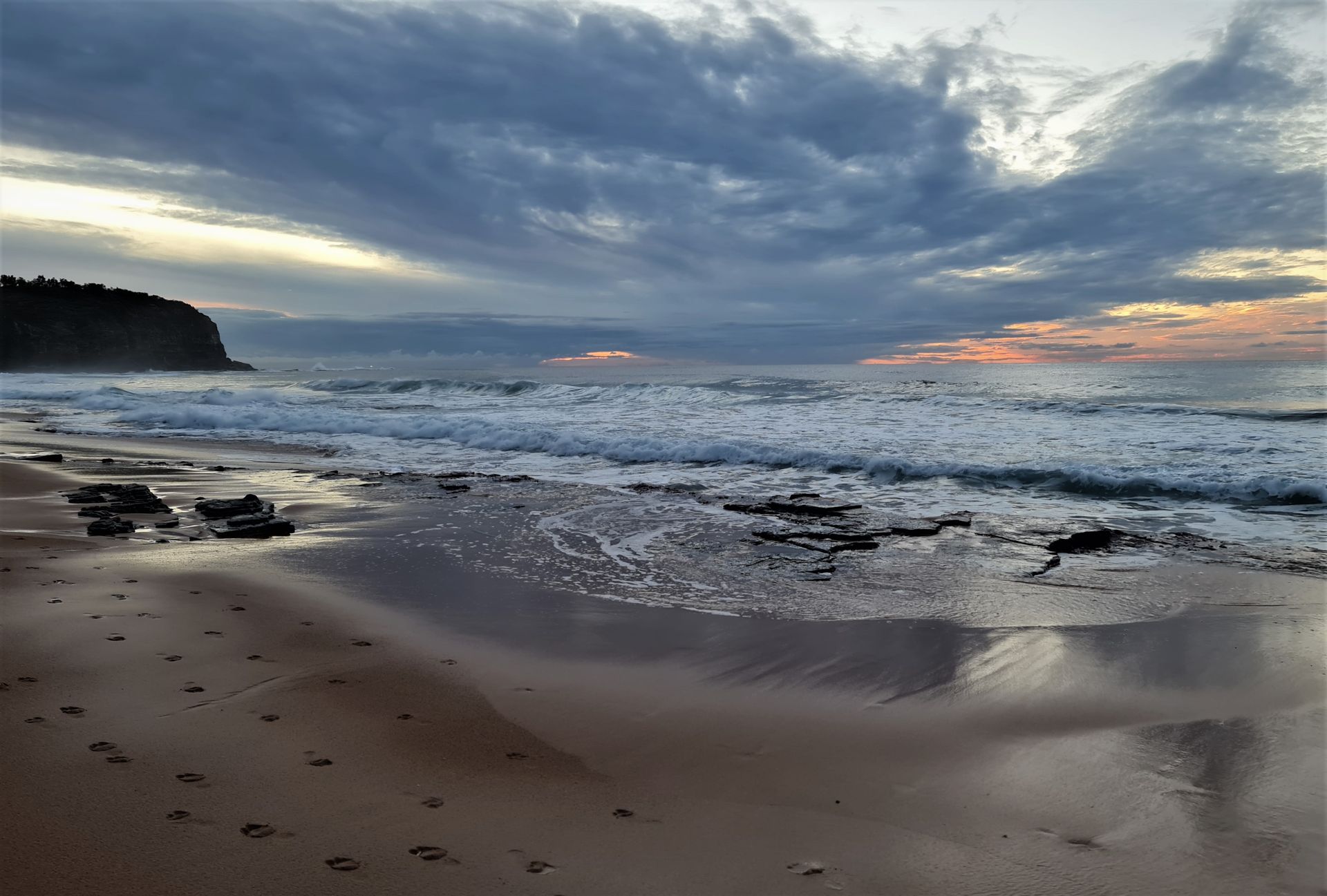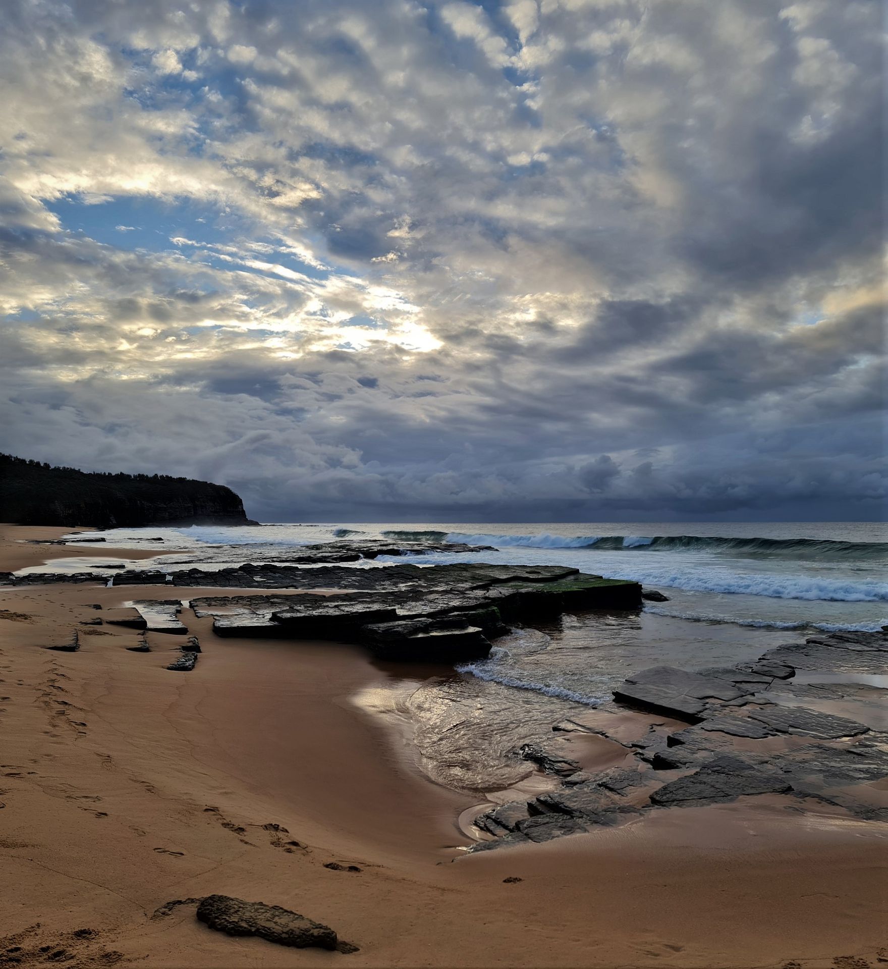 Winter is with us for sure. The early mornings at Turimetta Beach were very cold, and even colder when windy. The usual story of cloudy sunrises, crashing waves & beach erosion, especially on the southern end. This was really noticeable with half the front beach gone & the rock shelfs being exposed. Estimate that up to 3m of sand has moved.