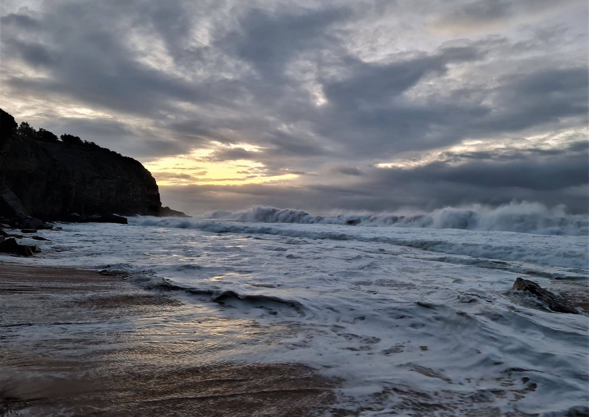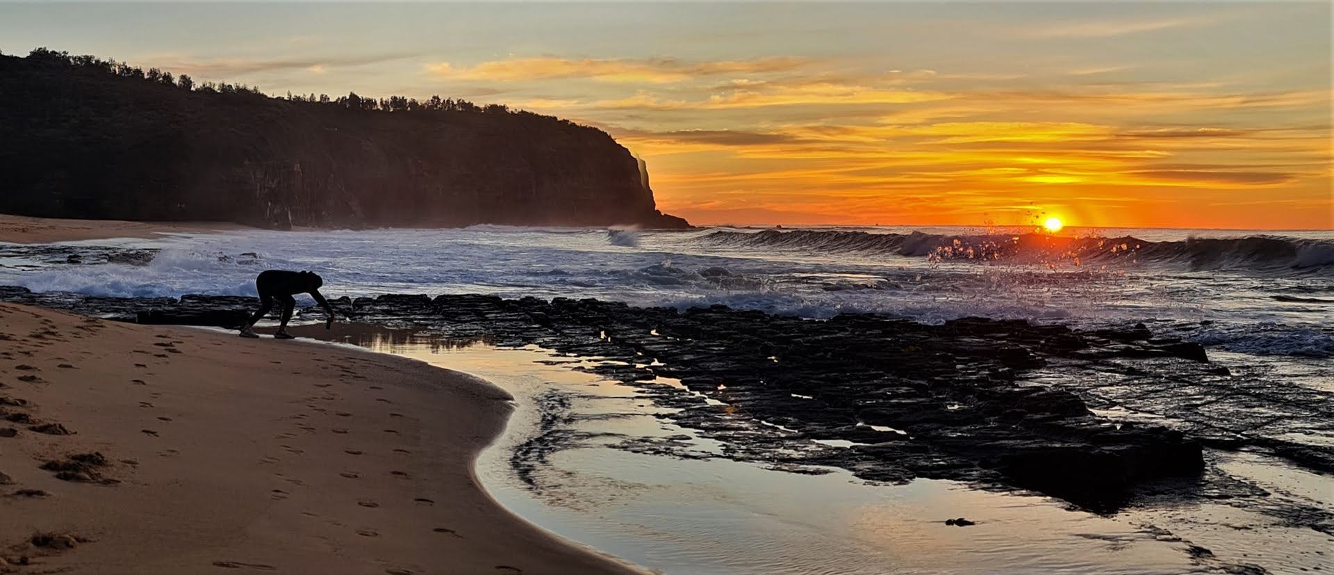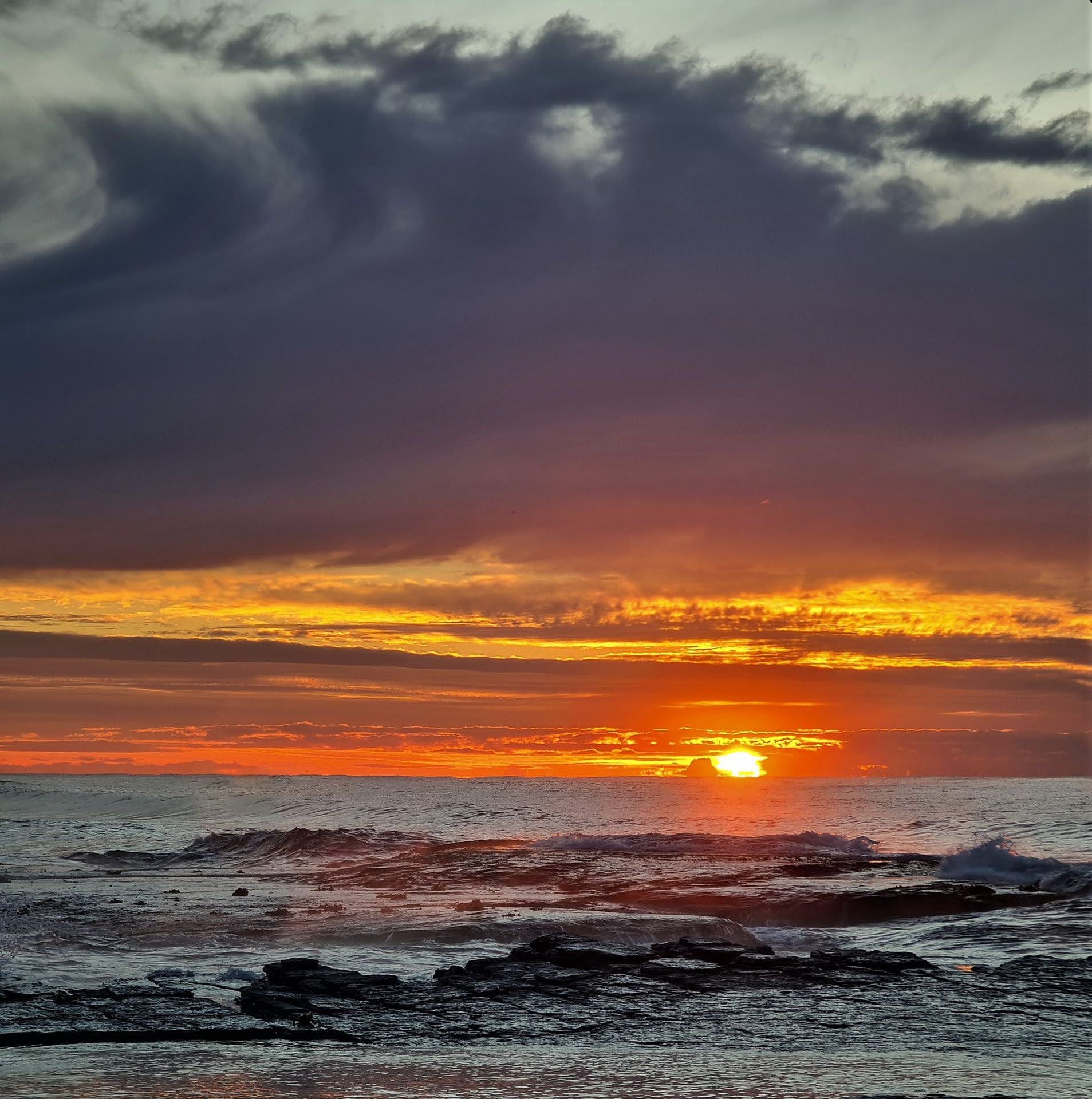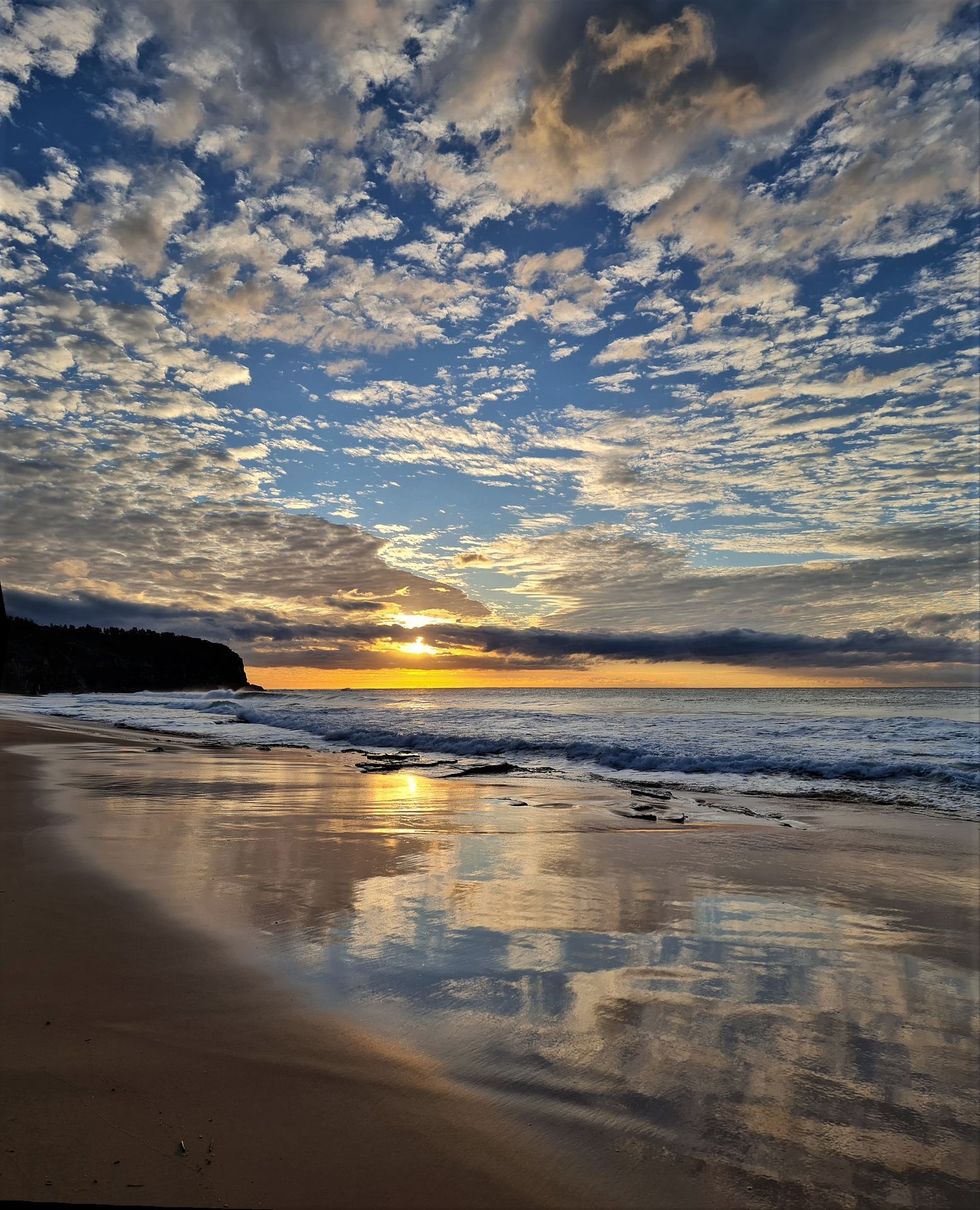Winter is with us for sure. The early mornings at Turimetta Beach were very cold, and even colder when windy. The usual story of cloudy sunrises, crashing waves & beach erosion, especially on the southern end. This was really noticeable with half the front beach gone & the rock shelfs being exposed. Estimate that up to 3m of sand has moved.
