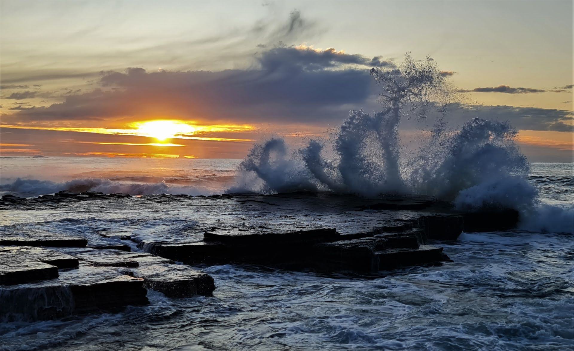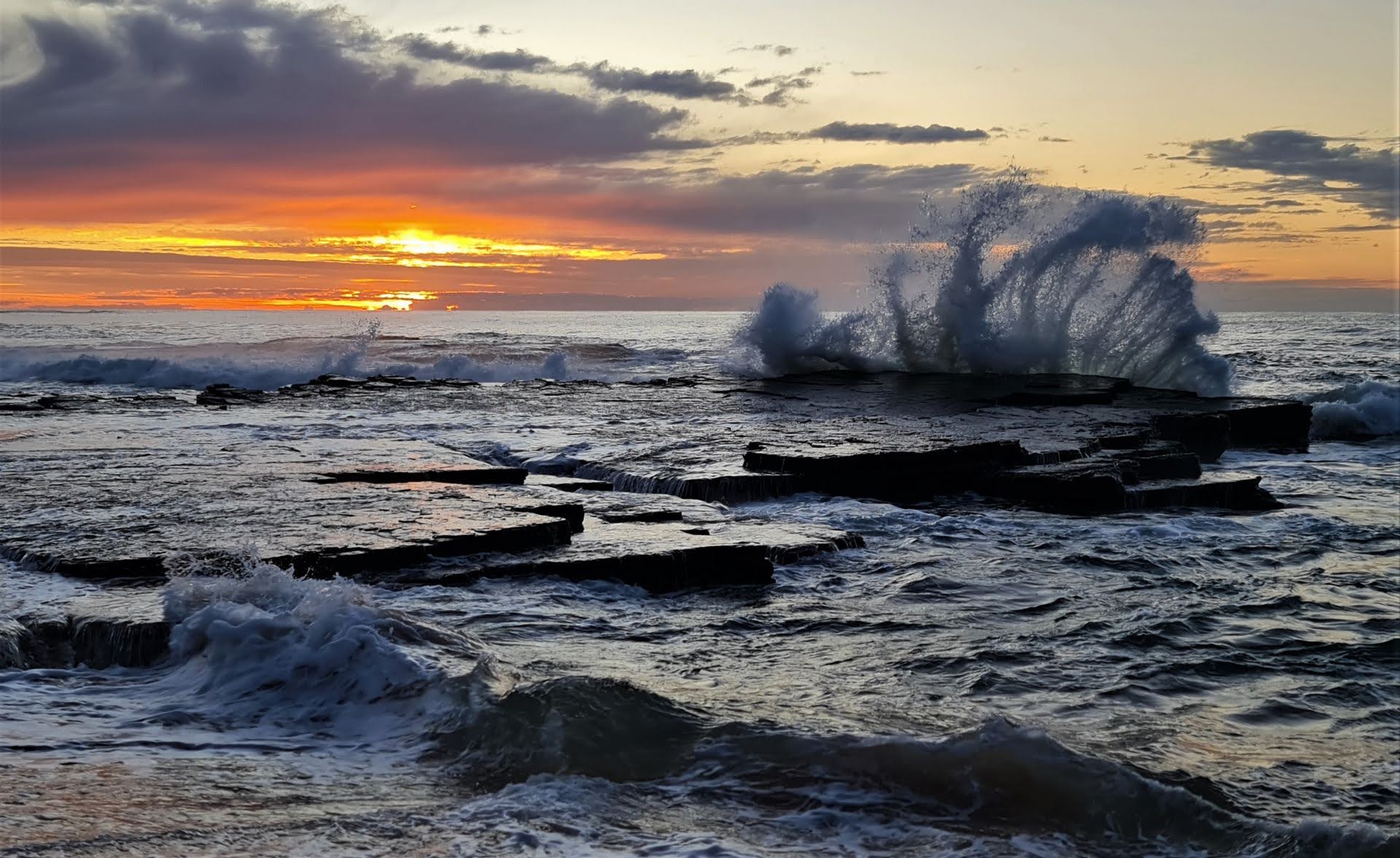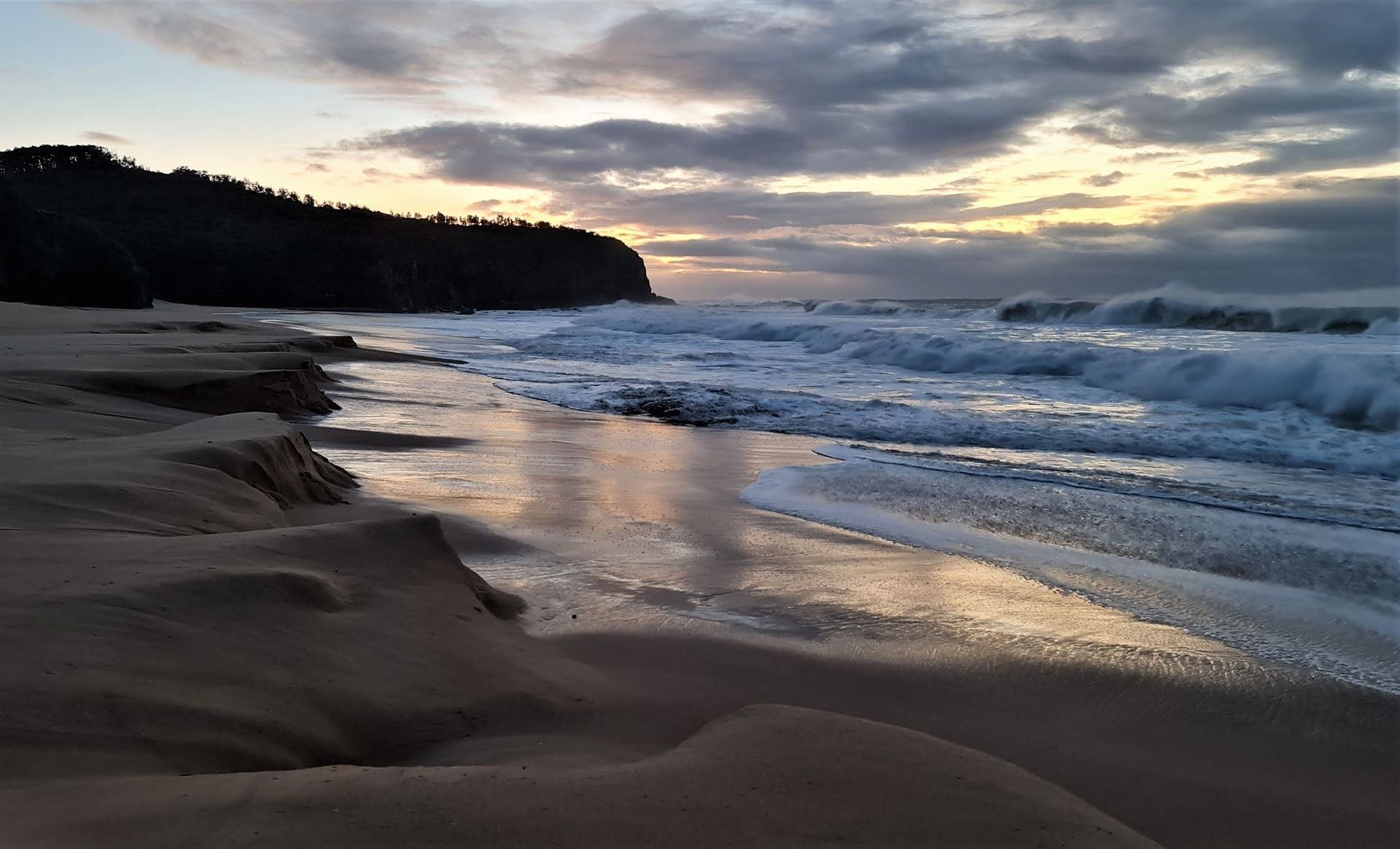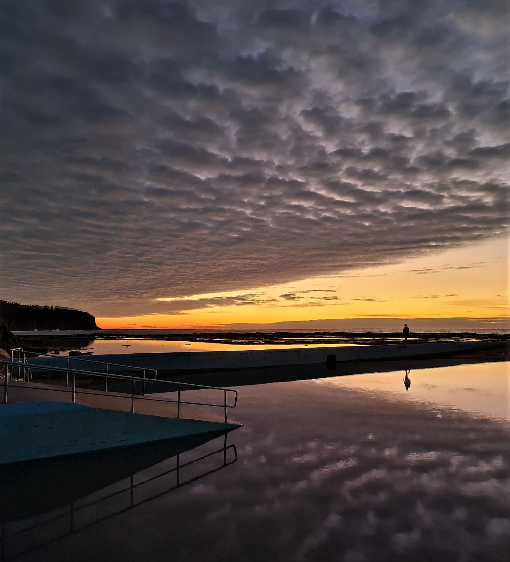 Winter is with us for sure. The early mornings at Turimetta Beach were very cold, and even colder when windy. The usual story of cloudy sunrises, crashing waves & beach erosion, especially on the southern end. This was really noticeable with half the front beach gone & the rock shelfs being exposed. Estimate that up to 3m of sand has moved.