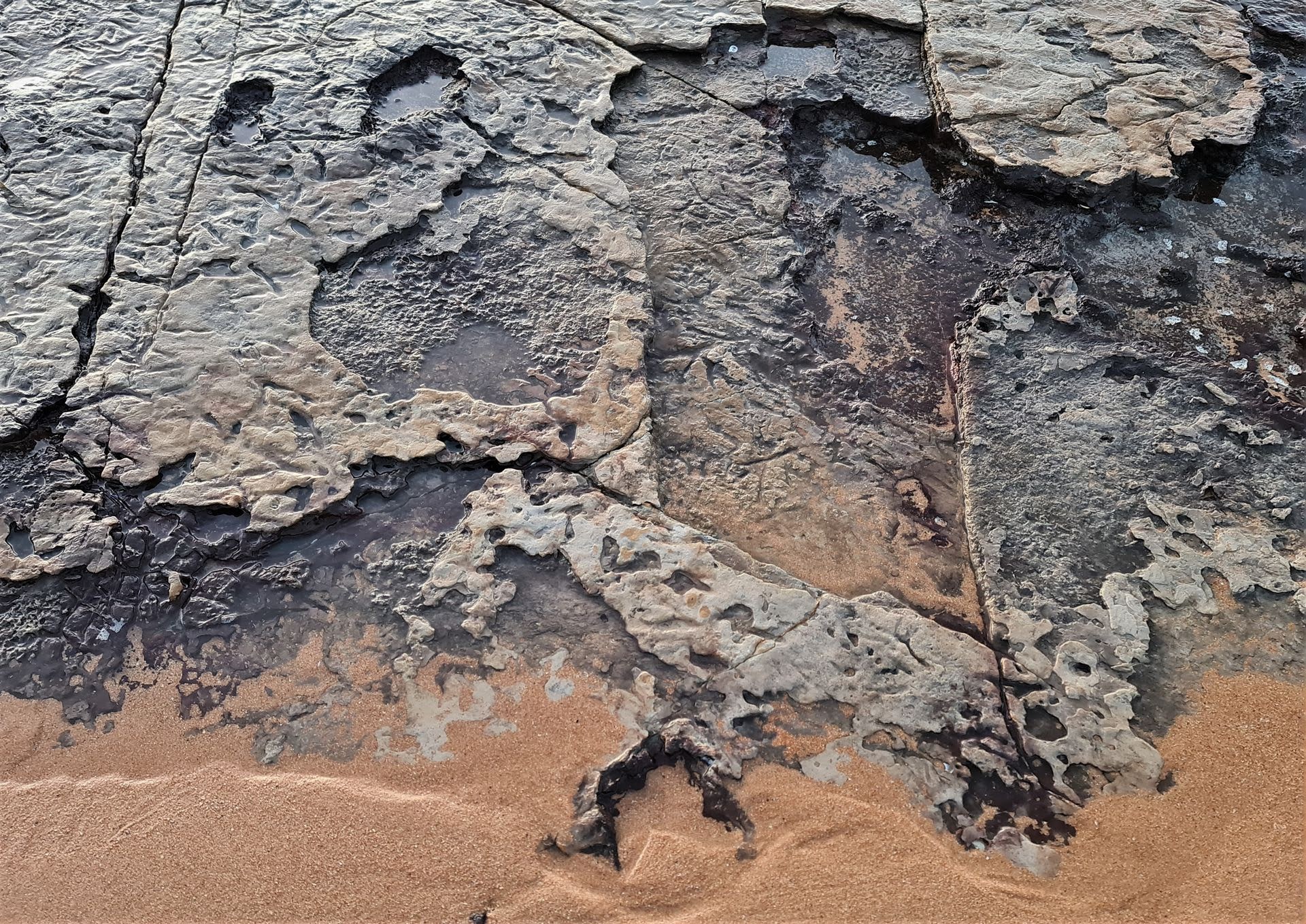 With the recent big swells the sand has been pushed right back to the cliff edge, with more rock shelfs exposed in the tidal zones.