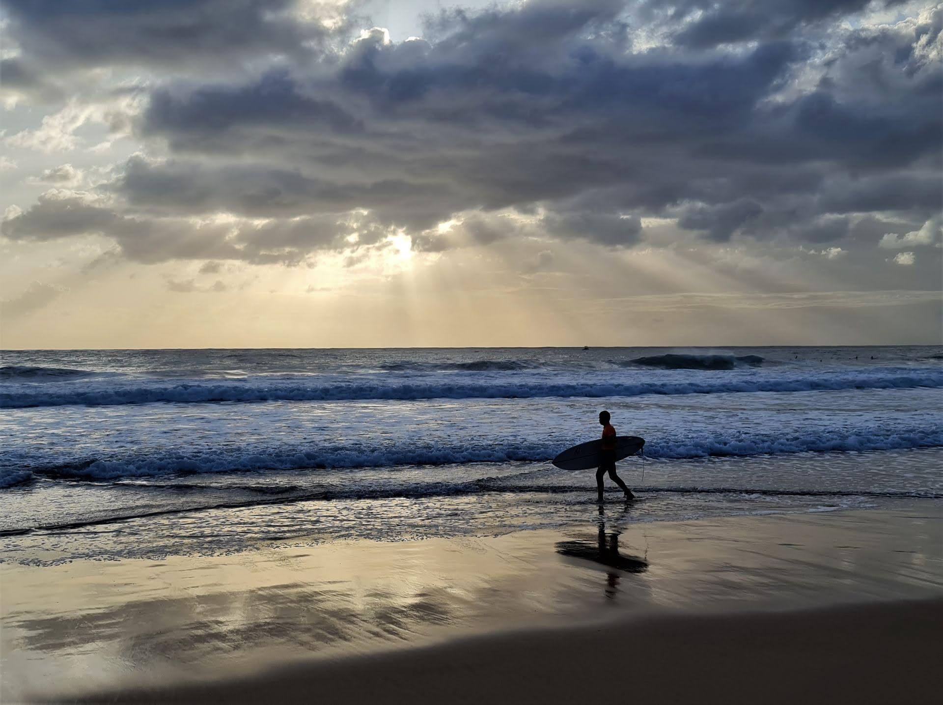 - Surfer mid-beach