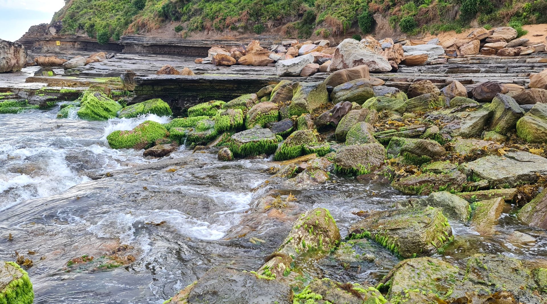 The Algae growth on the Turimetta Beach rock shelfs is slowing decreasing, but we still can find some unusual effects.