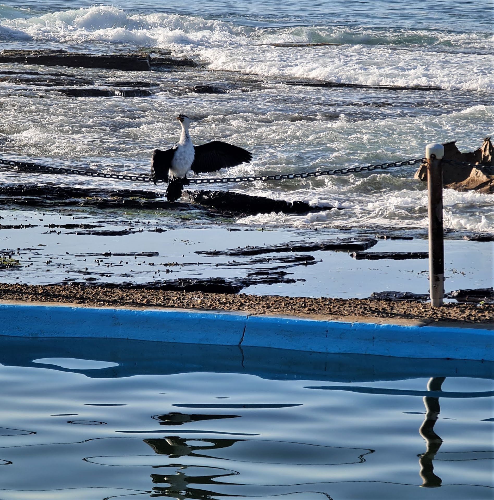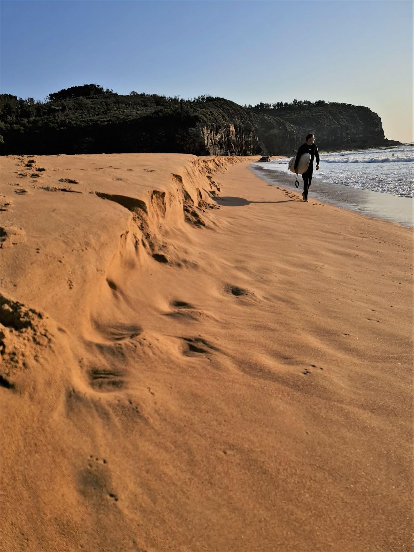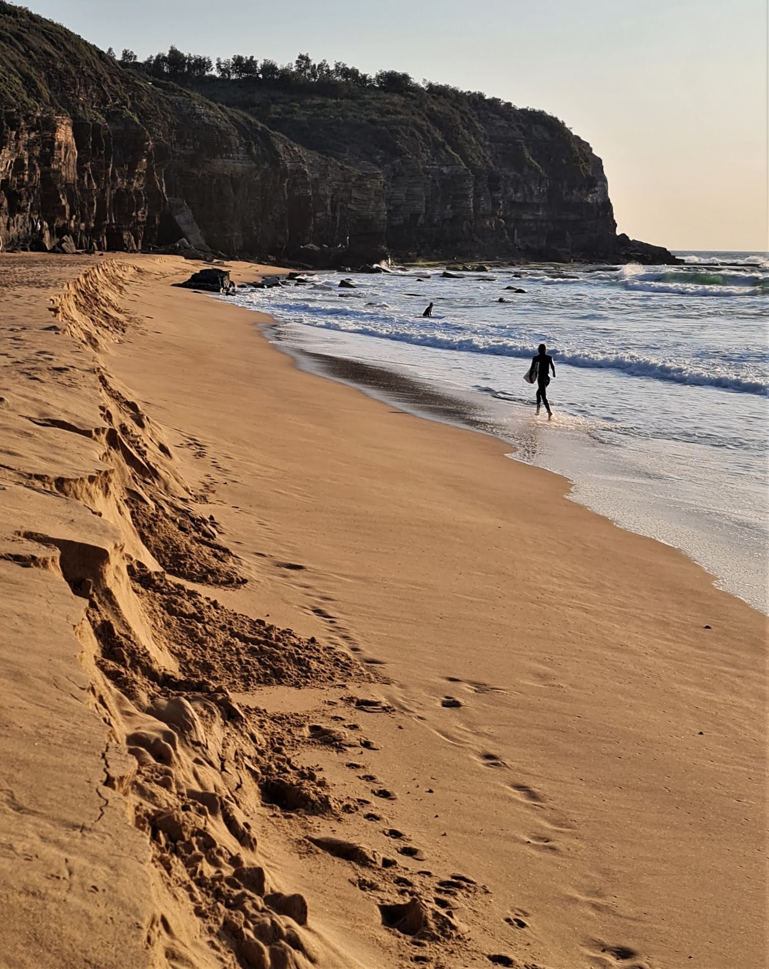 Last Wednesday was a big surfing morning at Turimetta Beach, with about 30 surfers grabbing the 2 m wave sets at the northern headland end. They came out of the woodwork everywhere. Obviously the word had spread to both locals & visitors. The visitors were easy to spot, as they were launching into the surf from the rocks at the headland, whereas the local regulars go straight from the beach.