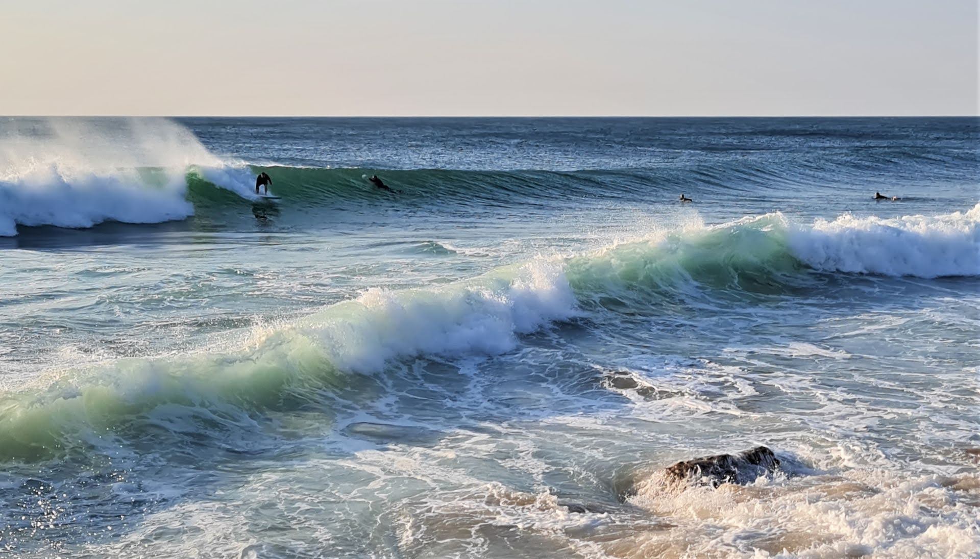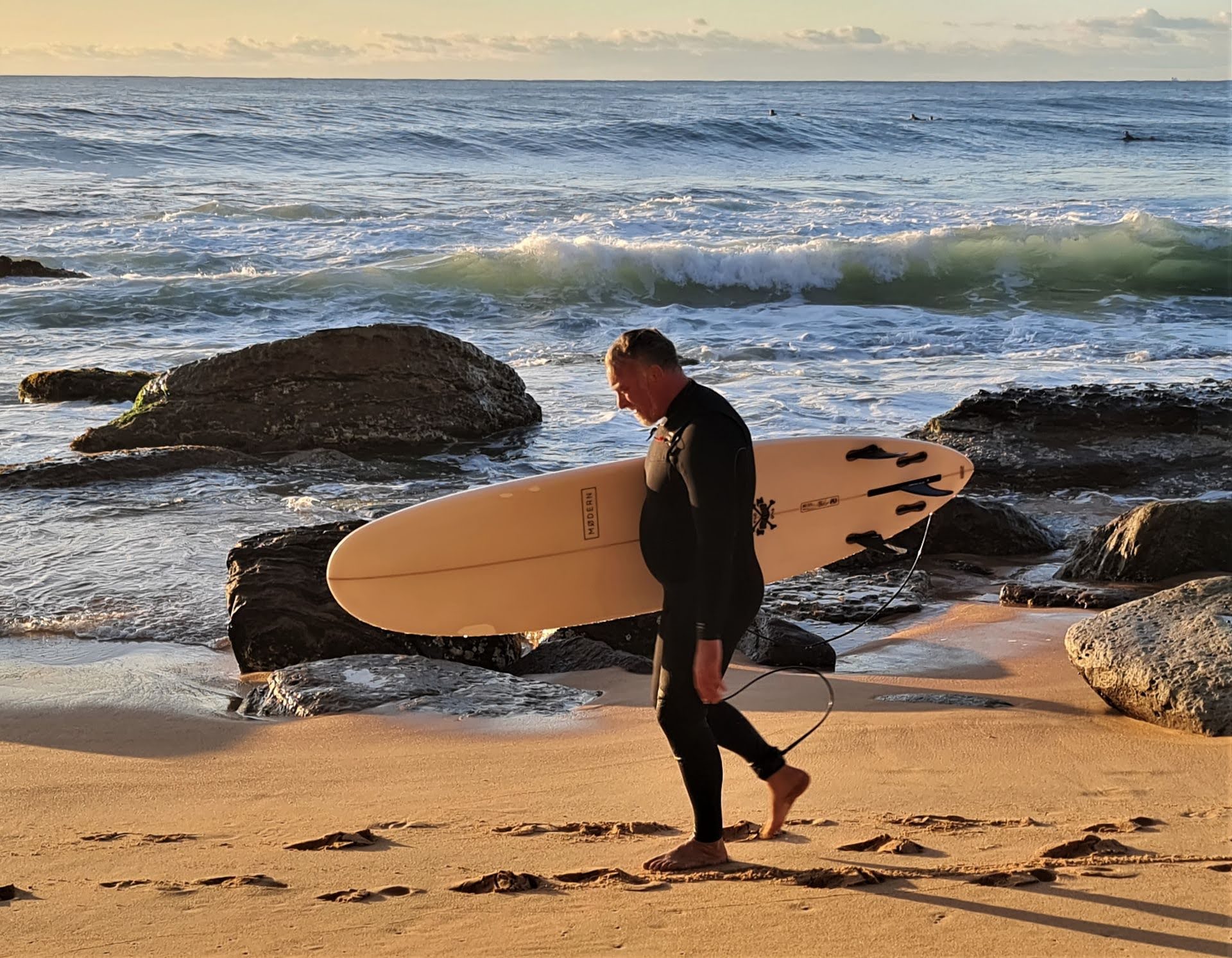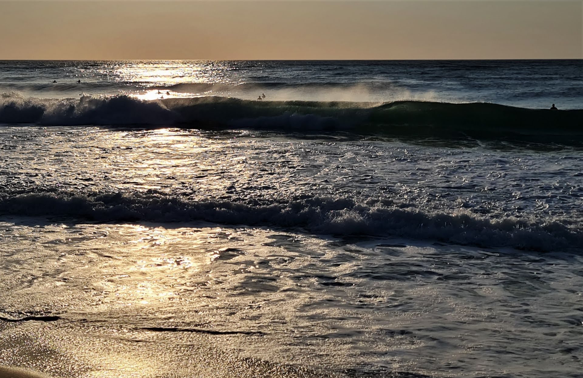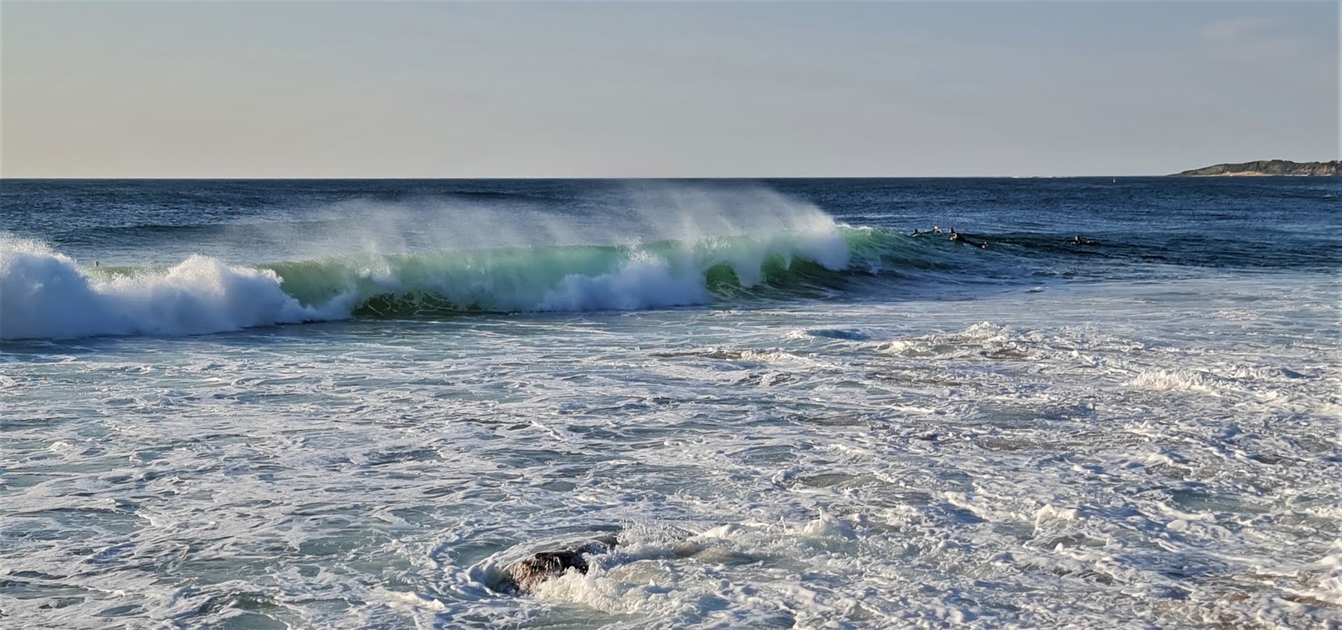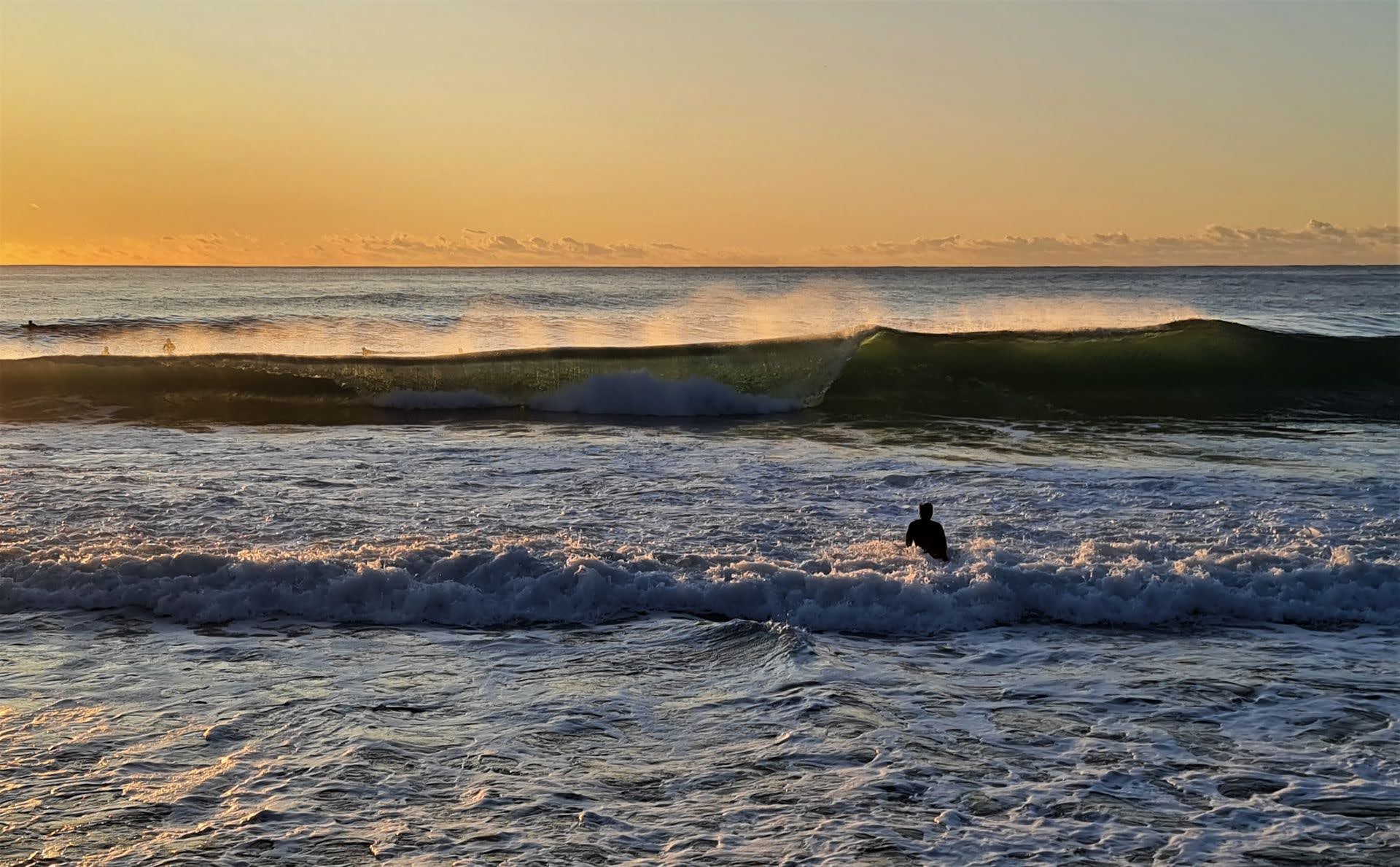 During this week on Wed there was a great set of morning waves which drew a big crowd of board riders, both young & old. Some were not locals, as they launched into the surf from the rocks at the northern end, whereas the locals go in straight from the beach.