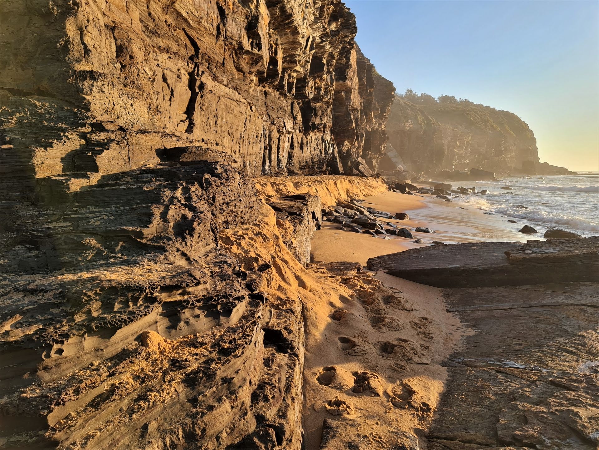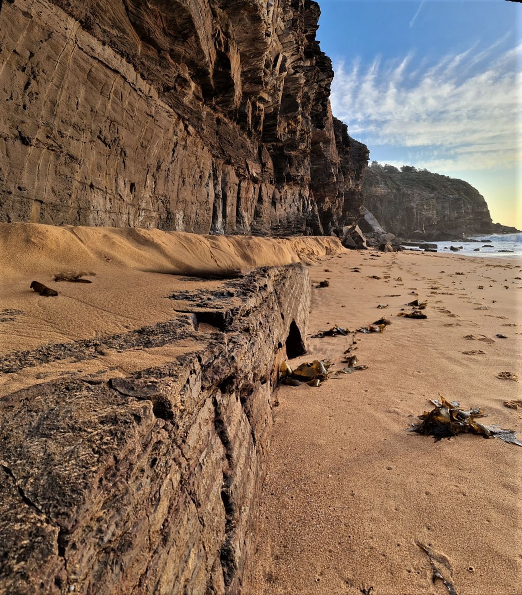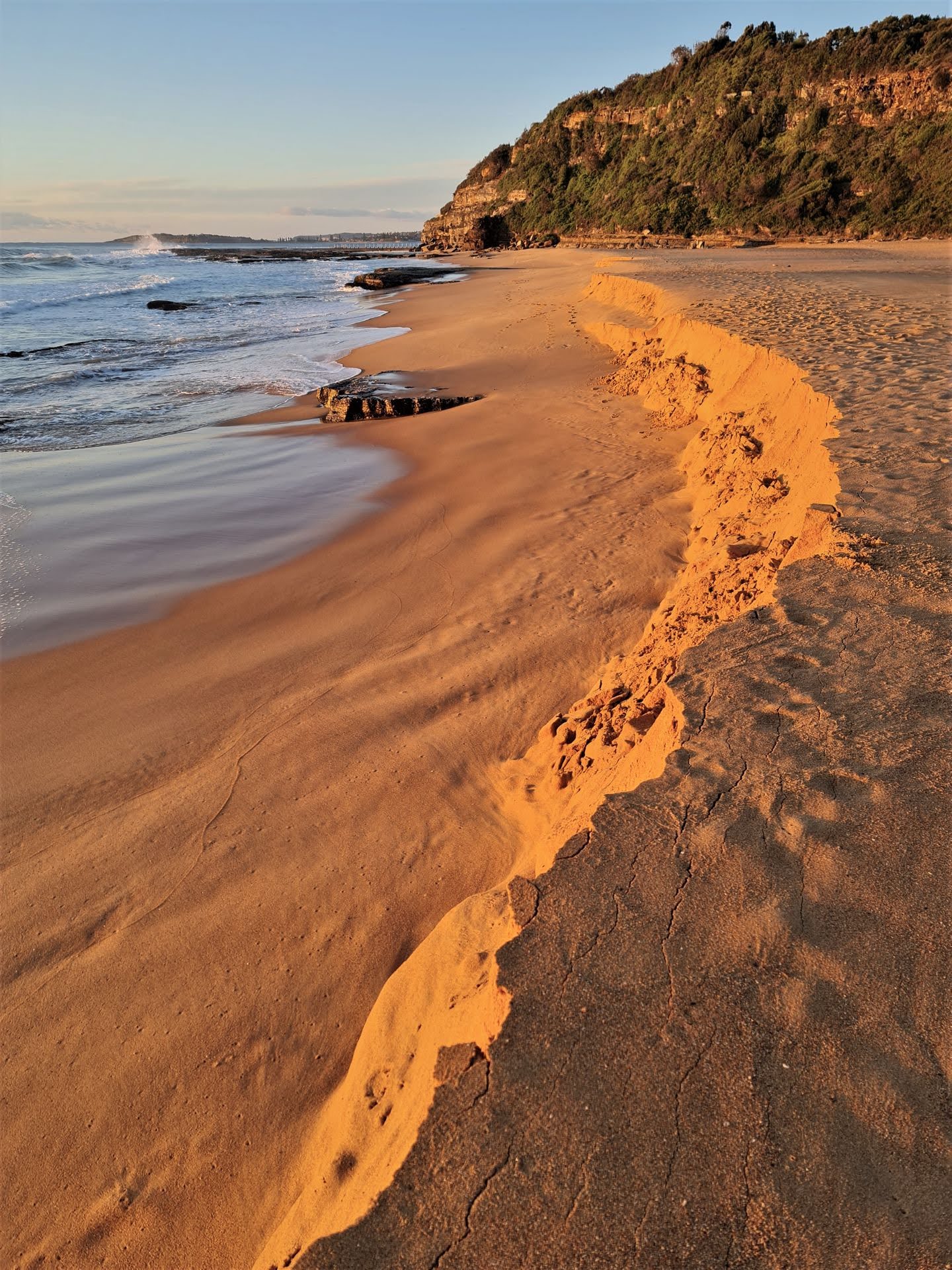 Not much activity this week, but did manage to get some pics of the severe erosion (about 2 m) at the northern half of Turimetta Beach. The heat wave was over last weekend followed by the cool change on Thursday. There is one pic of Turimetta Beach covered with footprints left behind by hundreds of beach goers over the heatwave weekend.