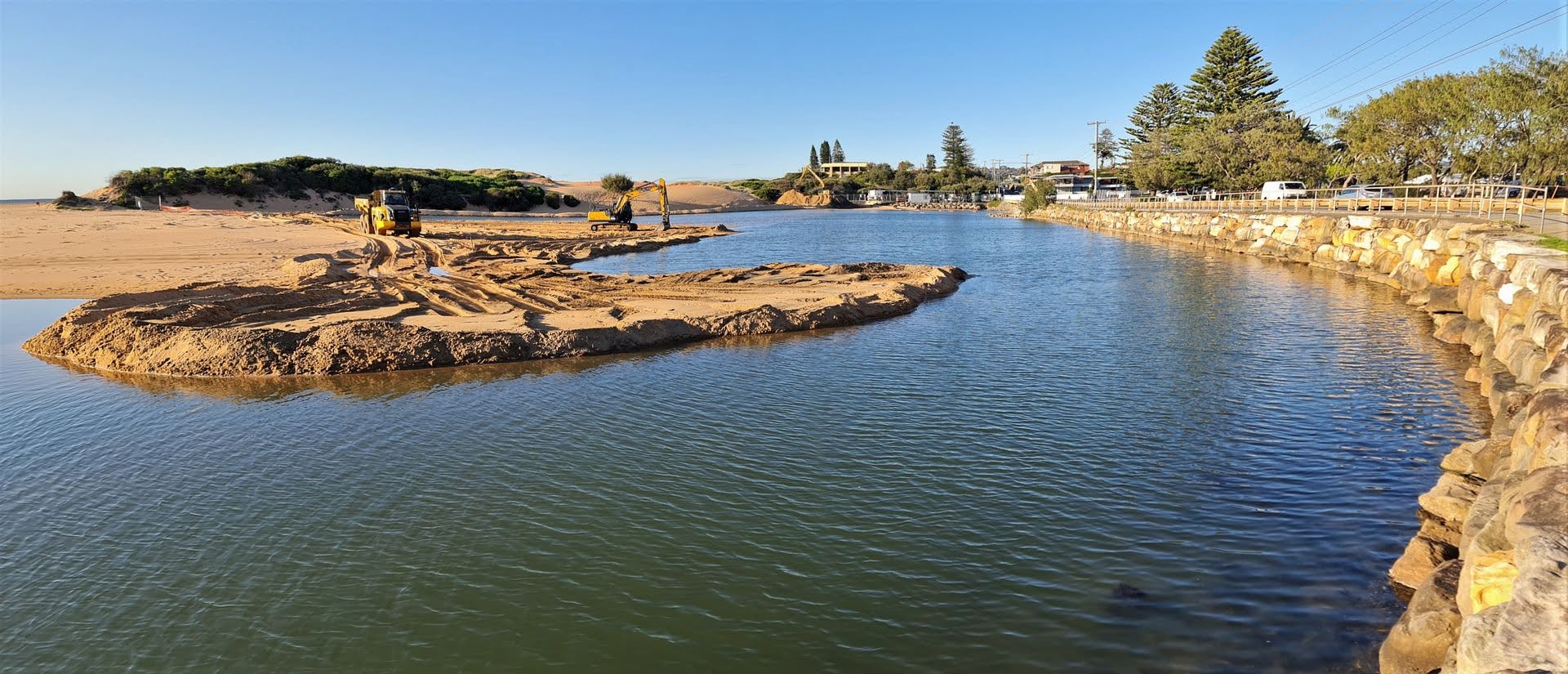 The Council excavation works are going very well, with the entrance channel being defined, and about 1 m from the main sandbar being removed. It's quite an extensive area.