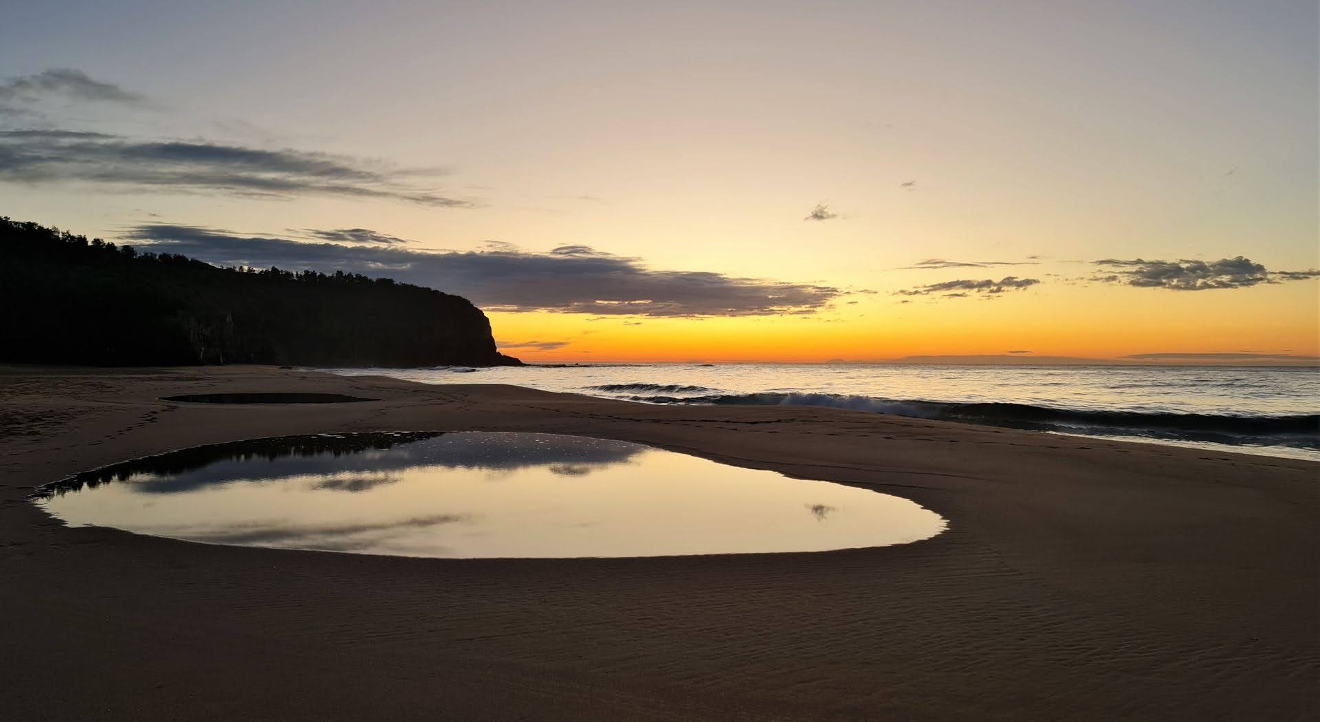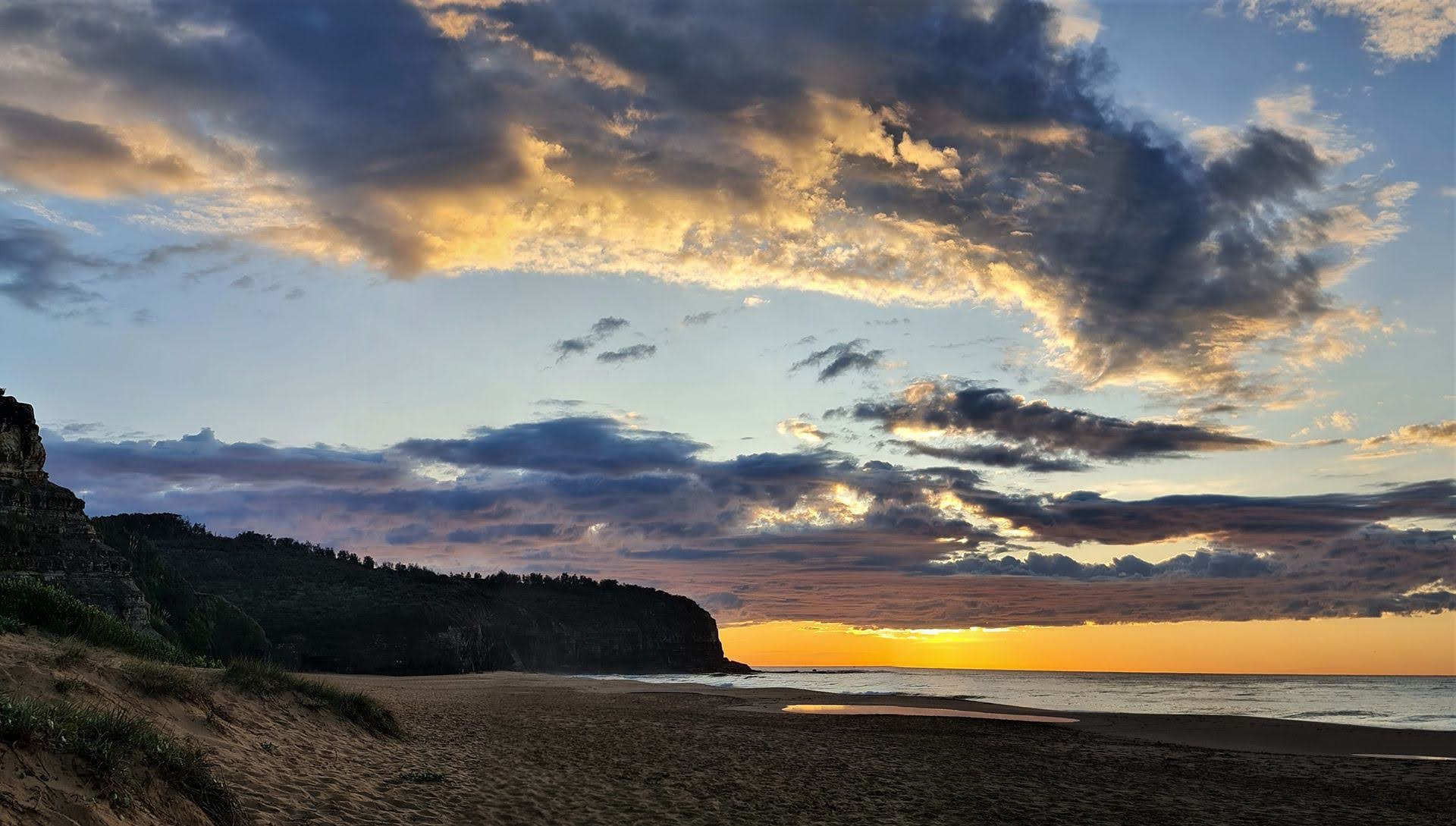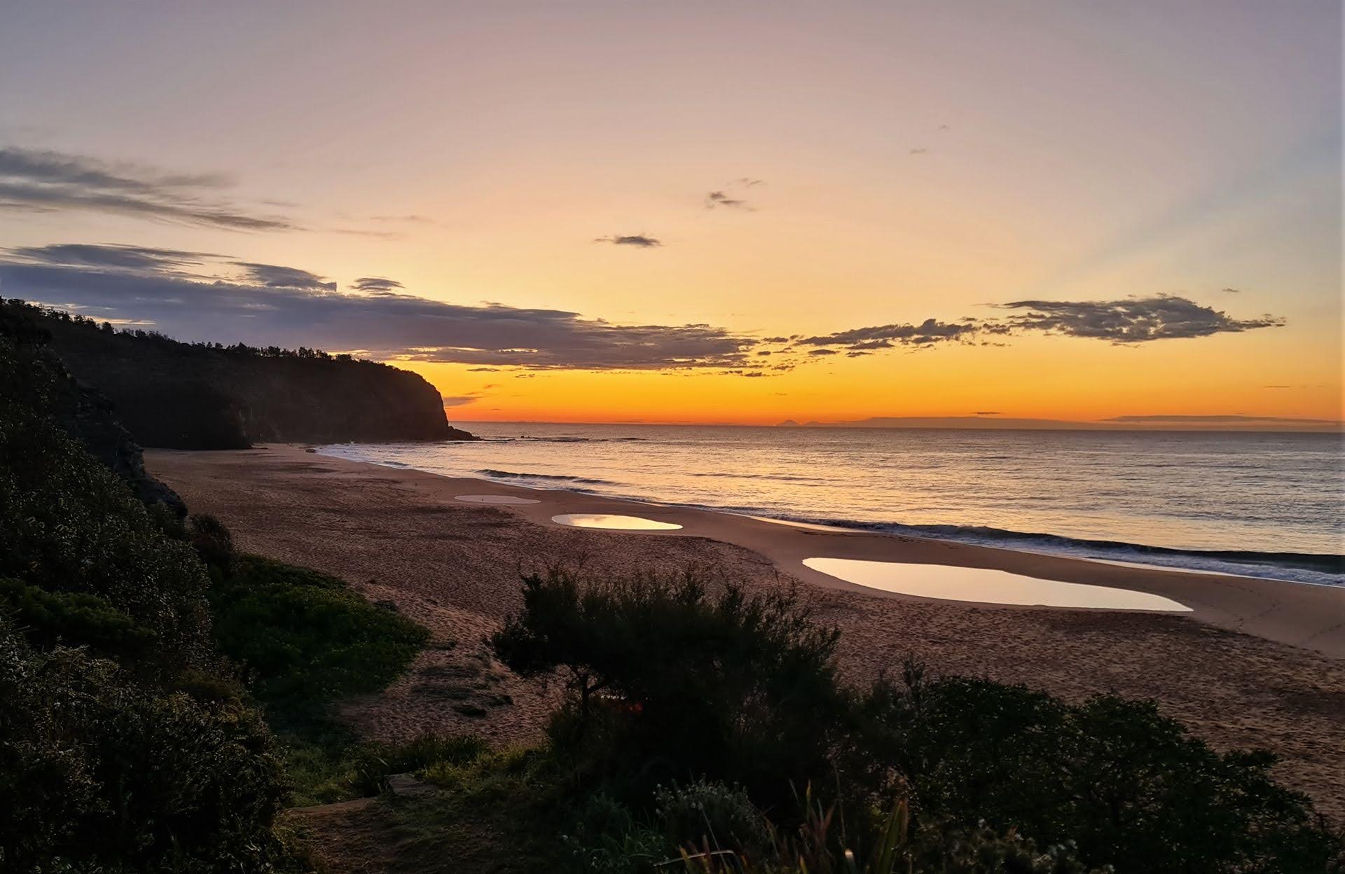 A new regular section is being added to Pittwater Online News, called Turimetta Moods, showcasing a selection of pictures taken by Joe Mills (on a Samsung S20 Mobile Phone), with some commentary. As Joe does a daily walk each morning along Turimetta Beach around 7a.m., he takes a number of pictures including the sunrise, which is about 7 in the morning at this time of the year.