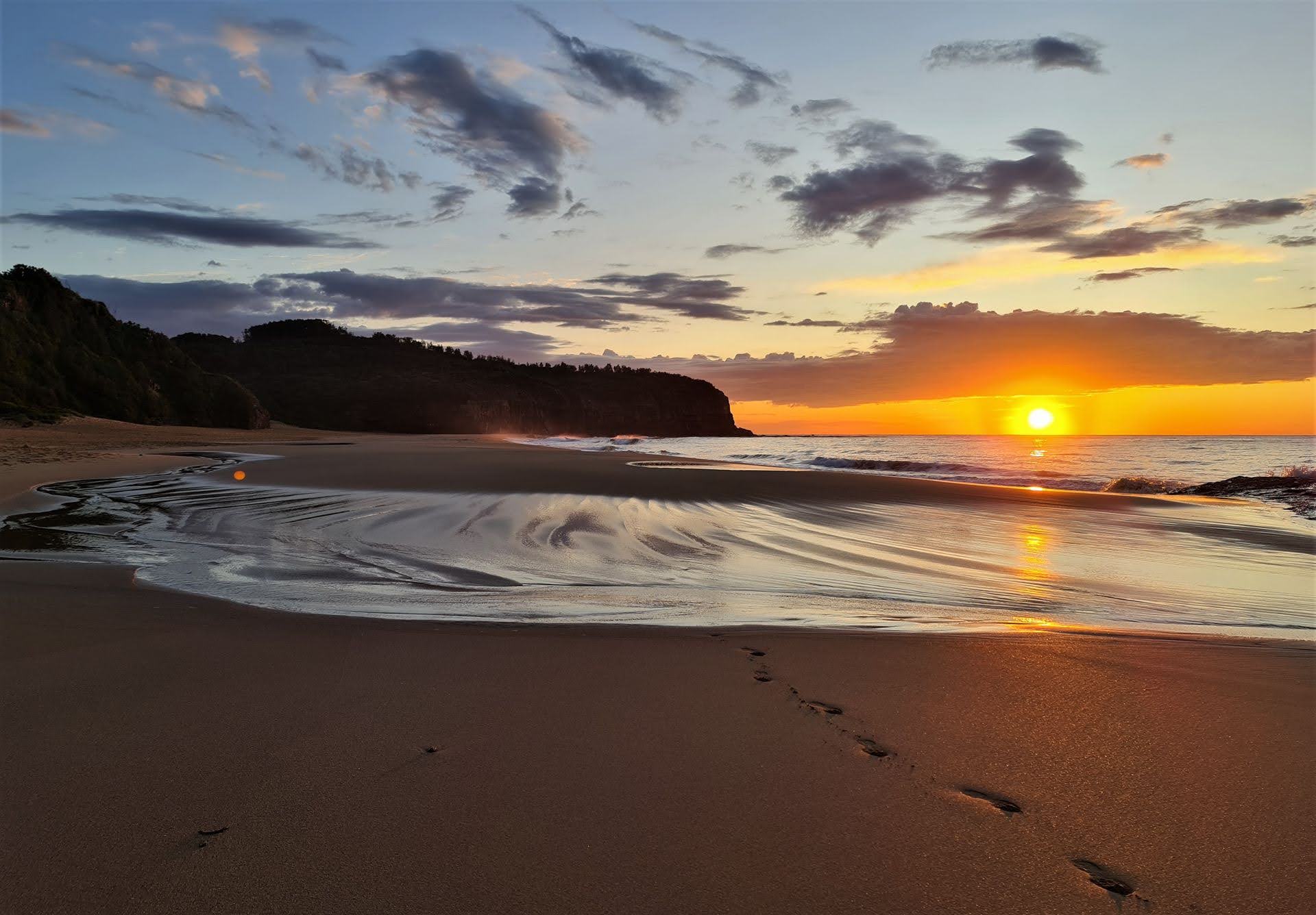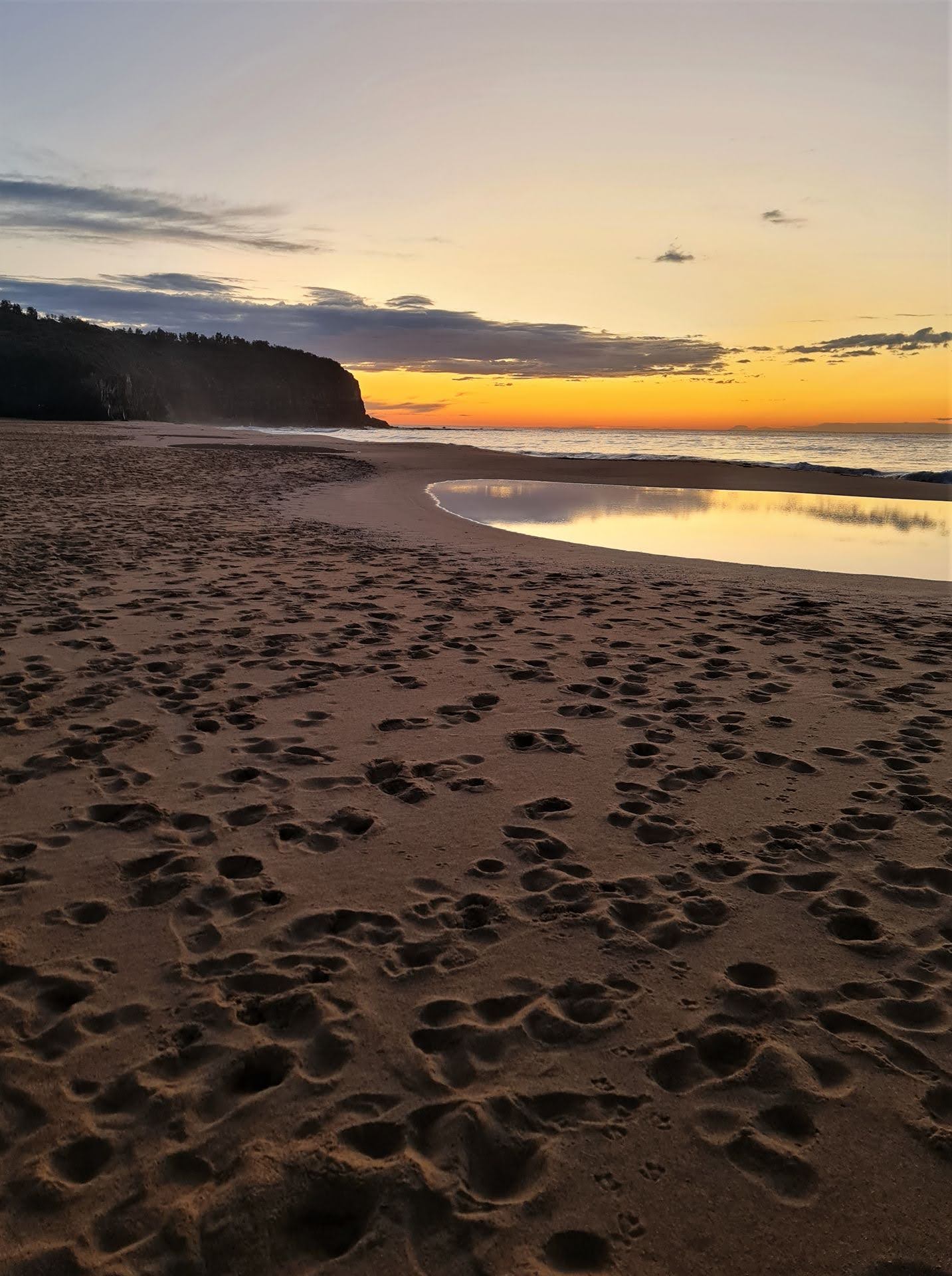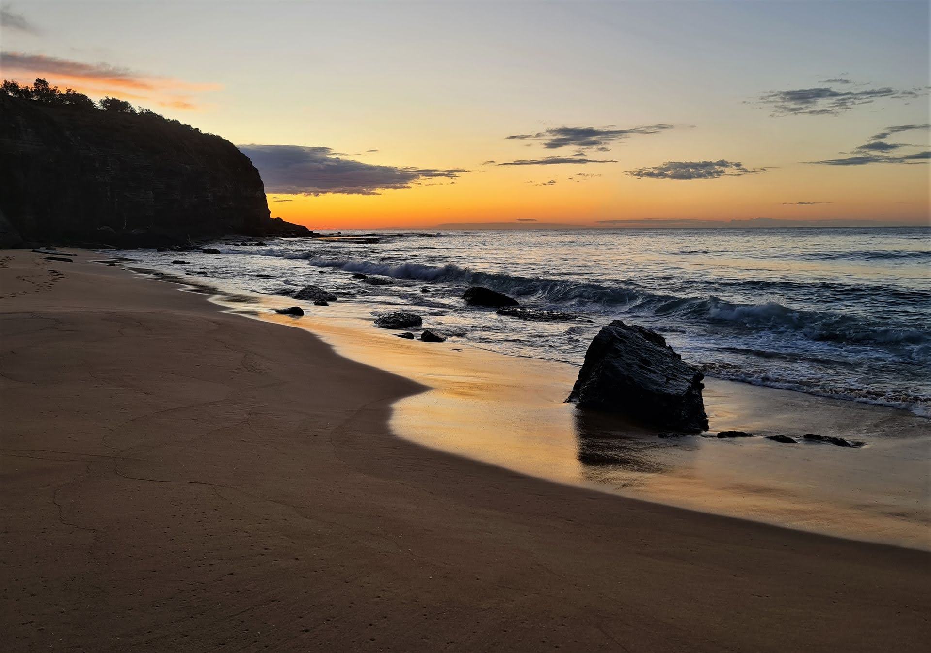A new regular section is being added to Pittwater Online News, called Turimetta Moods, showcasing a selection of pictures taken by Joe Mills (on a Samsung S20 Mobile Phone), with some commentary. As Joe does a daily walk each morning along Turimetta Beach around 7a.m., he takes a number of pictures including the sunrise, which is about 7 in the morning at this time of the year.